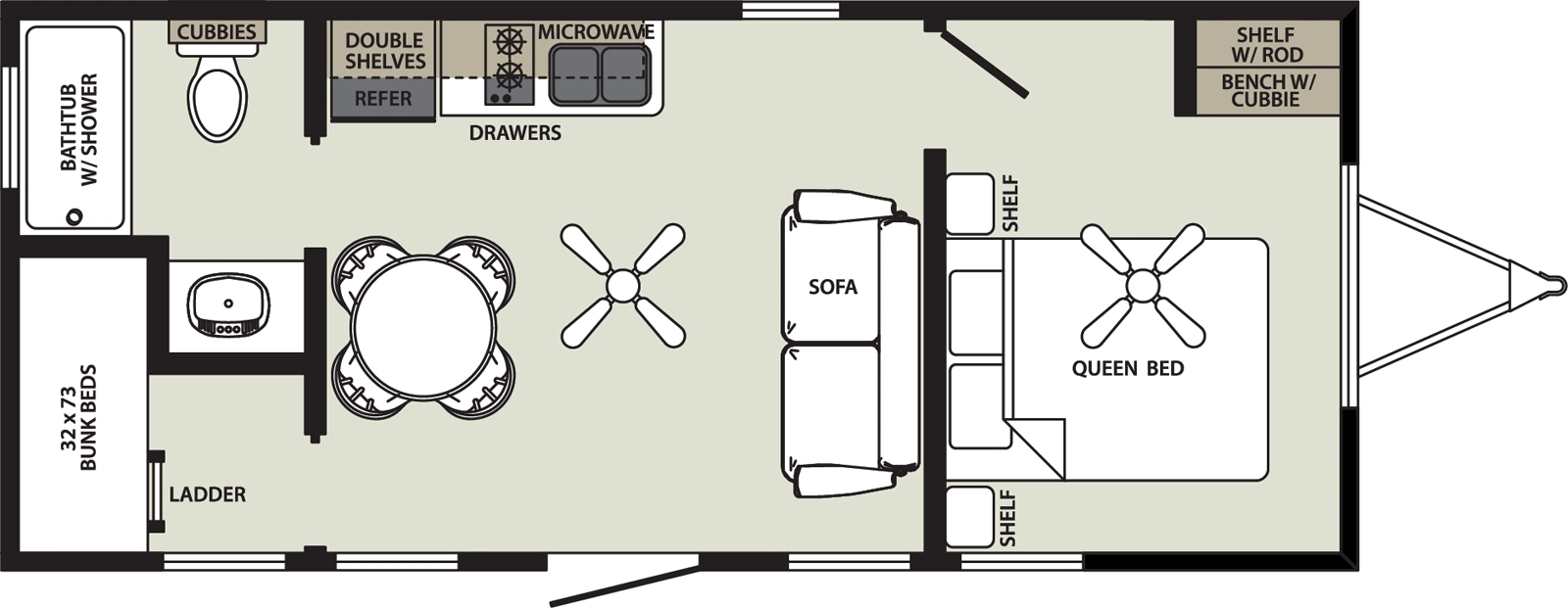 At 336 sq ft, this cabin gives you a taste of spaciousness without losing connection to the outdoors. A full bath and one bedroom make it ideal for seasonal stays or long weekends at campgrounds, and thoughtful insulation and structure keep it built for reliable performance.