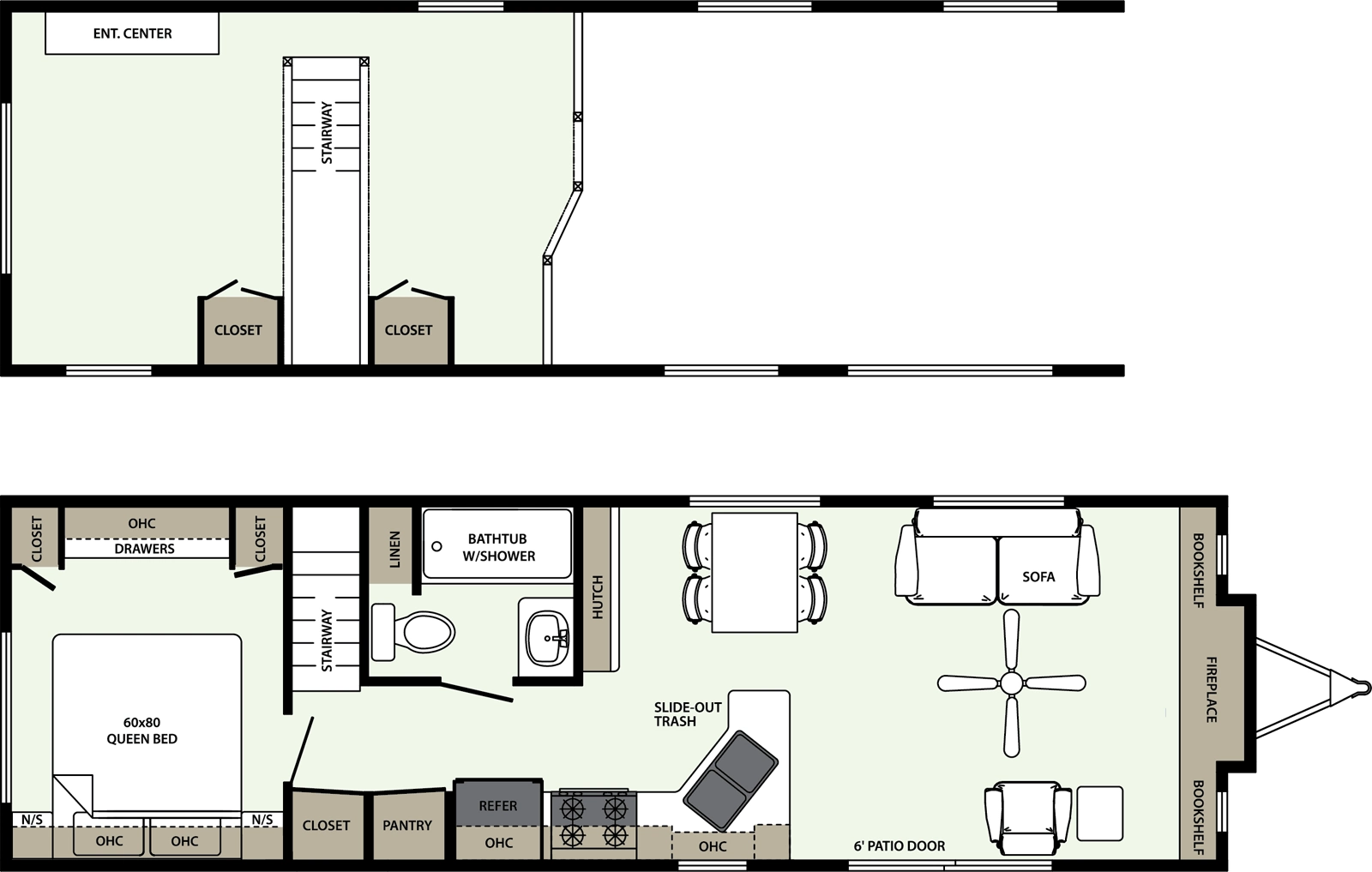 The 39 FLML provides 396 sq ft with a loft accessed by carpeted stairs. The loft expands usable space while the main floor stays organized for relaxing or hosting. This model blends durable construction with smart design for campers who want comfort and practicality.