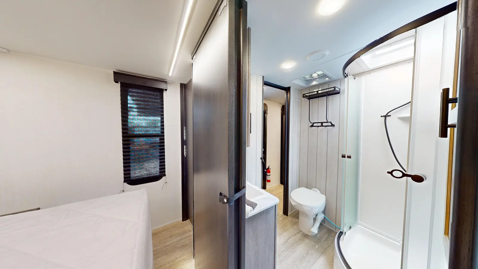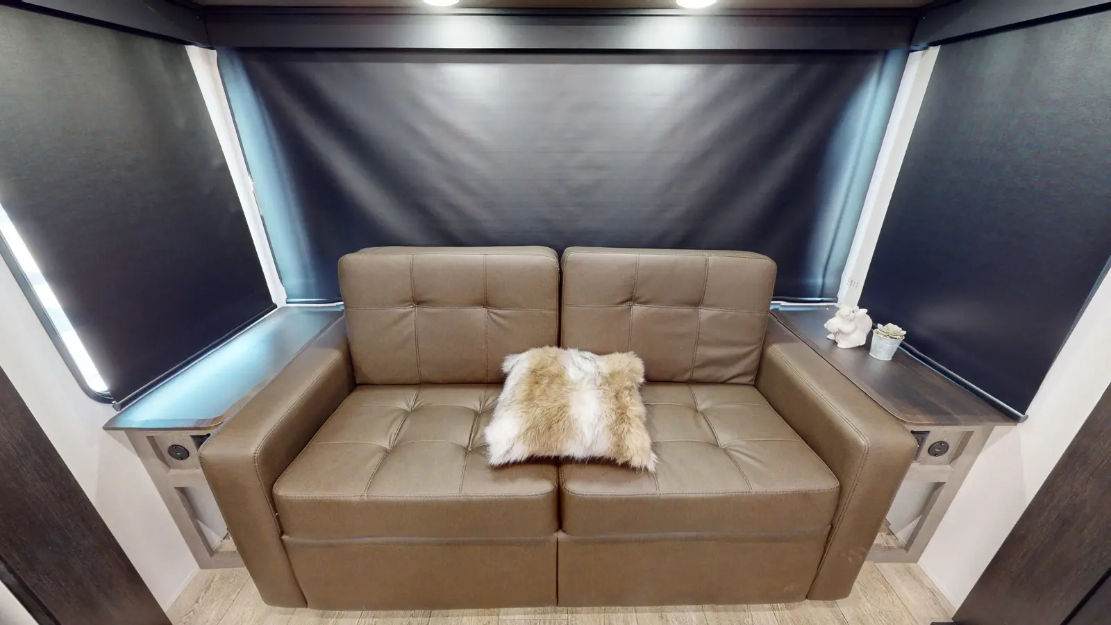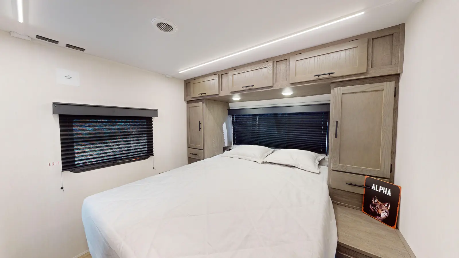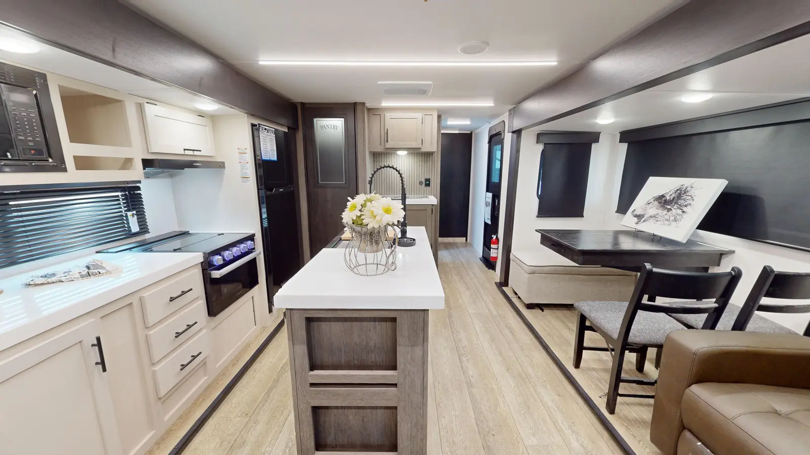 The Alpha Wolf 26RL by Forest River takes a popular 5th wheel design and brings it into a smaller form factor! Stretch out and relax with a queen size bed and ample wardrobe space in the bedroom. The spacious living area features oversized windows, perfect for enjoying the scenery. A beautiful island highlights the kitchen along with a 12-volt refrigerator, oven, microwave and built-in trash can. Easy to tow and perfect for your next adventure!