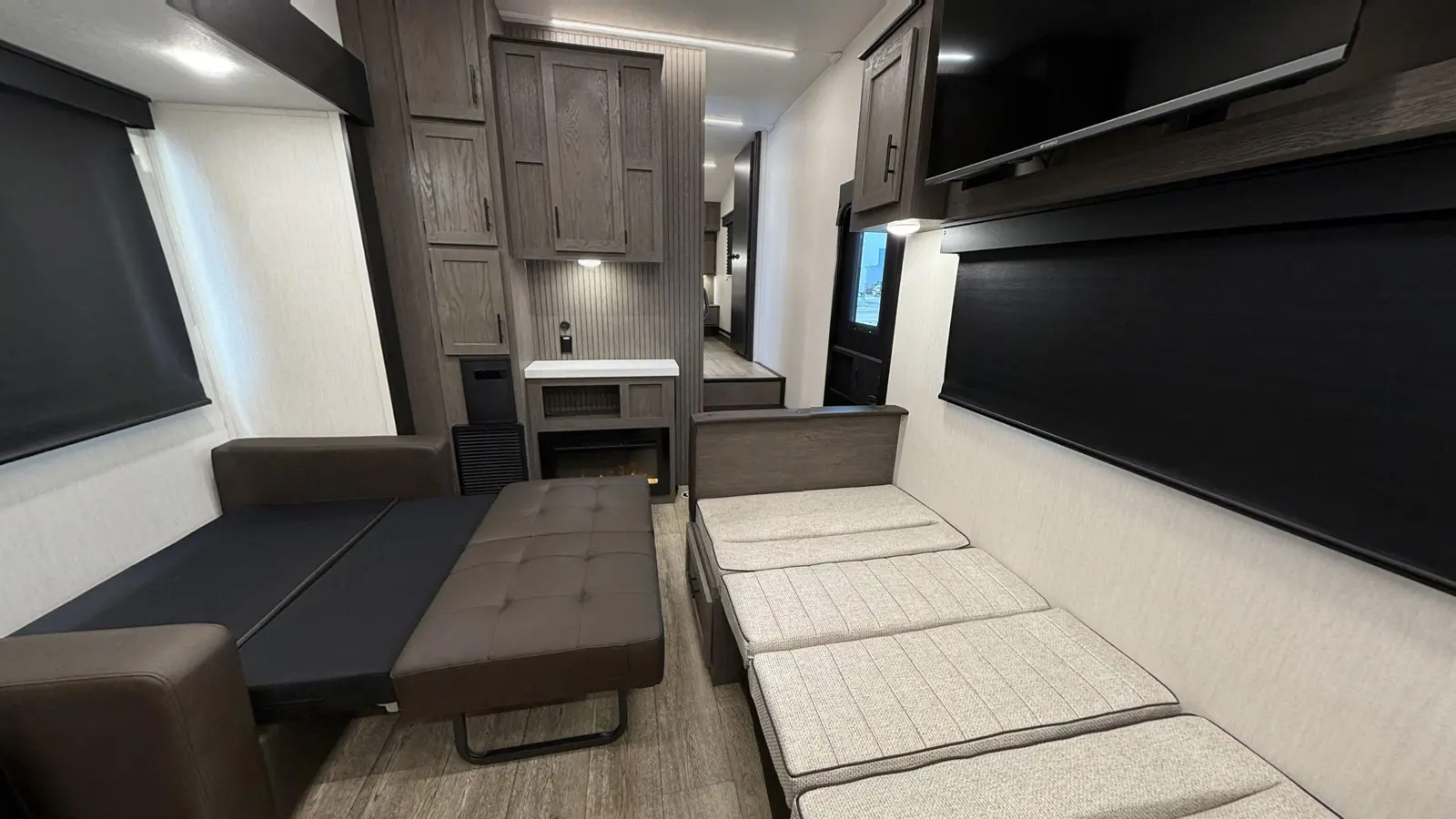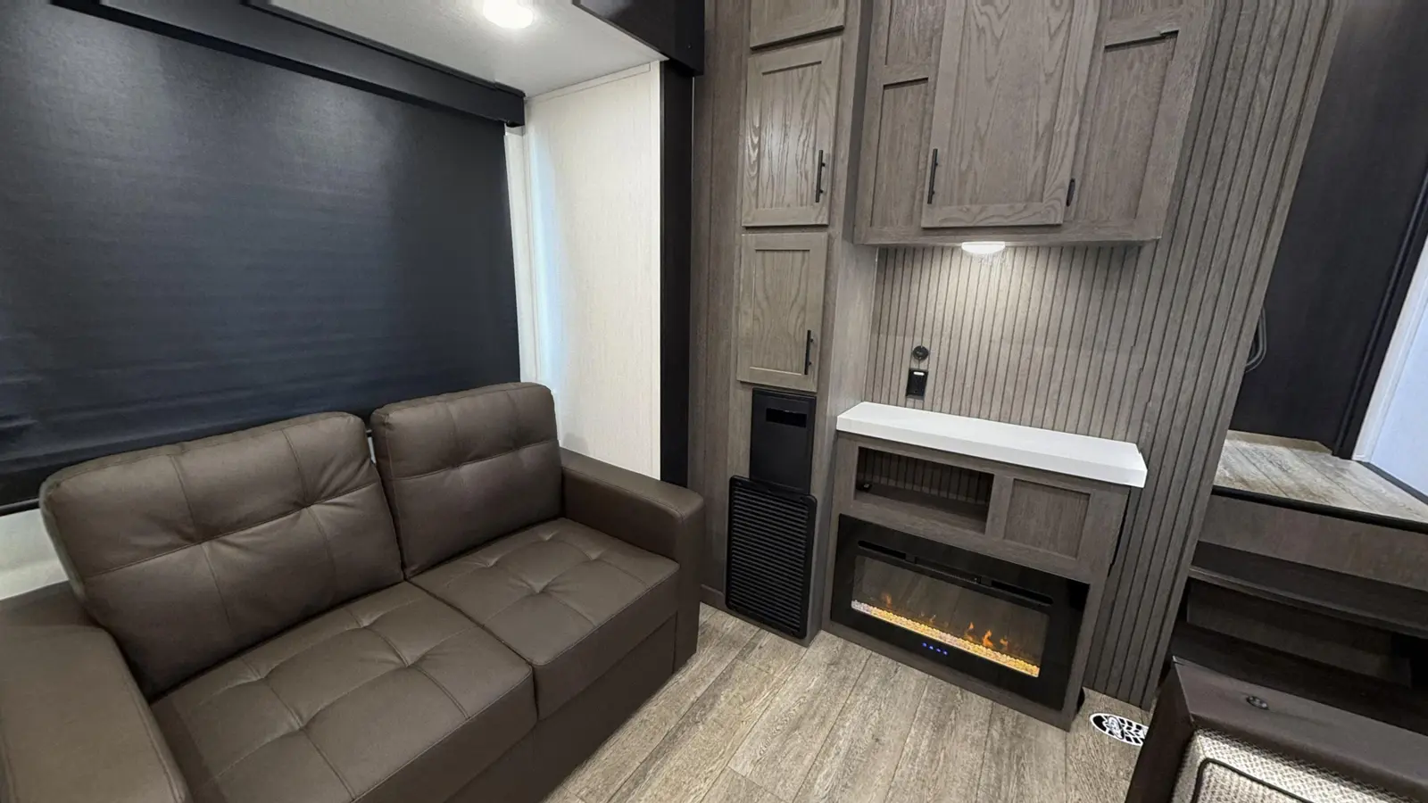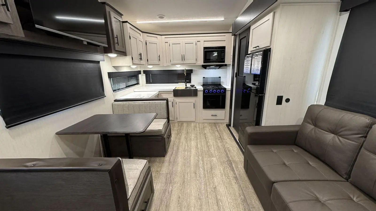 Perfect for couples, this lightweight unit will take you everywhere you want to go! Interior highlights include centralized ceiling fan, rear kitchen, ample windows for airflow and views of your campsite, 6’4” tall slide room, electric fireplace, tankless water heater, and removable shower rod for hang-drying. Exterior features include a kitchen with ice maker, 15,000 BTU A/C, 20’ awning, security camera system prep, and one-touch auto leveling for easy setup!
