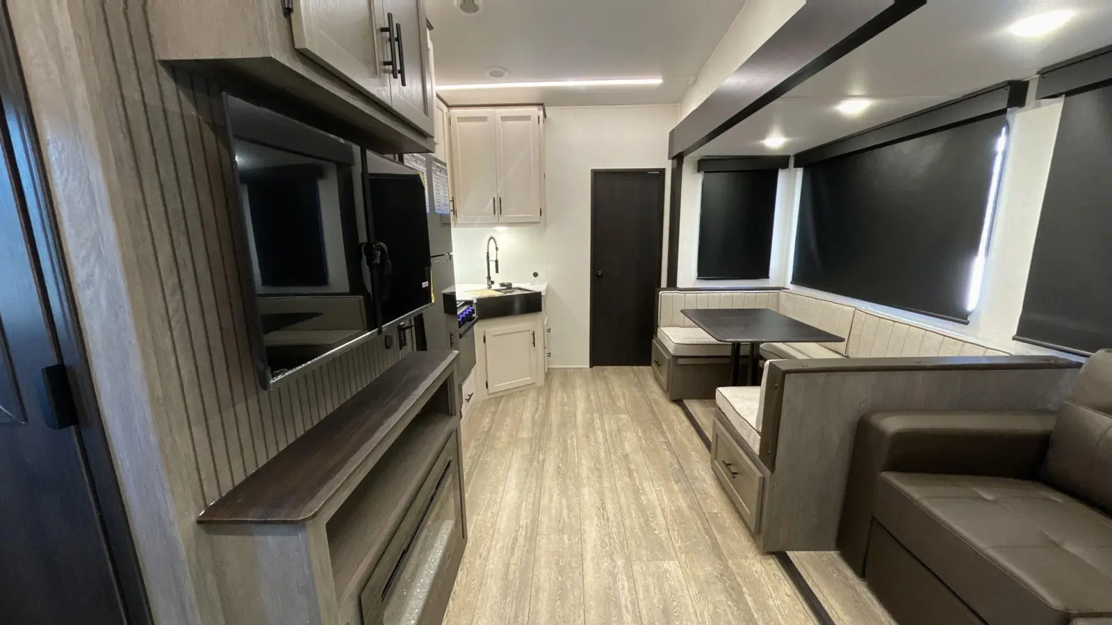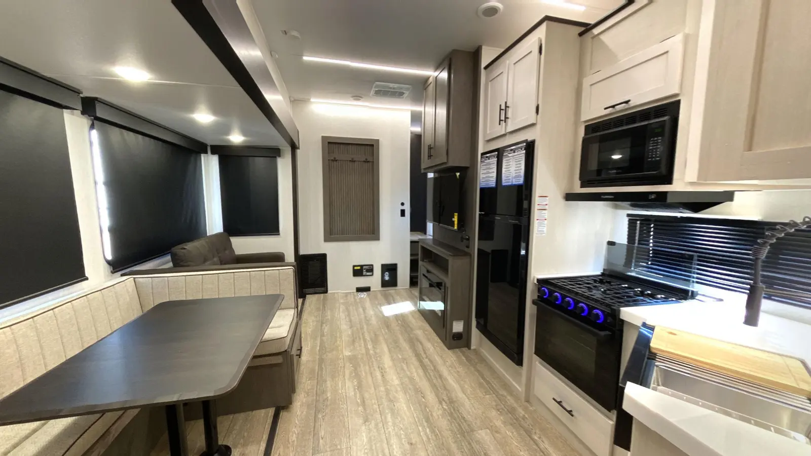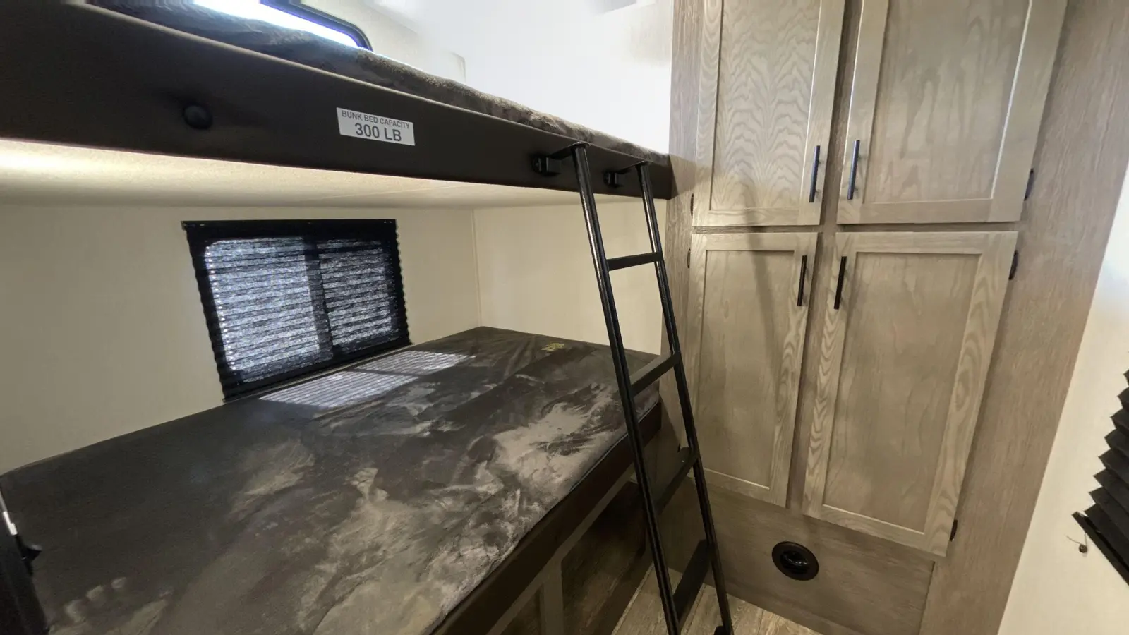 Our most popular multi-sleeper and family fun coach! Interior highlights include an oversized u-dinette seating surface for all the kids, dual pots and pans drawers, oversized double bunk beds, farm-style sink and 6’4” tall slide rooms, electric fireplace and an 80” queen size bed. Some exterior refinements include an oversized 20’ exterior awning, 15,000 BTU A/C, basement storage, Cherokee “Step Above” entry step, one-touch auto leveling and a deluxe outside kitchen for the camp chef!