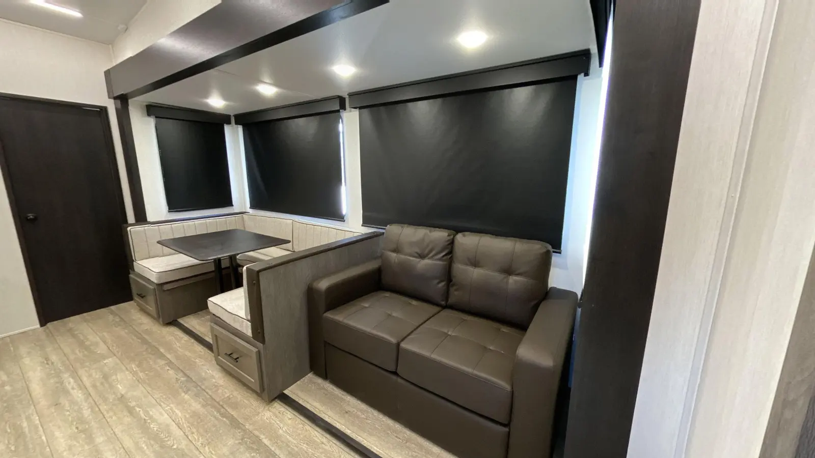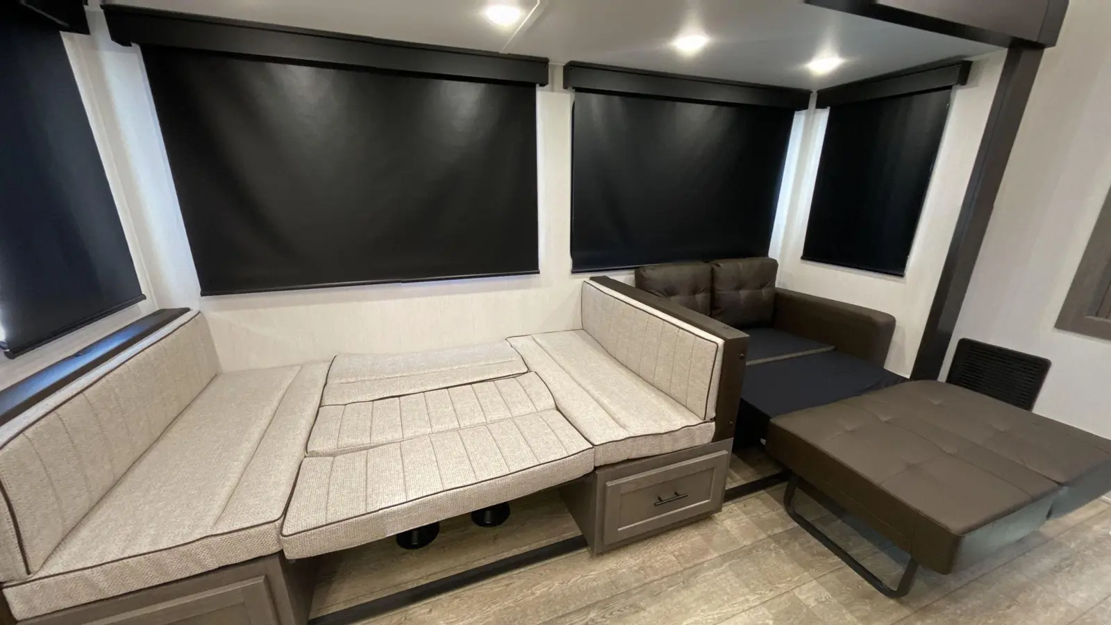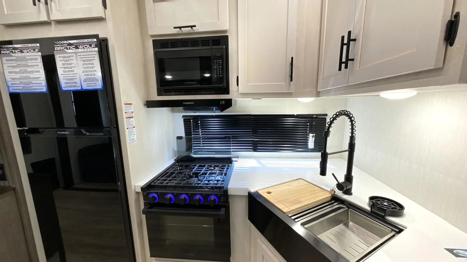 Our most popular multi-sleeper and family fun coach! Interior highlights include an oversized u-dinette seating surface for all the kids, dual pots and pans drawers, oversized double bunk beds, farm-style sink and 6’4” tall slide rooms, electric fireplace and an 80” queen size bed. Some exterior refinements include an oversized 20’ exterior awning, 15,000 BTU A/C, basement storage, Cherokee “Step Above” entry step, one-touch auto leveling and a deluxe outside kitchen for the camp chef!