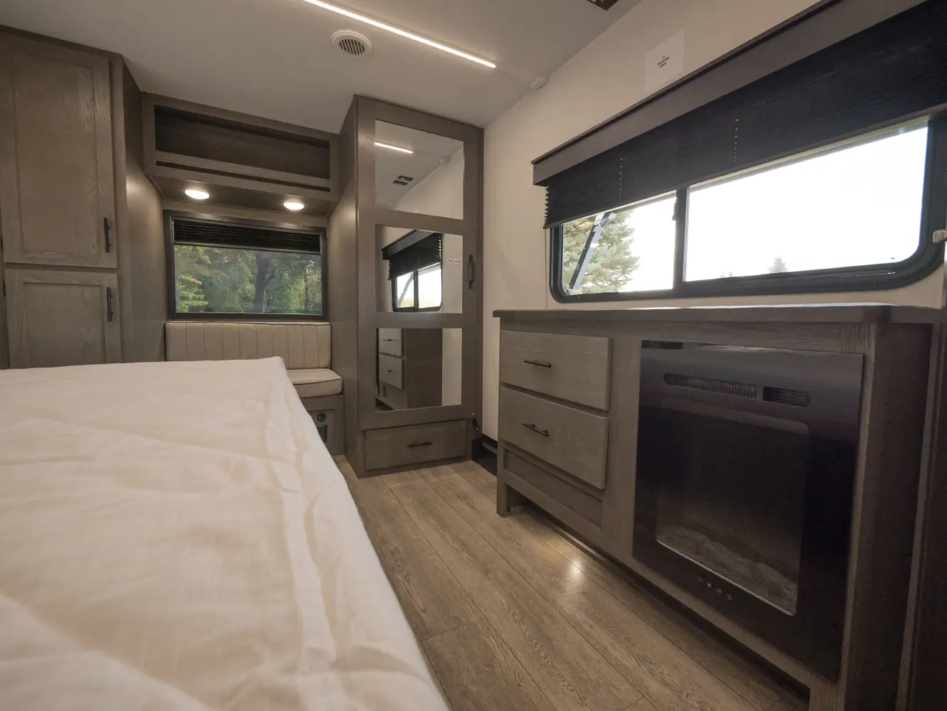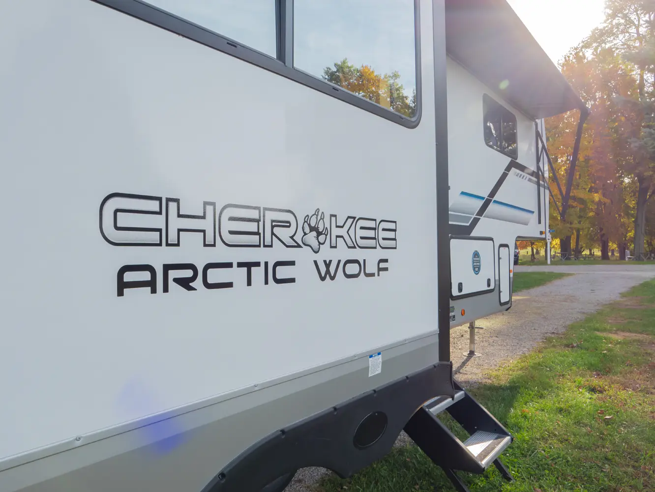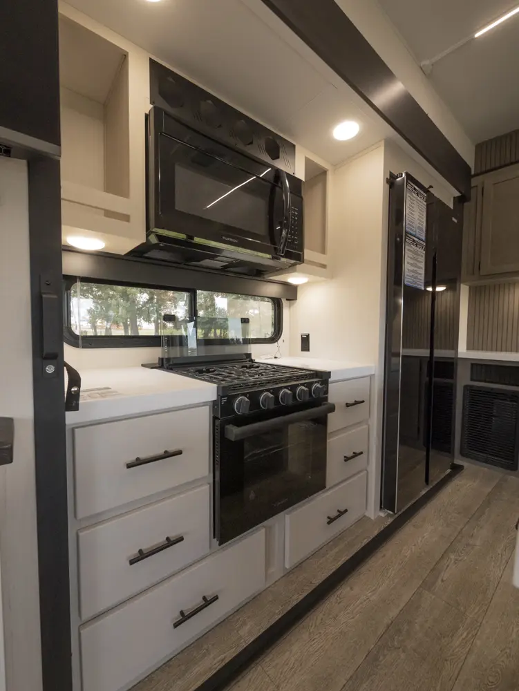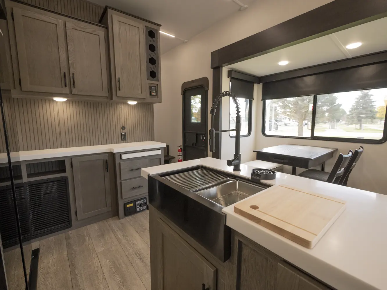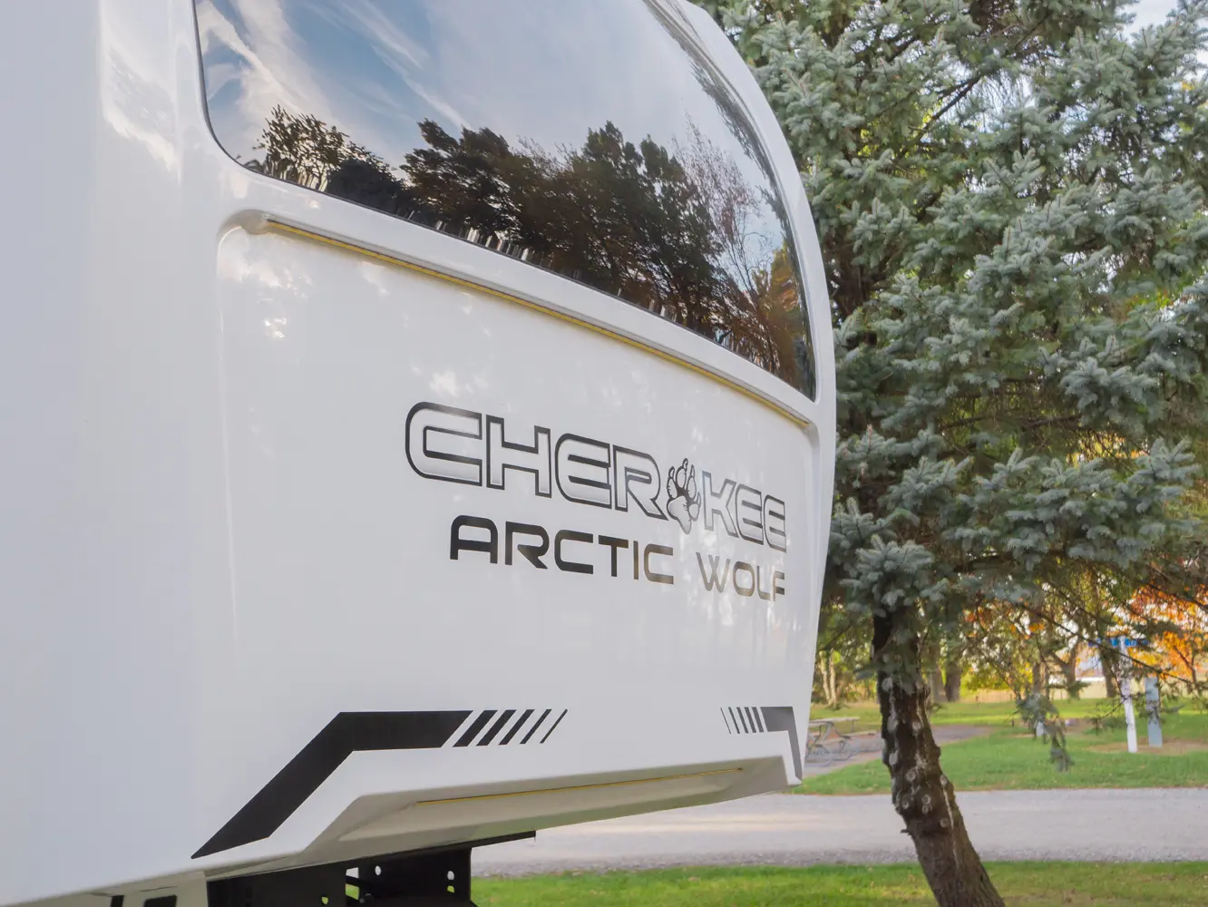 The Arctic Wolf 3250SUITE is perfect for couples and solo travelers alike with a spacious open concept design. The rear living room is flanked by big windows for natural light and the entertainment center doubles as a hidden pantry. In the modern island kitchen, you'll find a 16 cu. ft. refrigerator, 30" microwave, oven and a spacious dinette. Up front is a king size bed, full bathroom, sun bench and lots of great wardrobe space.