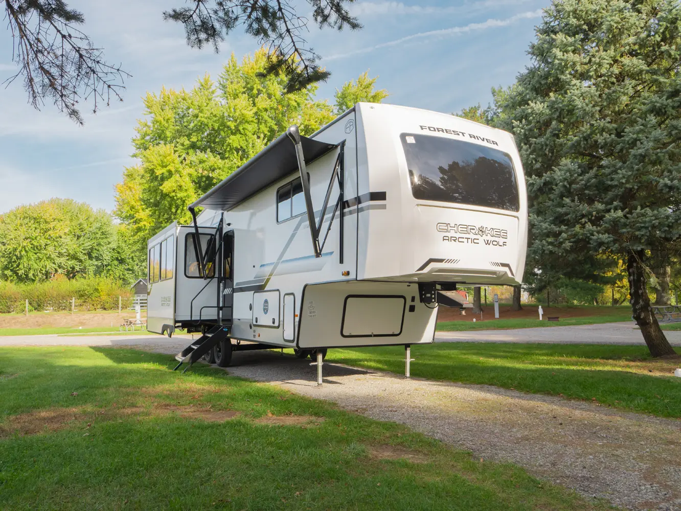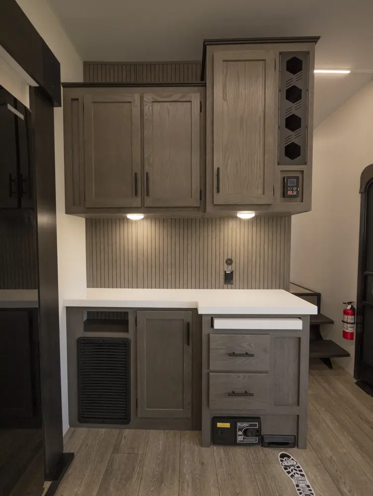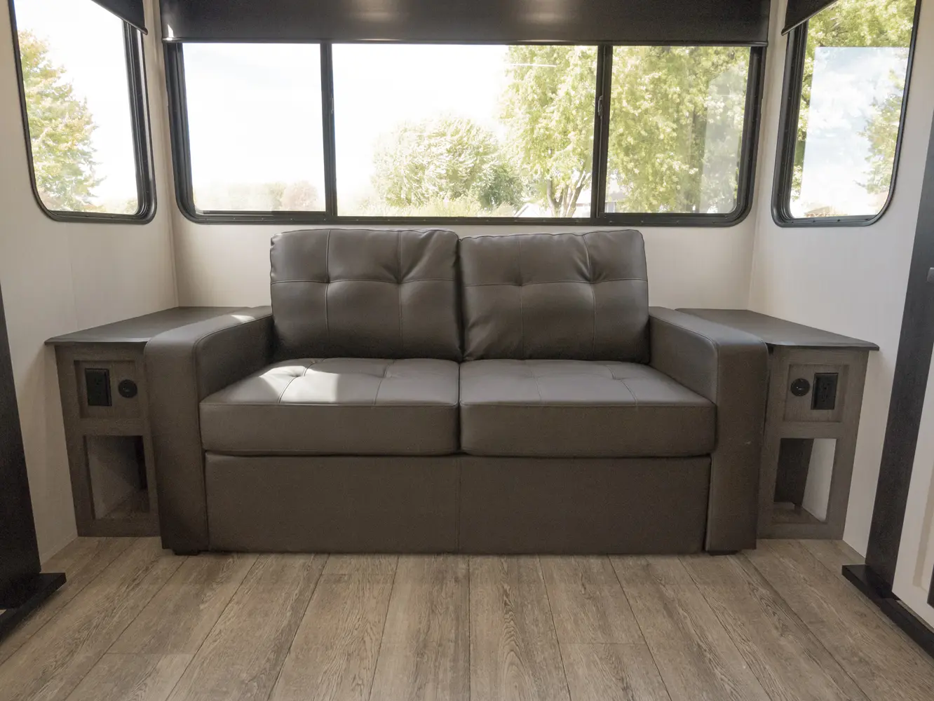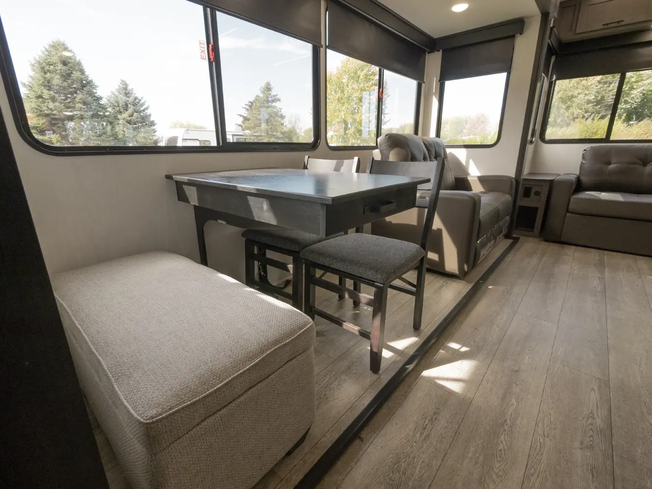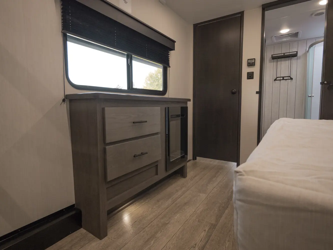 The Arctic Wolf 3250SUITE is perfect for couples and solo travelers alike with a spacious open concept design. The rear living room is flanked by big windows for natural light and the entertainment center doubles as a hidden pantry. In the modern island kitchen, you'll find a 16 cu. ft. refrigerator, 30" microwave, oven and a spacious dinette. Up front is a king size bed, full bathroom, sun bench and lots of great wardrobe space.