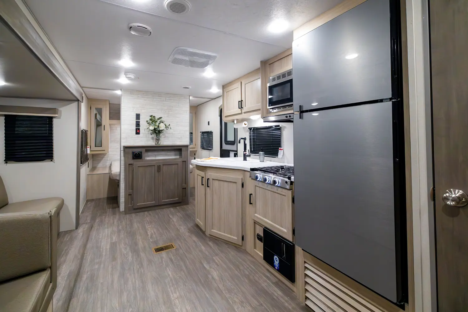 The 26BHS Aurora Light TT offers a spacious layout for families and friends. With multiple sleeping areas and efficient kitchen and bath setups, it makes every trip comfortable. Lightweight and easy to tow, it’s ready for tailgating, weekend camping, or exploring new trails.