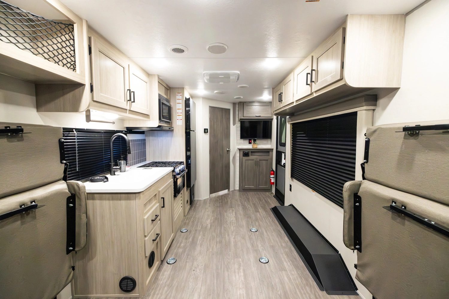 Aurora Toy Haulers are crafted for RV owners who want adventure built into every trip. Designed to carry quads, side-by-sides, dirt bikes, kayaks, and gear, these trailers use tough construction and flexible garage areas that make loading and unloading simple. Aurora Toy Haulers blend utility and comfort, giving travelers a dependable basecamp for riding trails, exploring remote terrain, and maximizing time outside. RV enthusiasts can enjoy the freedom to chase new destinations with the strength and trusted engineering that Forest River is known for. The result is a powerful tool for active families who want to embrace the outdoors without limits.