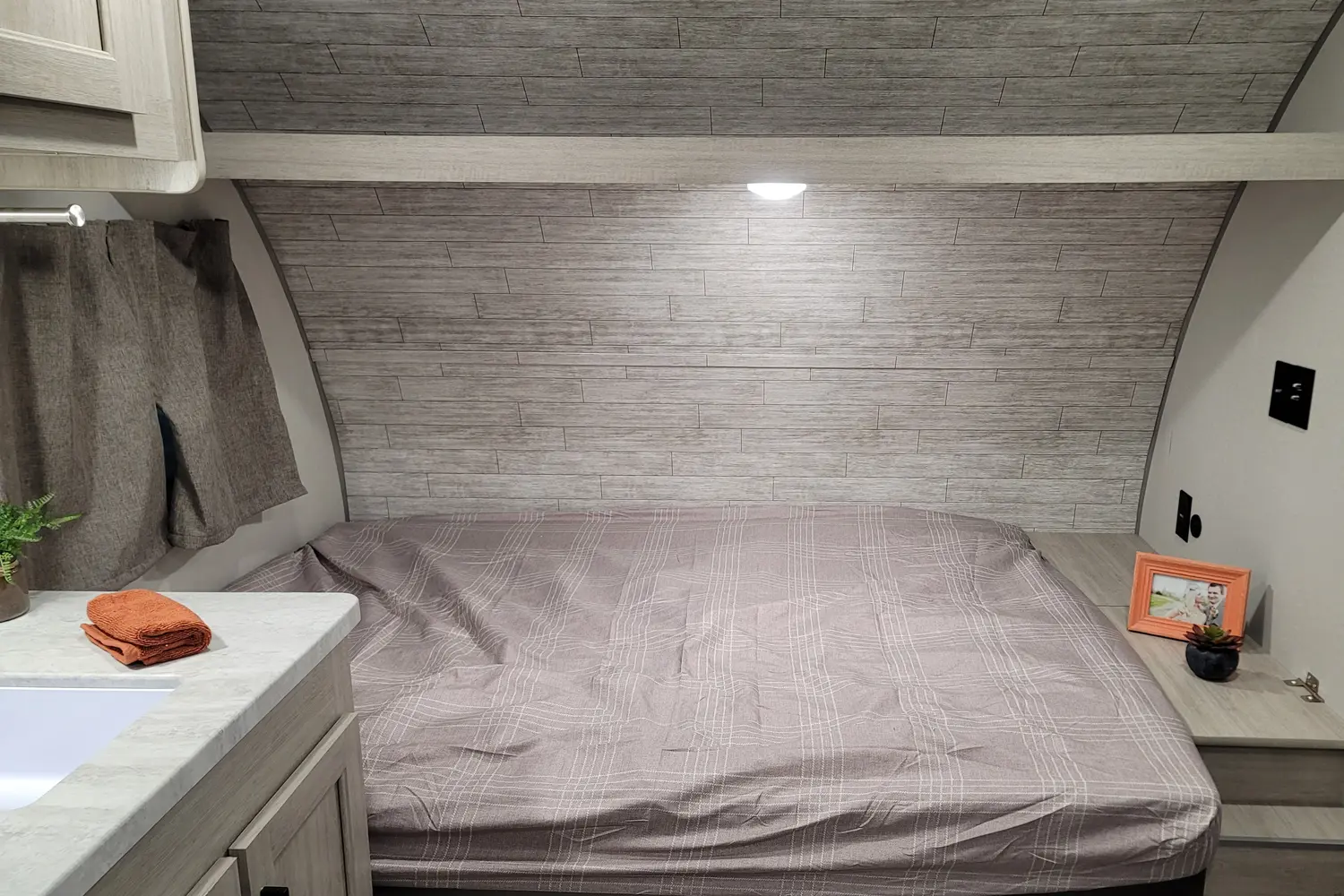 The Aurora 13RDX floorplan has one entry and zero slide outs. Exterior features include: metal exterior and 8' awning. Interiors features include: front bedroom.