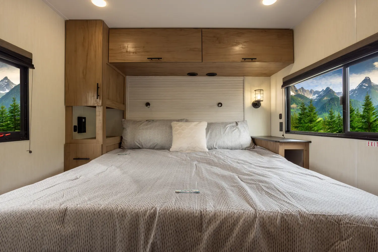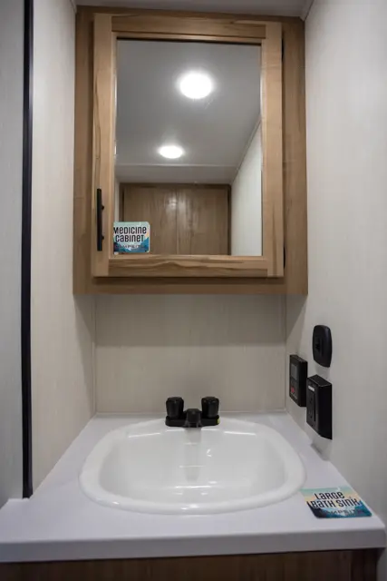The Campsite Reserve 20JW floorplan has one entry and zero slide outs. Exterior features include: metal exterior. Interiors features include: loft, front bedroom, rear living and pass through bathroom.