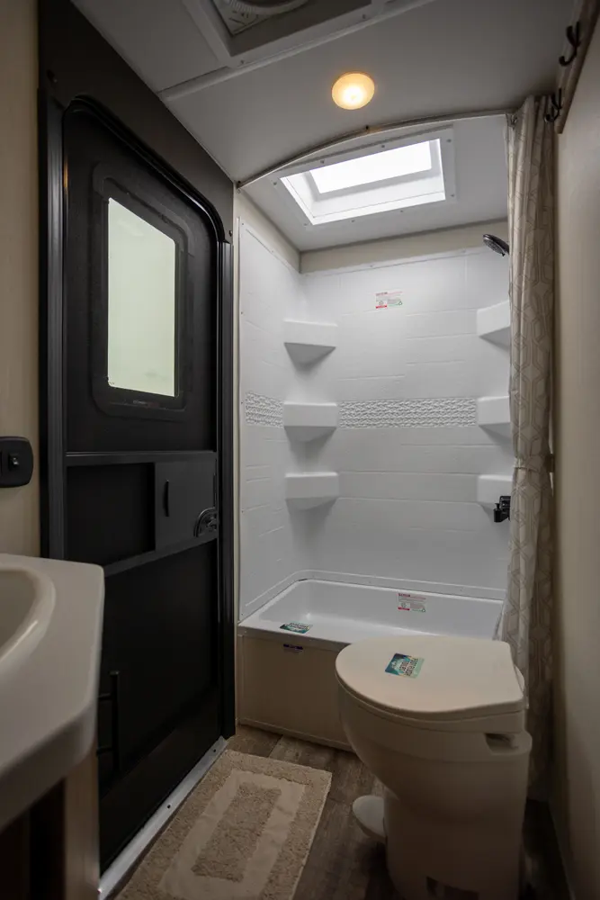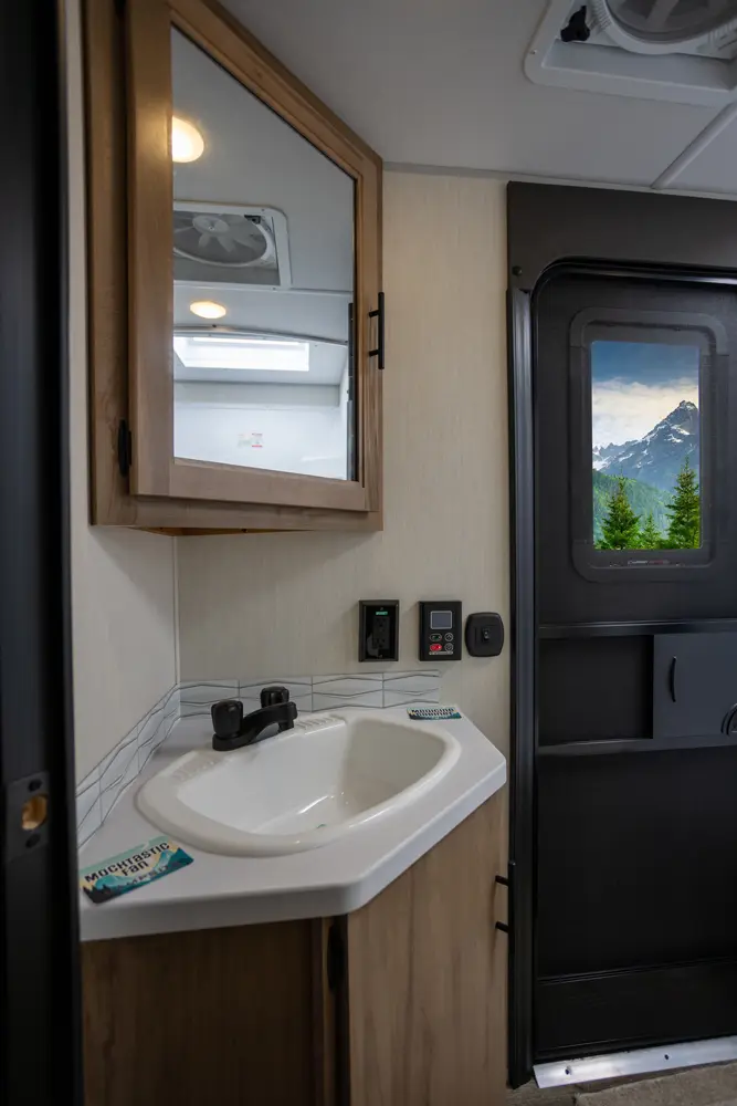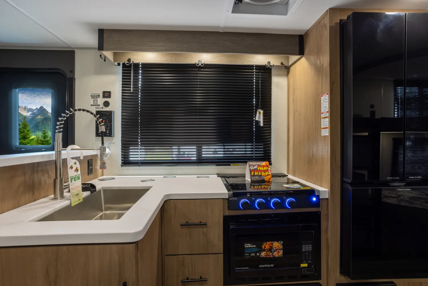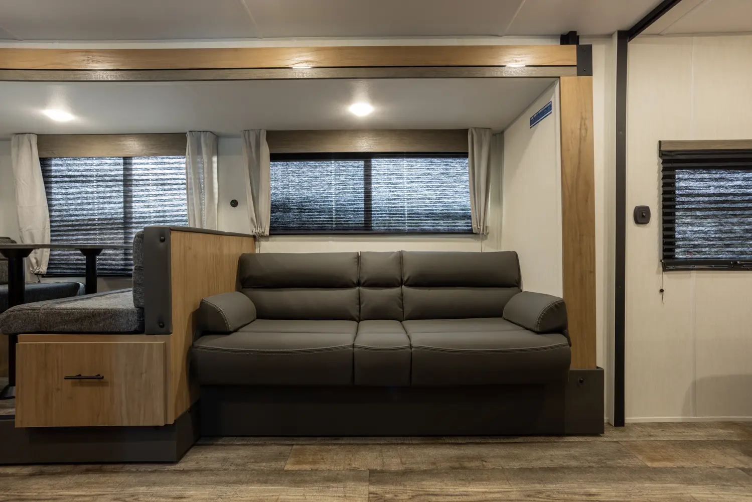 The Campsite Reserve 26CJ floorplan has two entries and one slide out. Exterior features include: metal exterior and outside kitchen. Interiors features include: bunk beds and front bedroom.