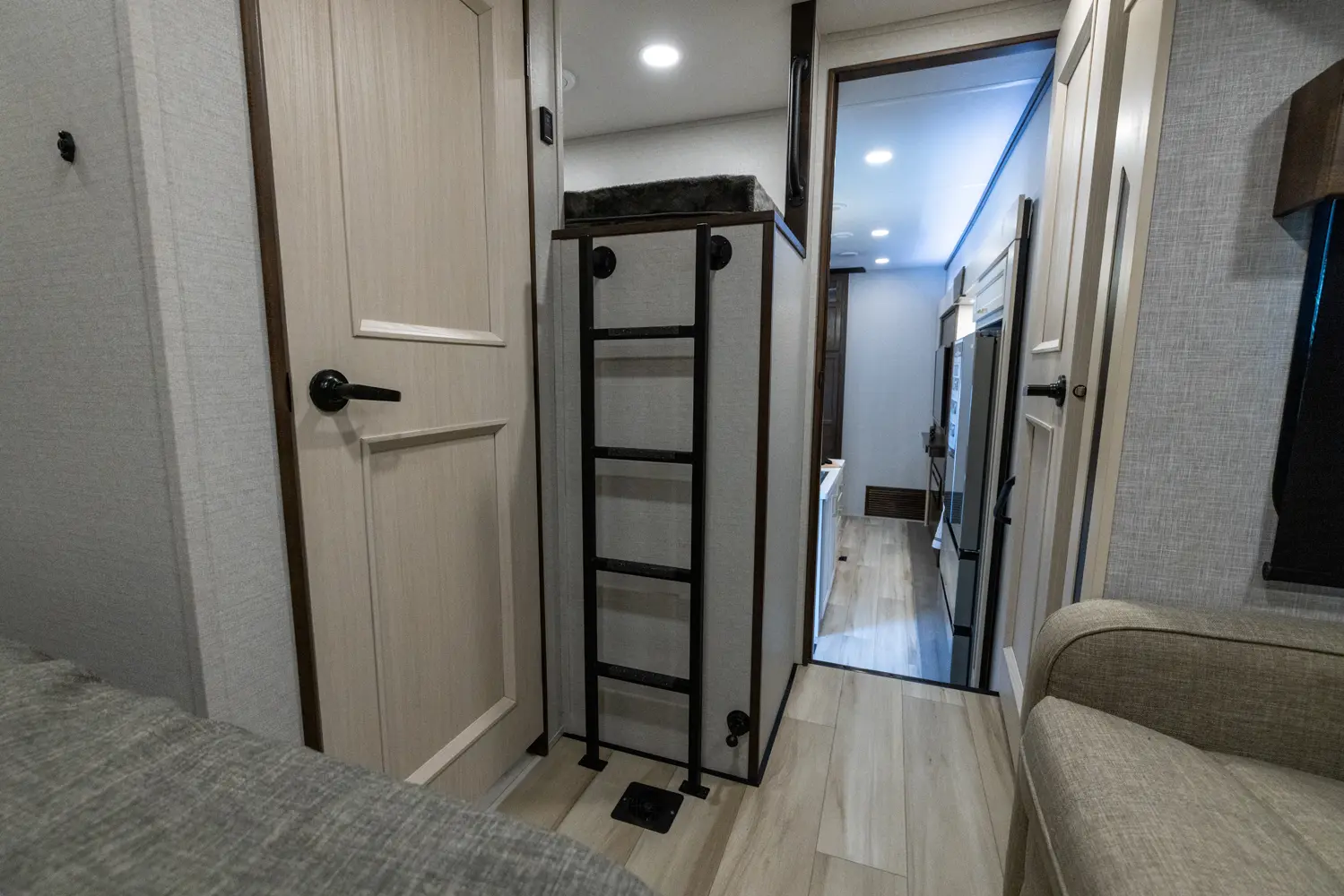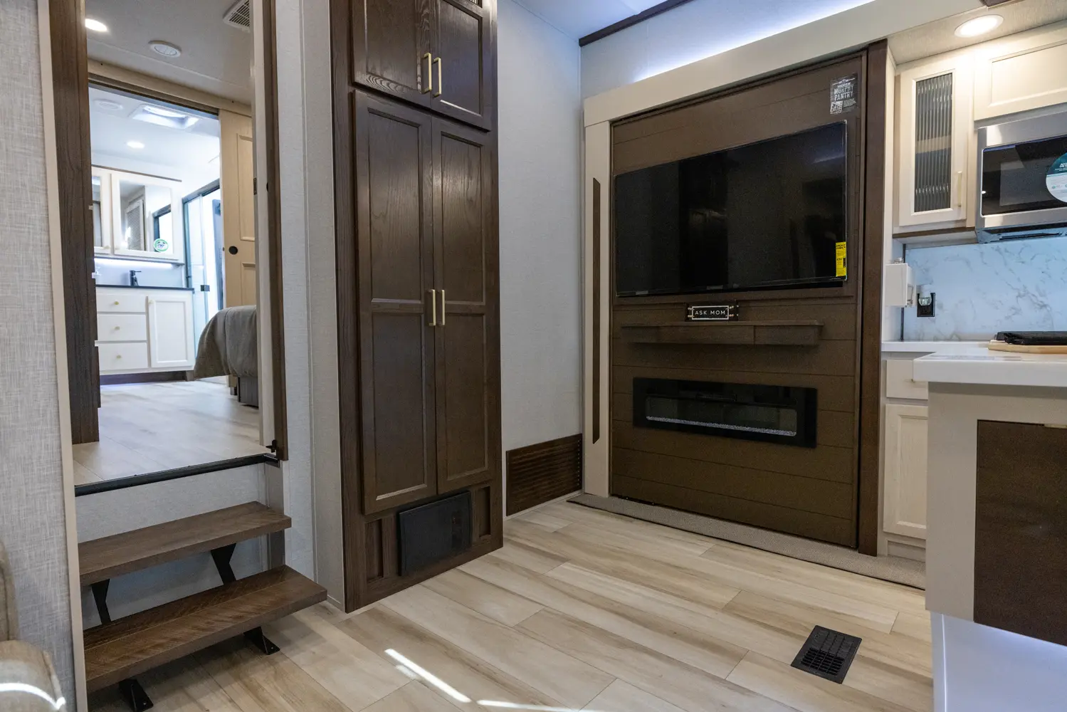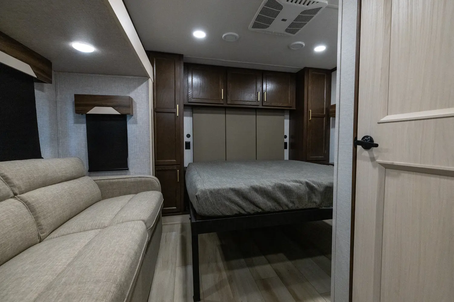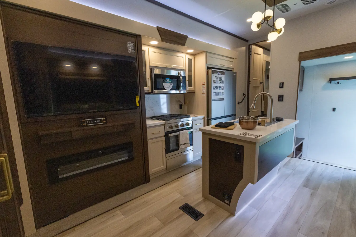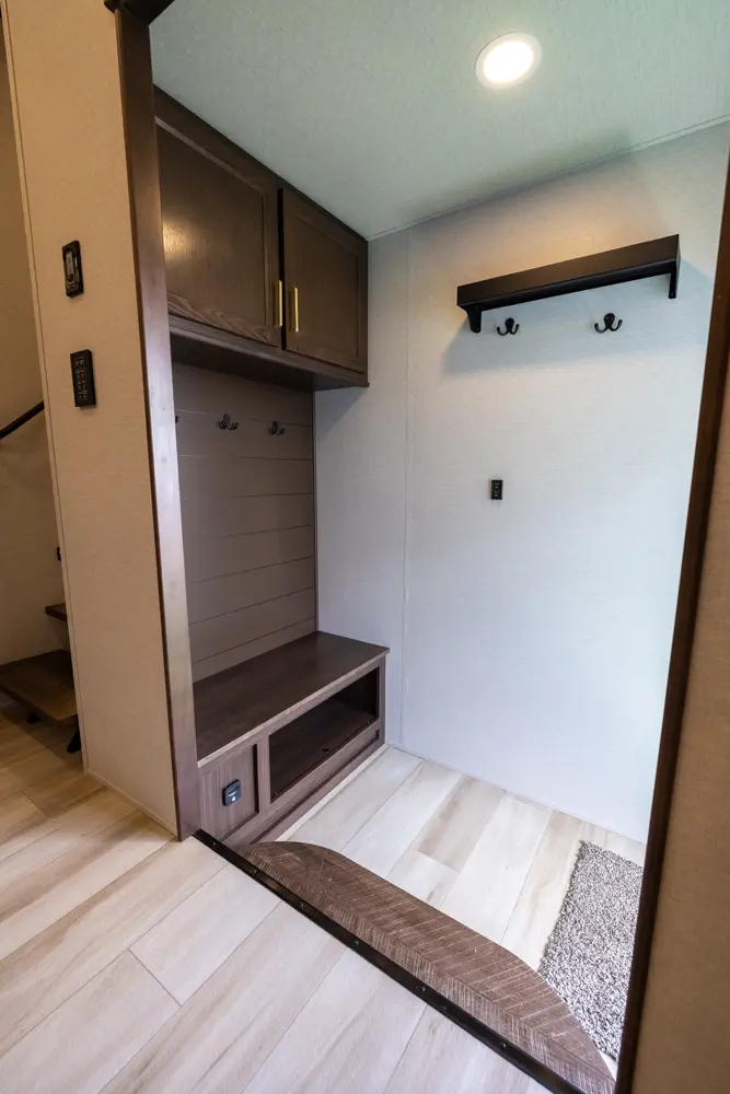 The Cedar Creek 381MUD has one entry and four slide outs. Exterior features include: fiberglass exterior and 15' & 18' awning. Interiors features include: loft, kitchen island, murphy bed and rear bathroom.