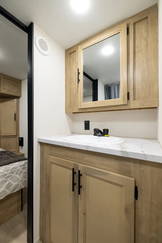 • Blackout Glass, Safety Slam, Friction Hinge Entry Door with Window and Shade Prep (N/A on LP models)