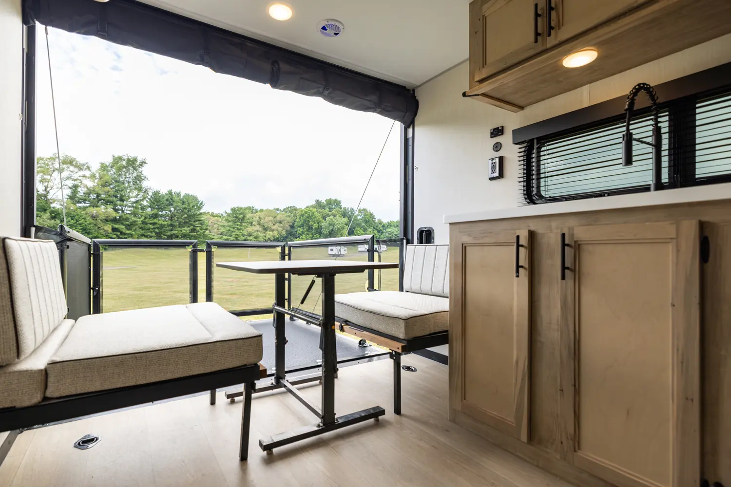 • Blackout Glass, Safety Slam, Friction Hinge Entry Door with Window and Shade Prep (N/A on LP models)