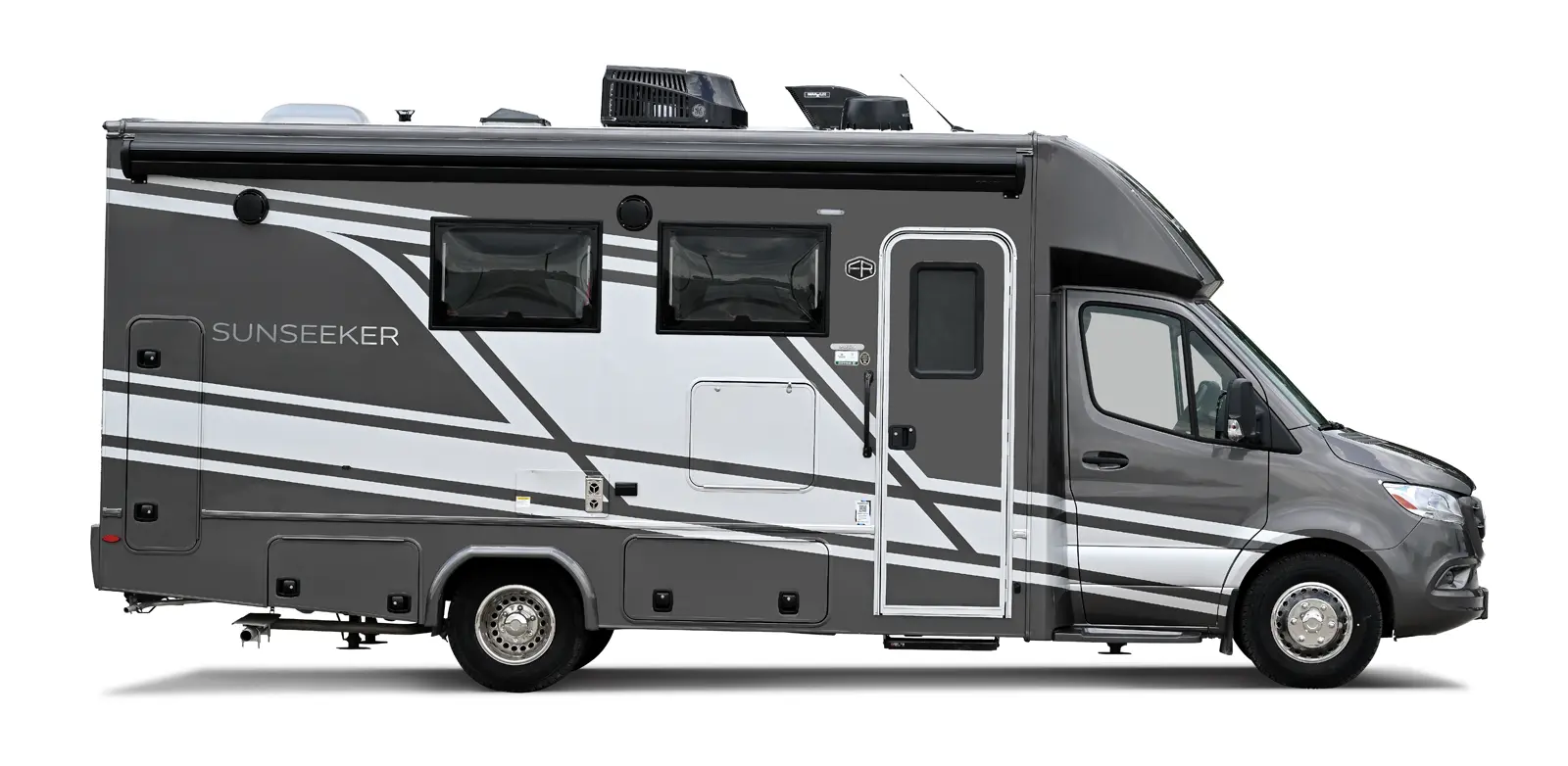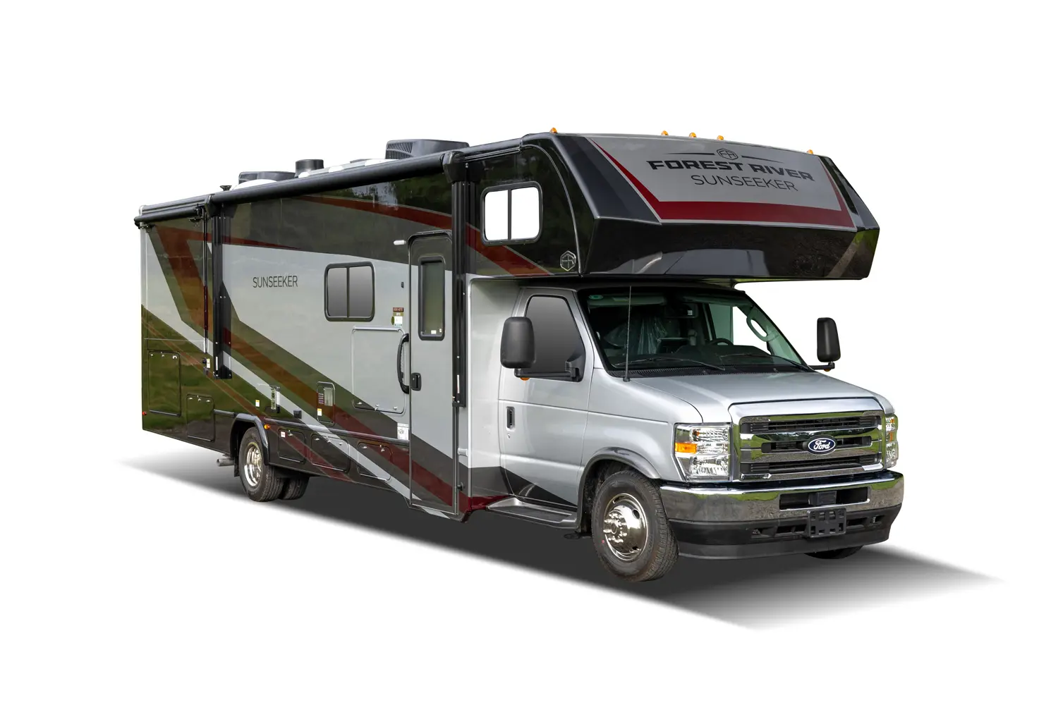 Sunseeker (Ford Chassis): An American classic for the open road. These options feature an upgraded EZRYDE suspension system for an exceptionally smooth ride, plus standard highlights like full-body paint options, slide toppers, and leather driver/passenger seats.
