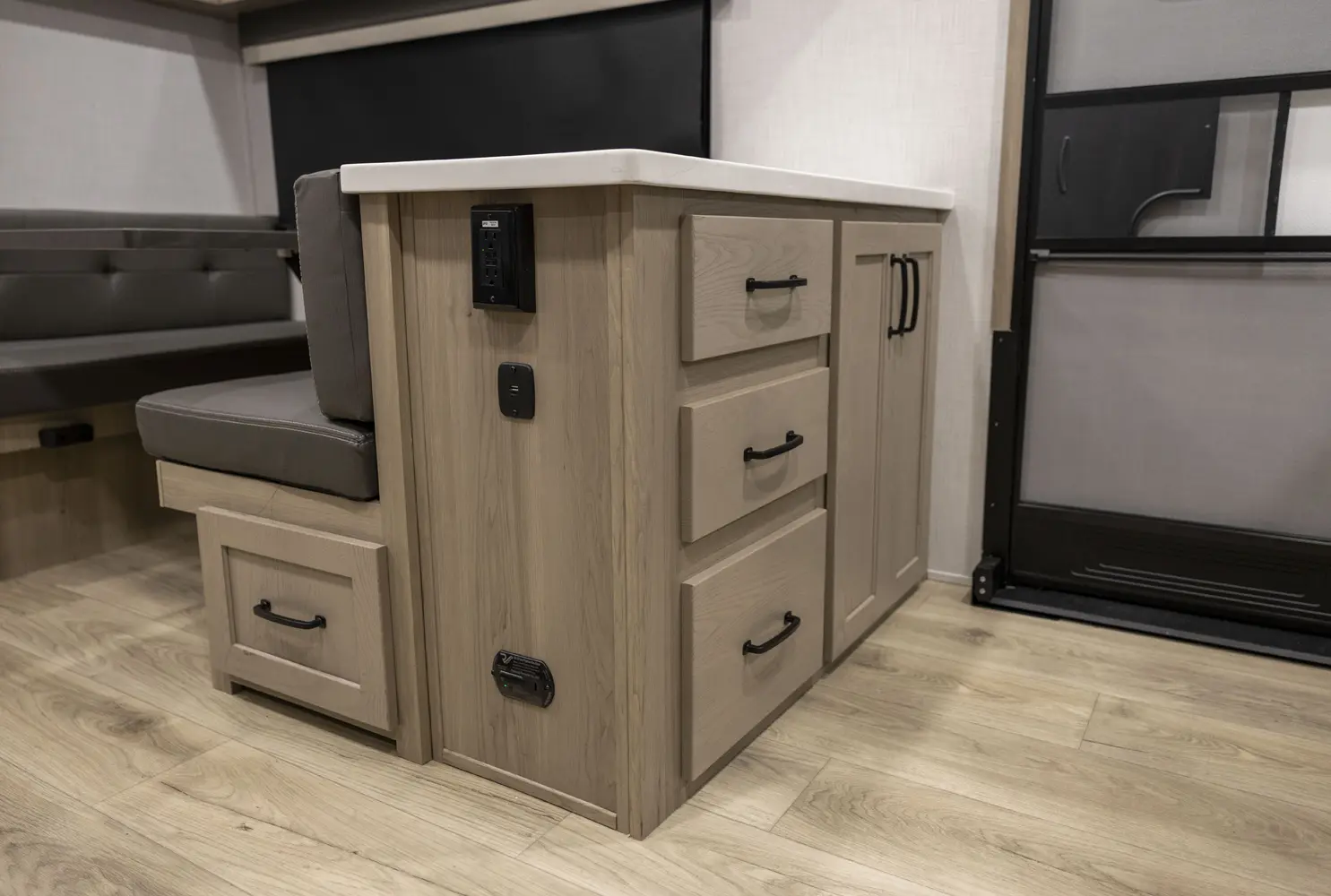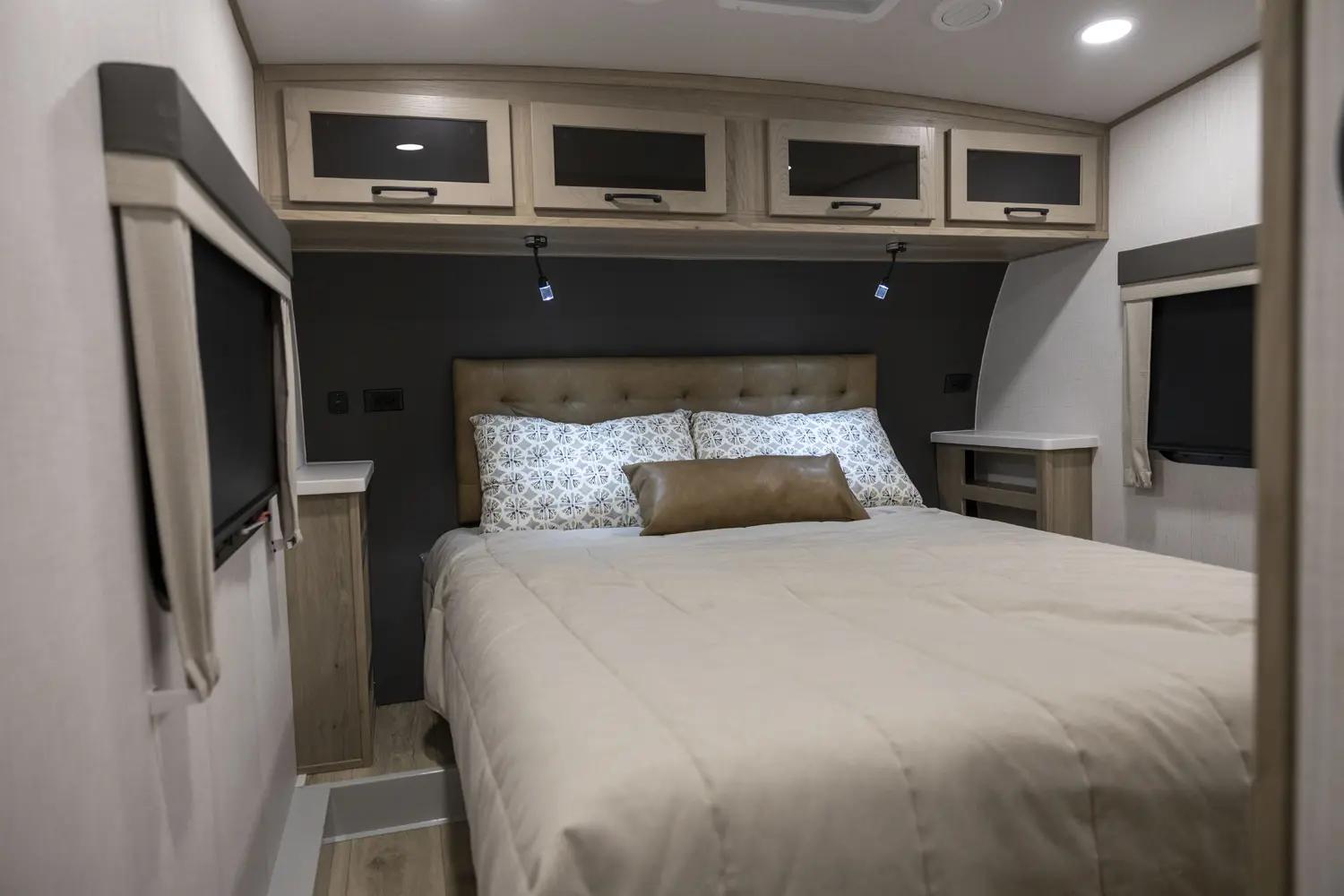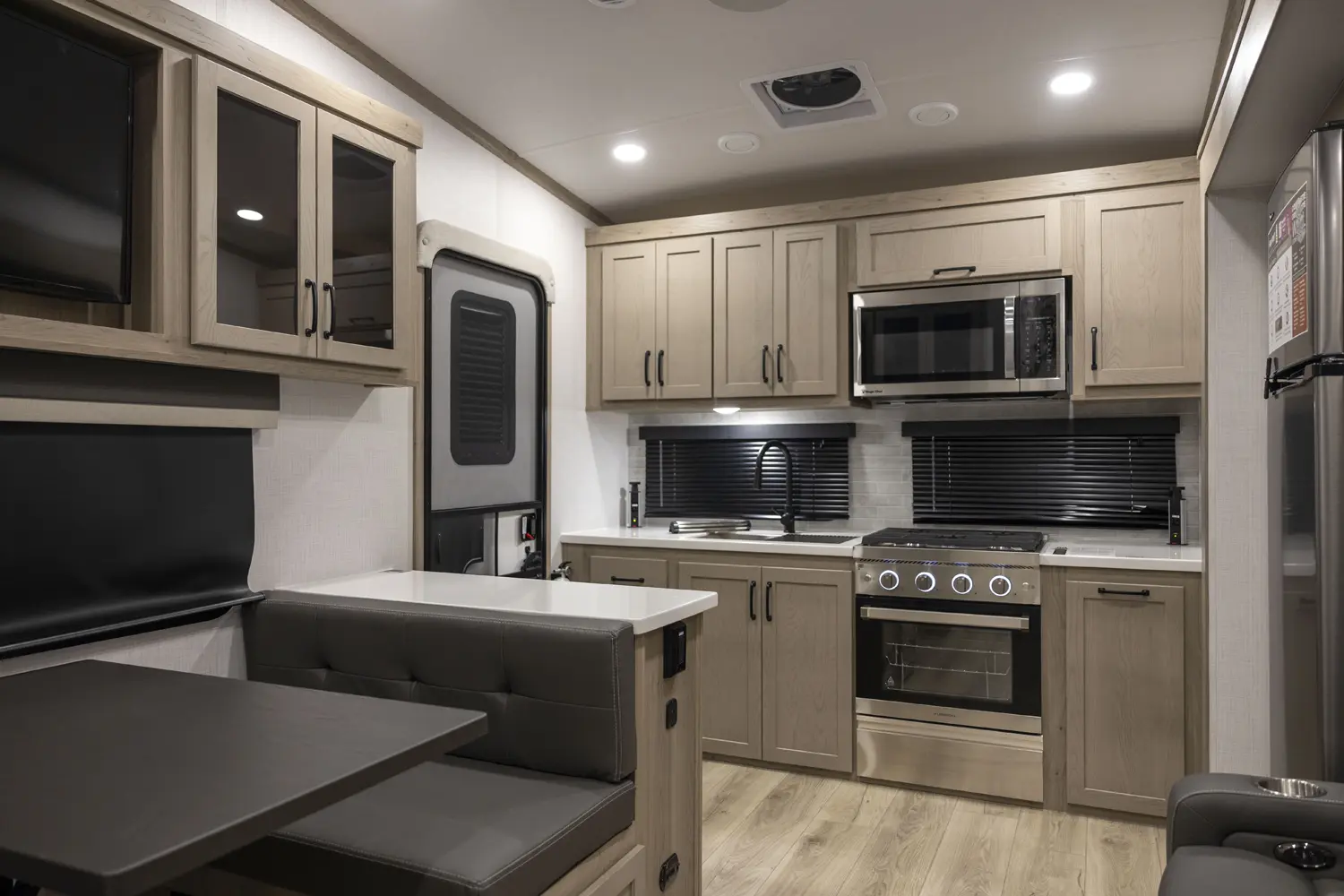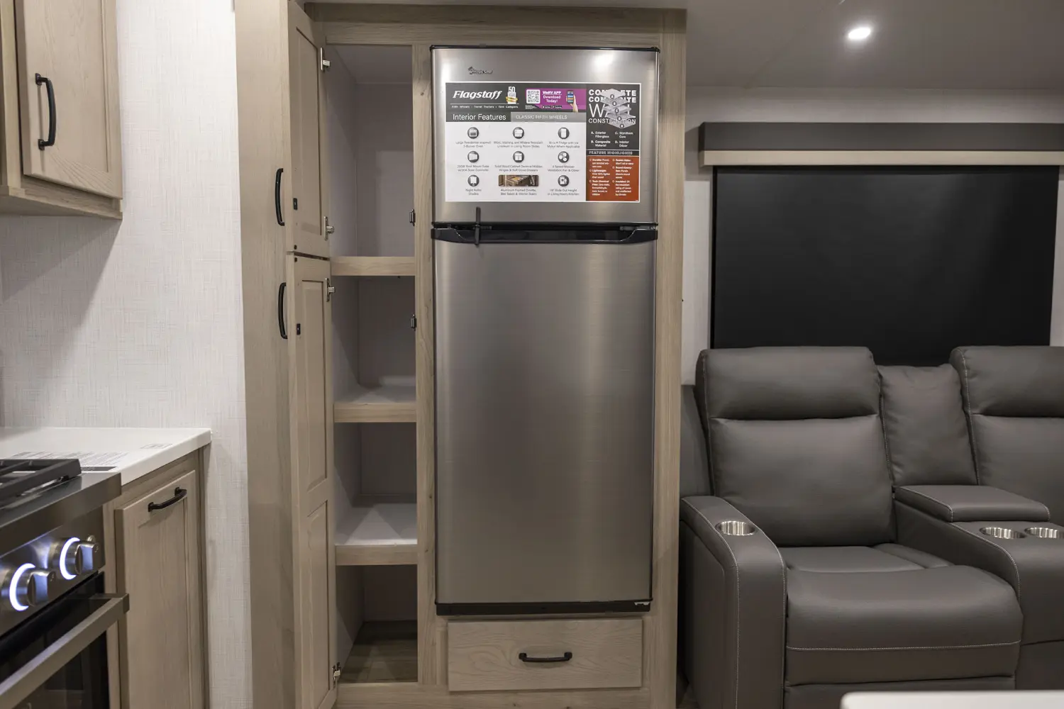 The Flagstaff Classic Fifth Wheels F282RK has one entry and one slide out. Exterior features include: fiberglass exterior and 20' awning. Interiors features include: rear kitchen and front bedroom.