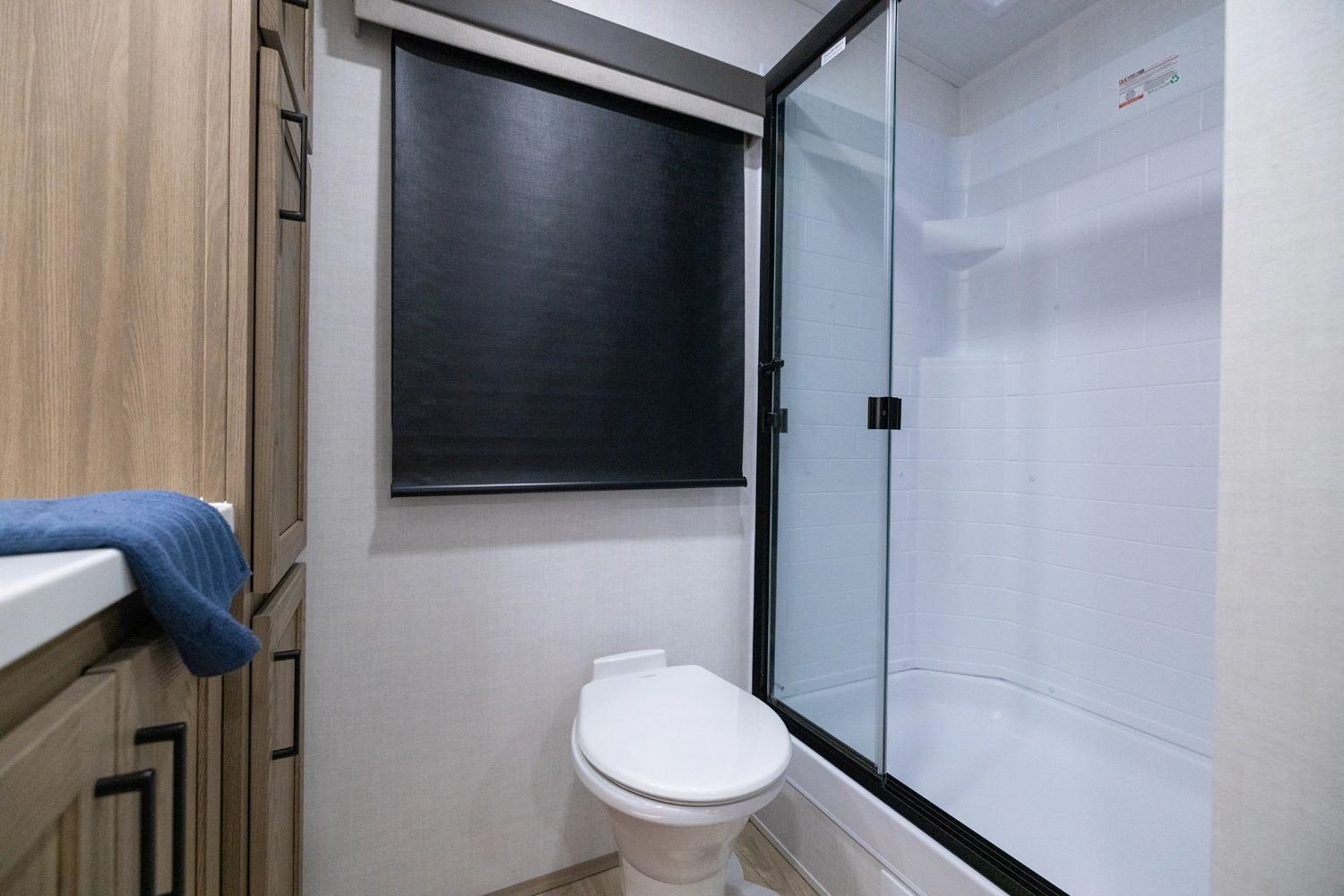 This spacious dual bedroom floorplan features a rear king suite with a full bath and a front queen bedroom with its own bath as well. Between them is a large open living area with a U-shaped dinette, theater seating, fireplace and well-equipped kitchen with an island. 4 slide outs widen the space, maximizing comfort and storage for families or couples.