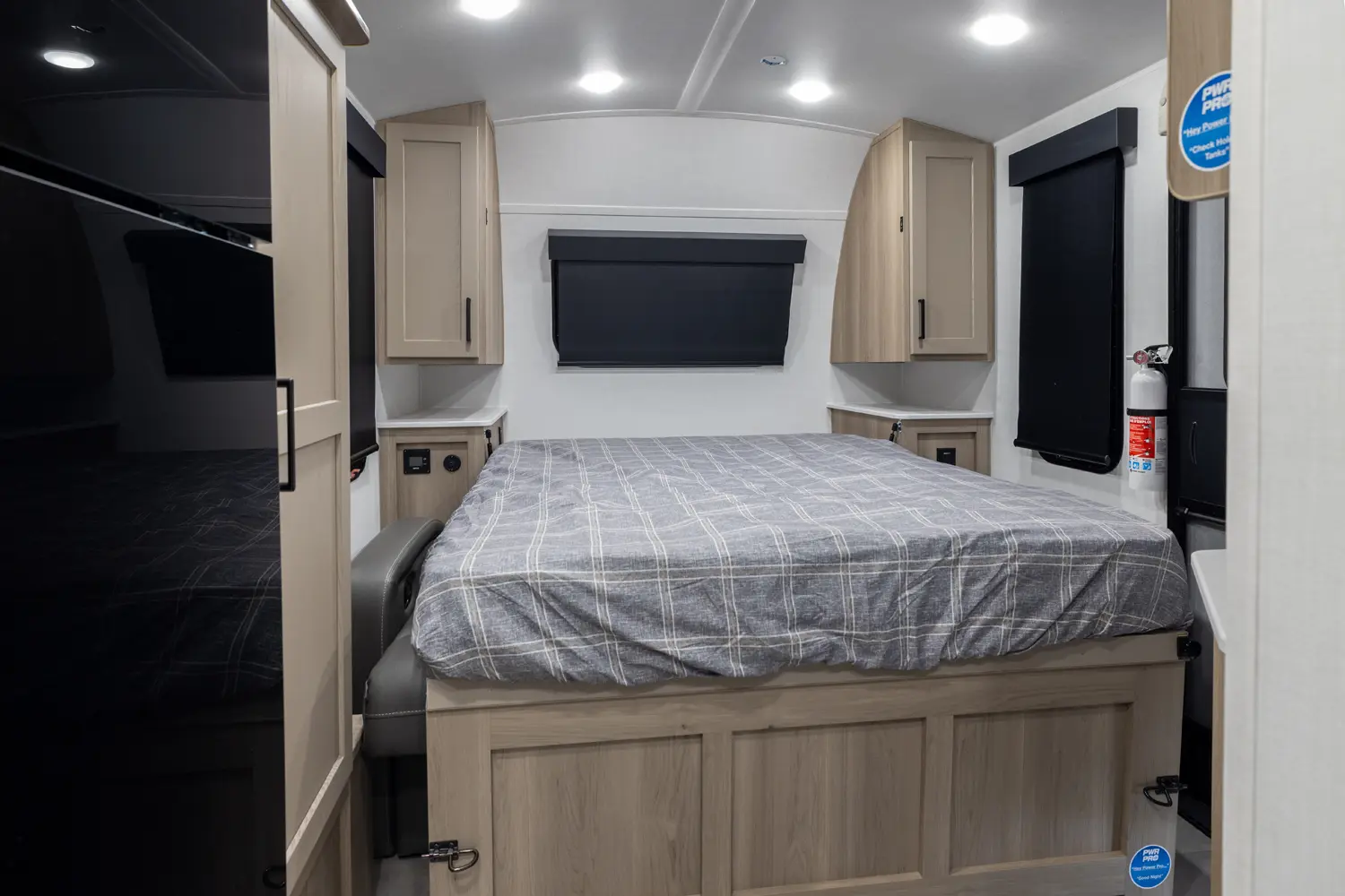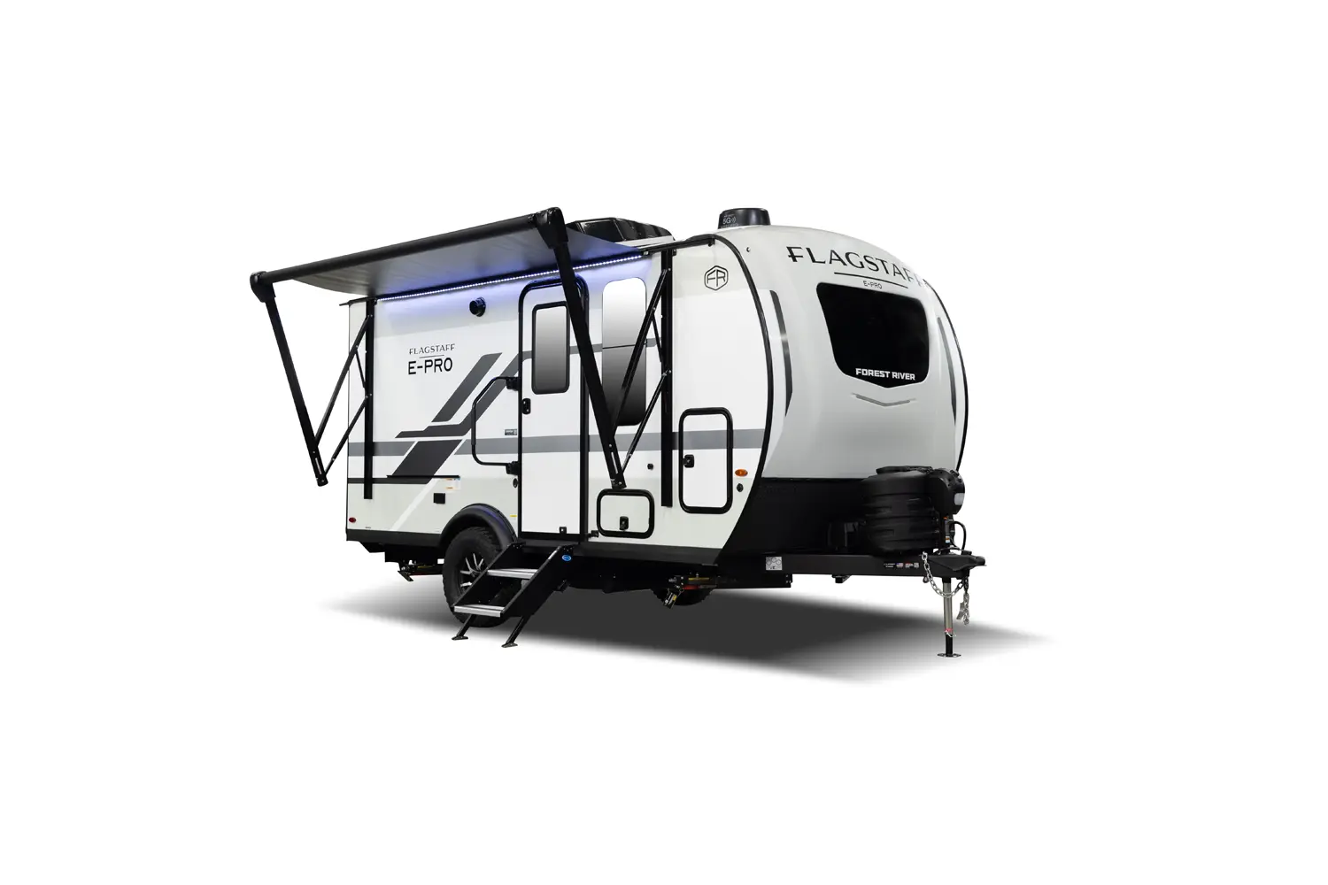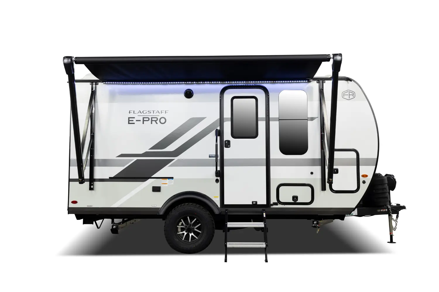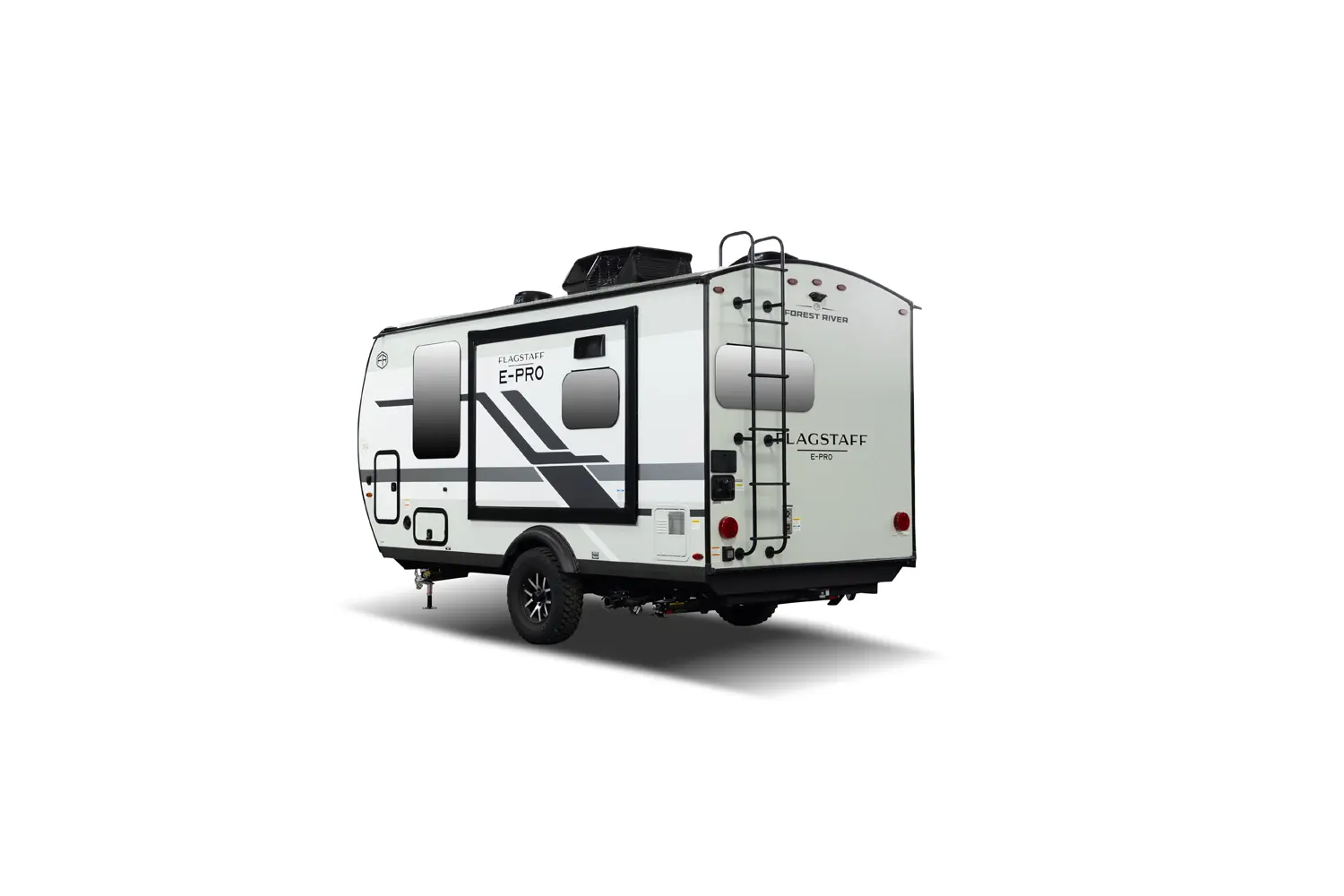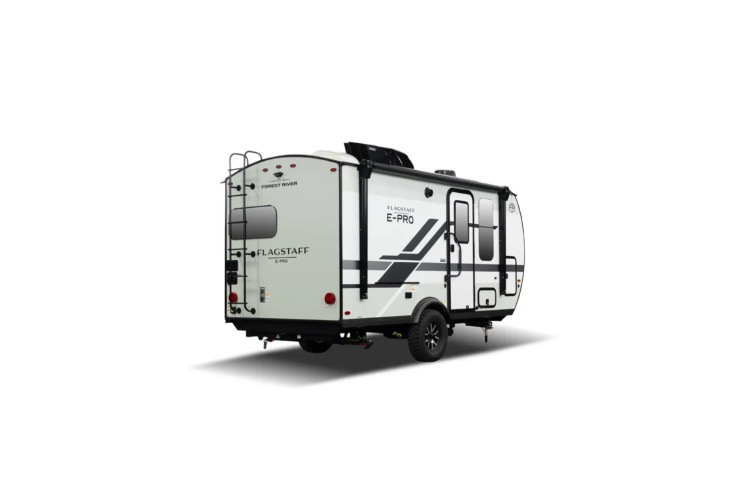 The Flagstaff E-Pro 15FBS delivers a smart, space-efficient layout and a compact, easy-to-tow trailer. The Murphy bed quickly converts into a comfortable sofa, giving you both living and sleeping space. A functional rear kitchen offers solid prep space and storage, while the large side bathroom features a squared shower providing extra comfort and room not often found in trailers this size.