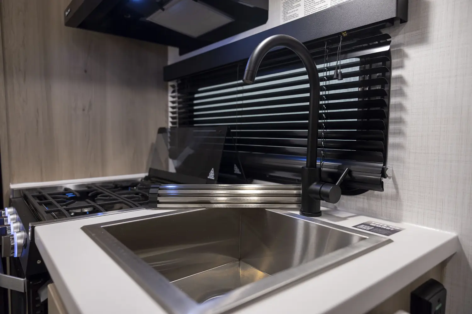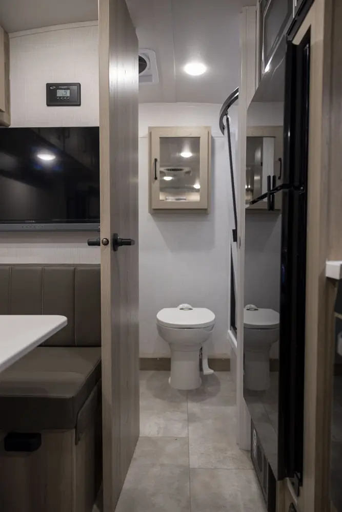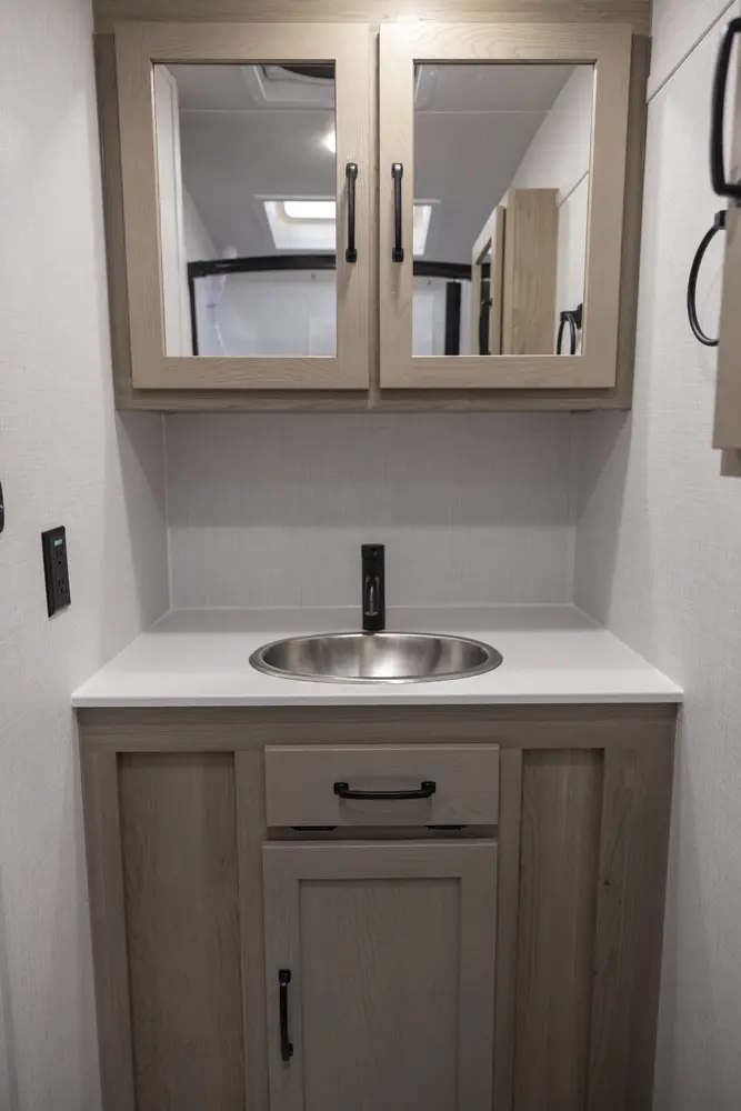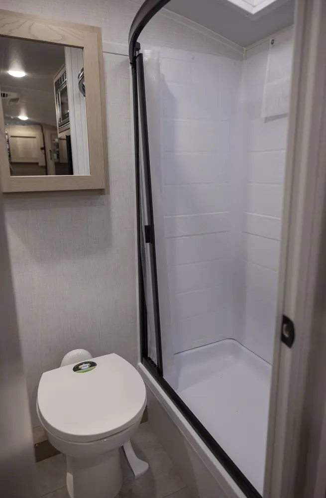 The Flagstaff E-Pro E19FD has one entry and zero slide outs. Exterior features include: fiberglass exterior and 14' awning. Interiors features include: murphy bed and rear bathroom.