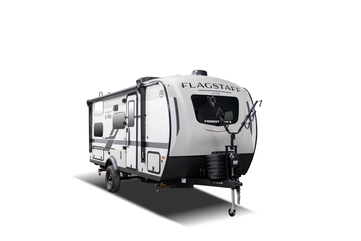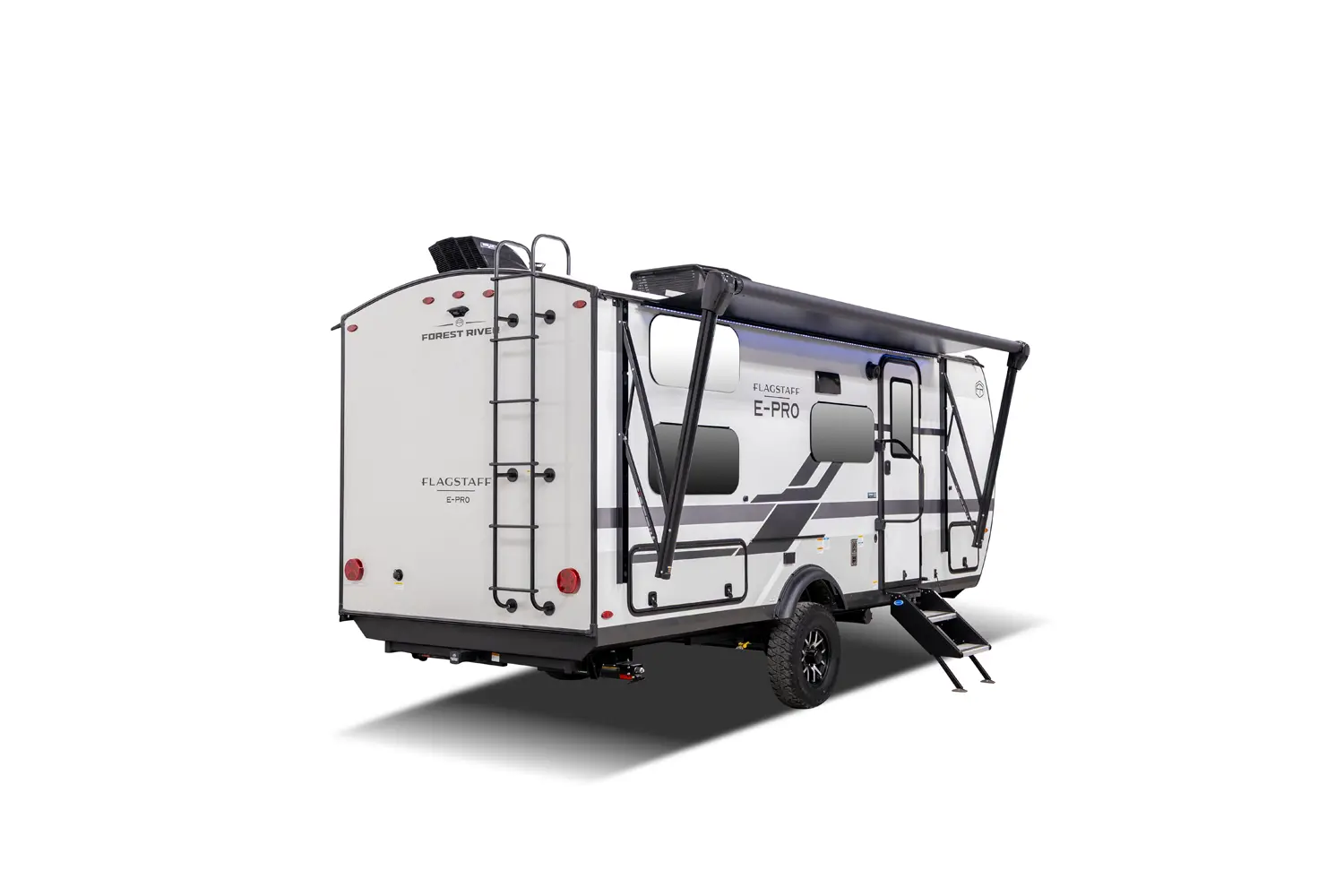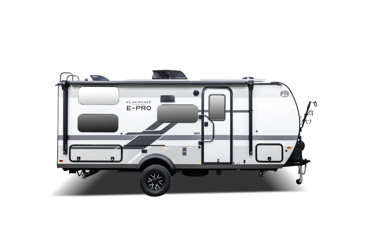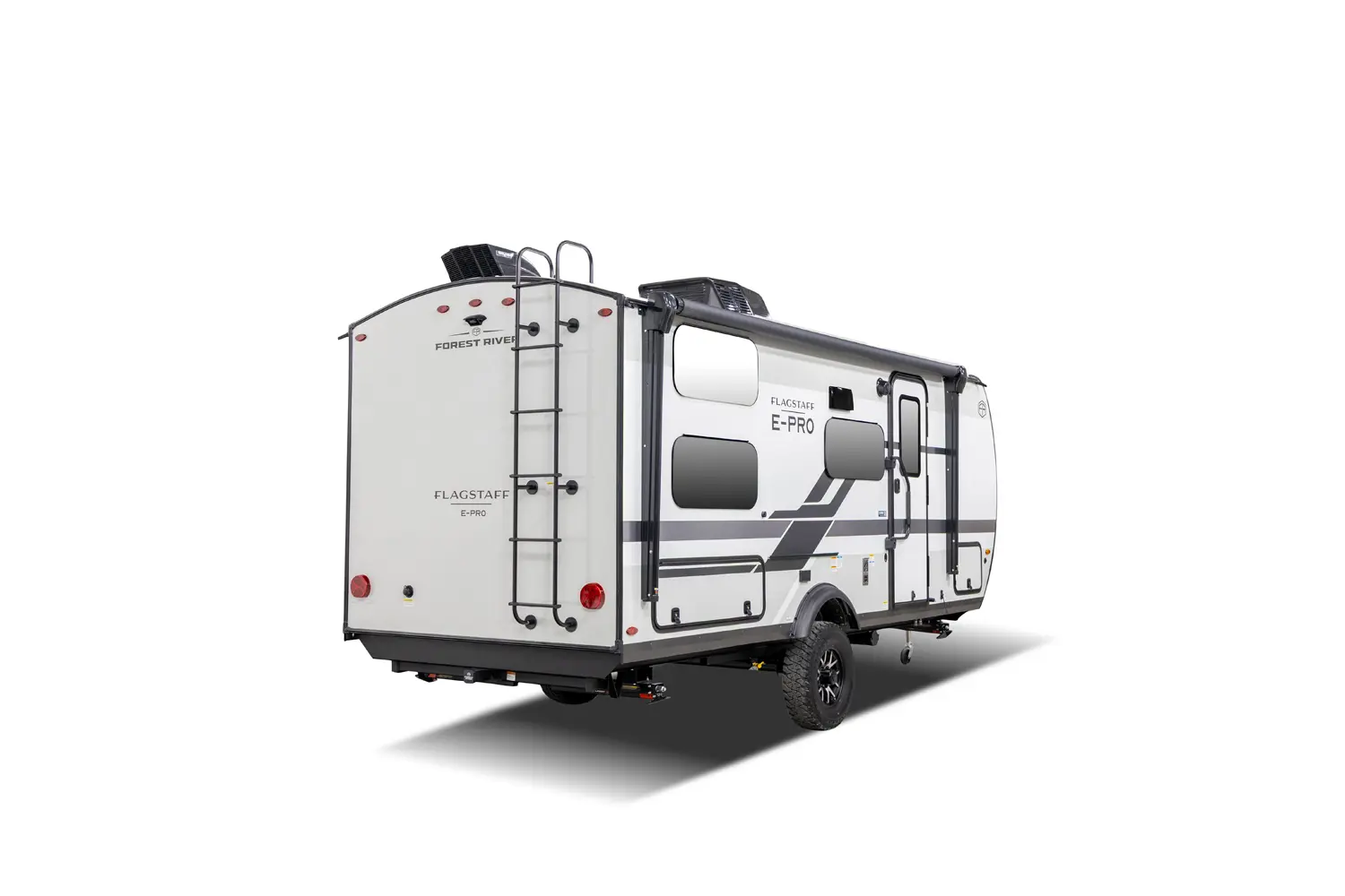 The E-Pro 20BH is a lightweight bunkhouse designed for adventure. At just over 21 feet long, it’s easy to tow while still offering sleeping space for the whole family. It features rear bunks and a versatile dinette. The functional kitchen, modern interior, and standard off grid features like 200-Watt solar paired with an 1800-Watt inverter makes the 20BH a perfect option for campers you want comfort capability and freedom to explore.