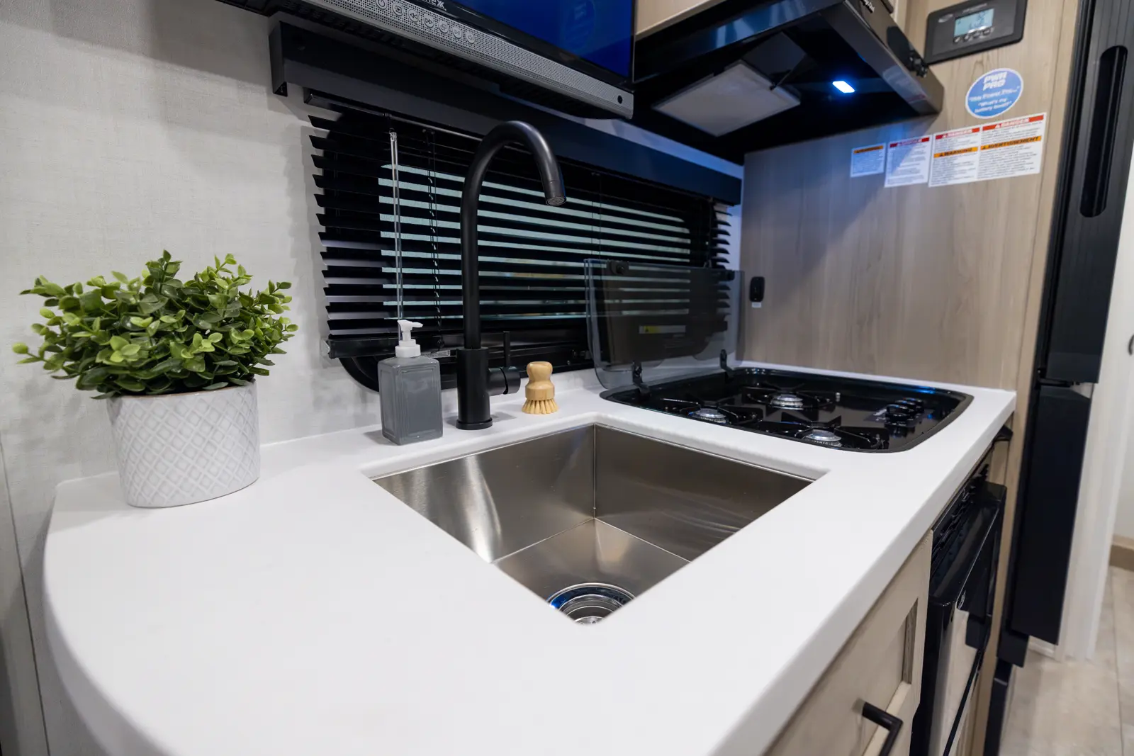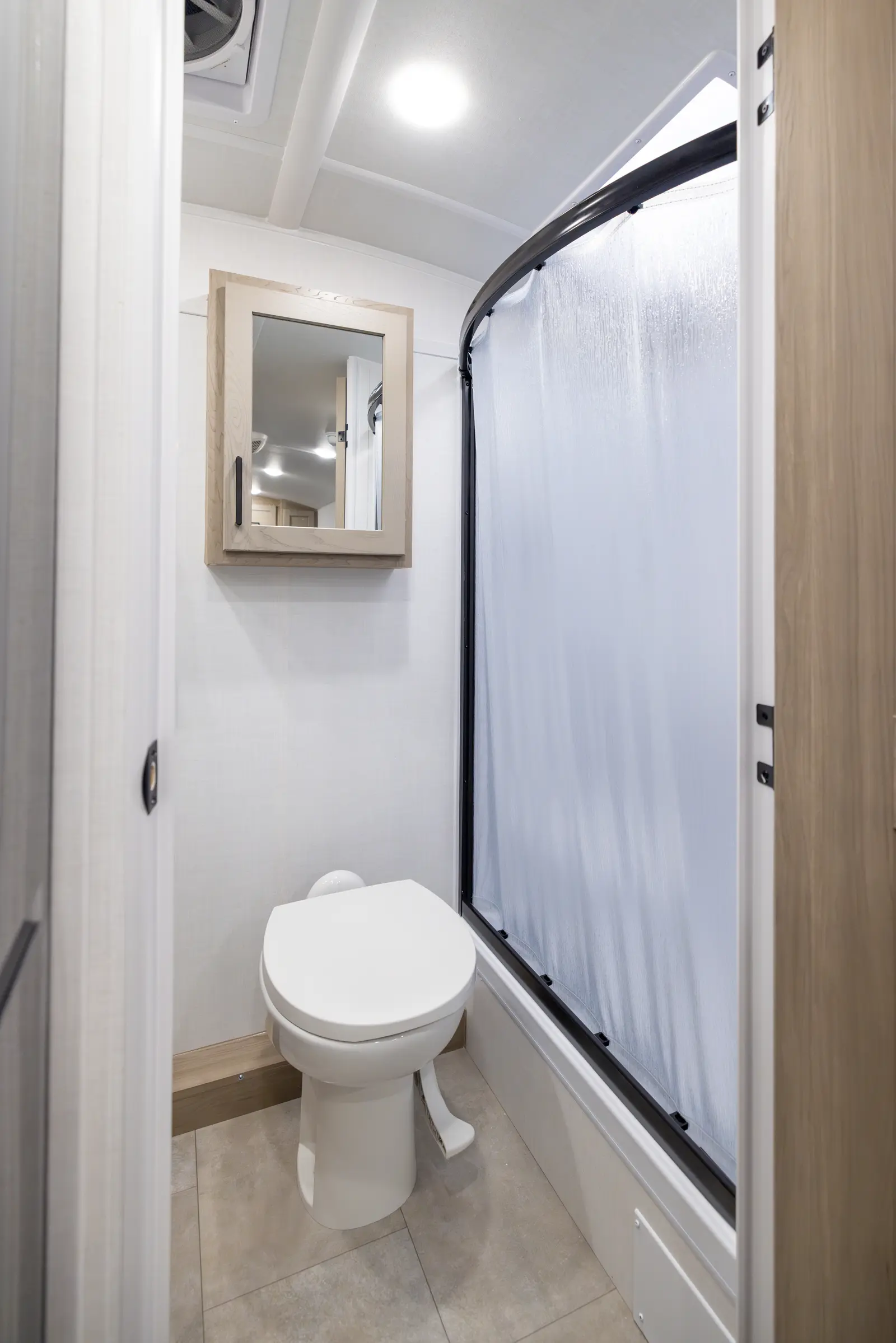 With this Flagstaff E-Pro E20FBS, the “we heard you” theme continues, this unit has a full walk around bed that the public is asking for. The large bathroom across the rear of the coach with an oversized shower makes using the facility roomy and comfortable. The 72” sofa is large and can rotate into a comfortable hide-a-bed. If you desire a stationary walk around bed in a single axle, this is the unit for you.