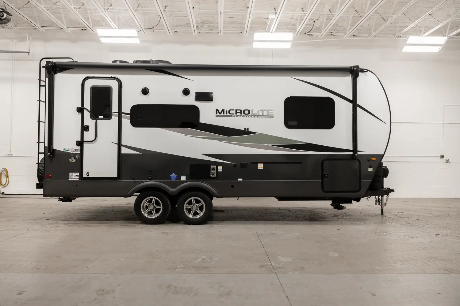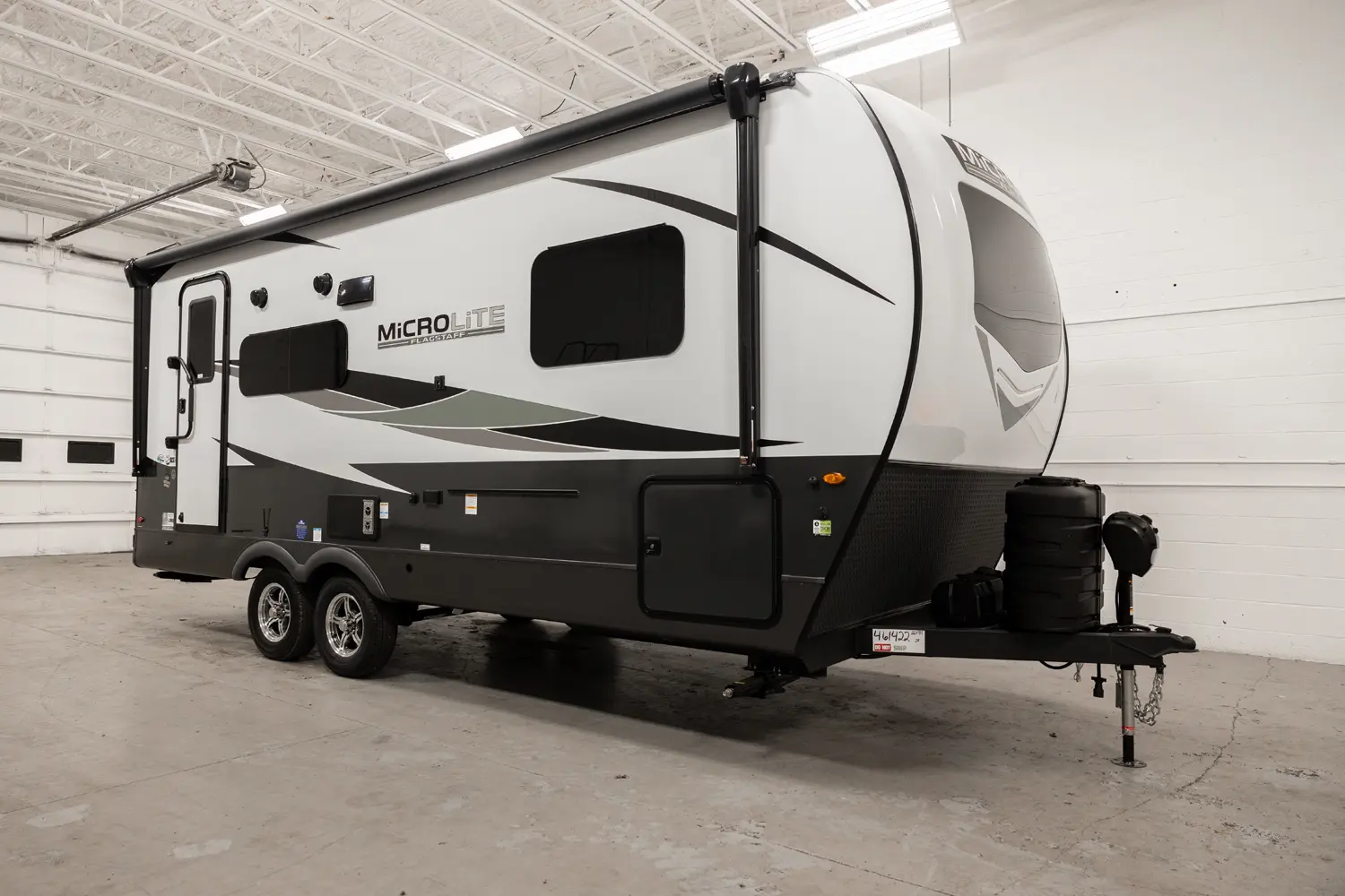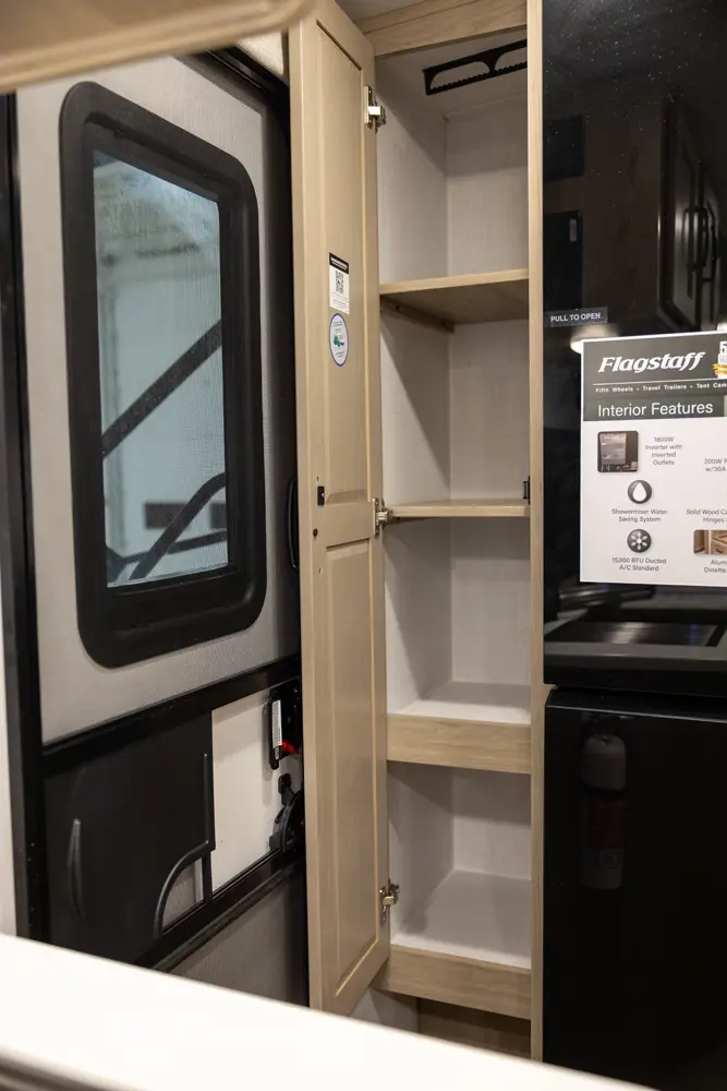 The Flagstaff Micro Lite 22FBS floorplan has one entry and one slide out. Exterior features include: fiberglass exterior and 18' awning. Interiors features include: front bedroom.