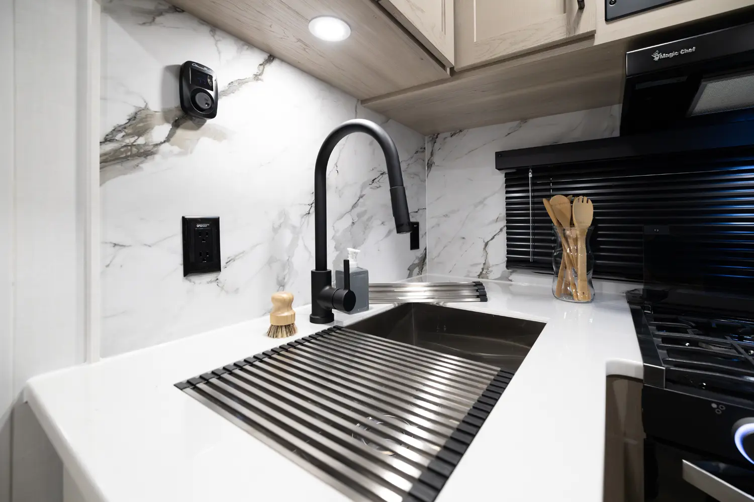 • Platinum Package: Auto Leveling, Frameless Windows, 1800W Inverter, MORryde Strut Assist Entry Step, Dual 30 LP Tanks