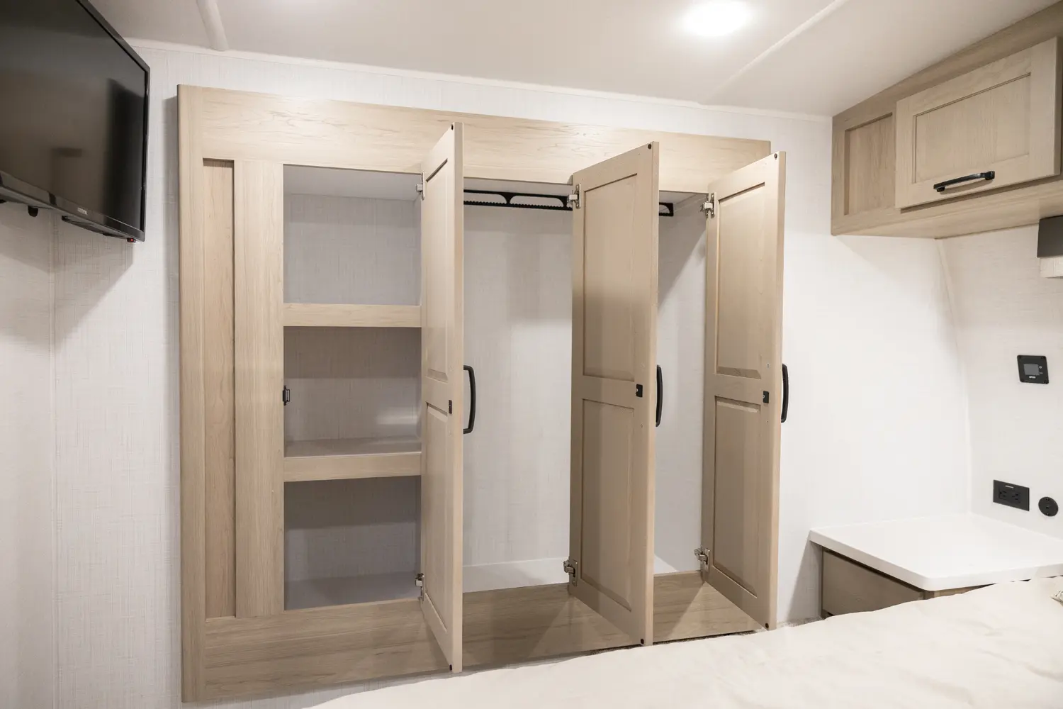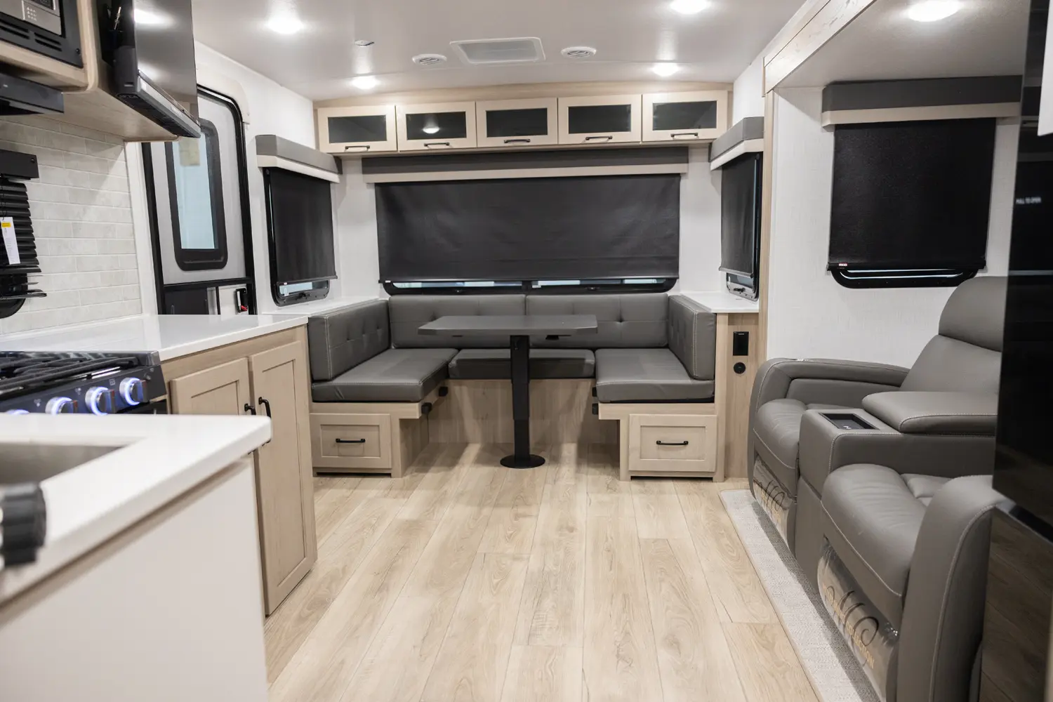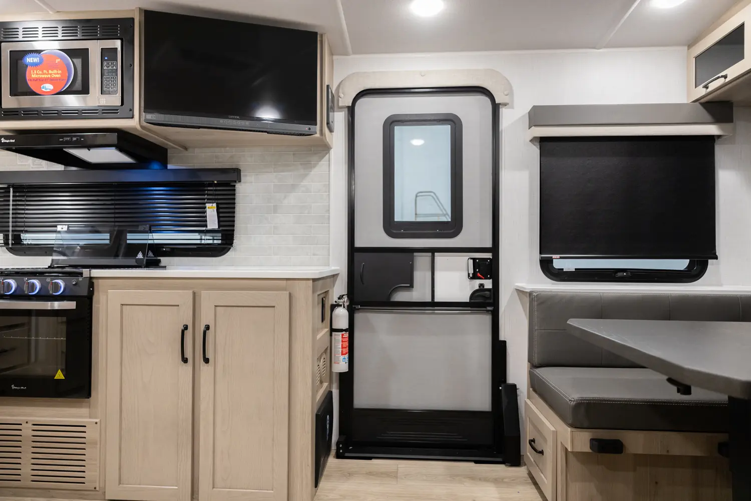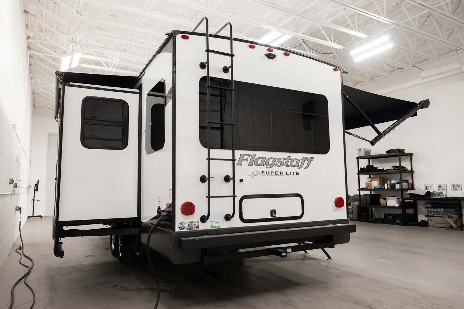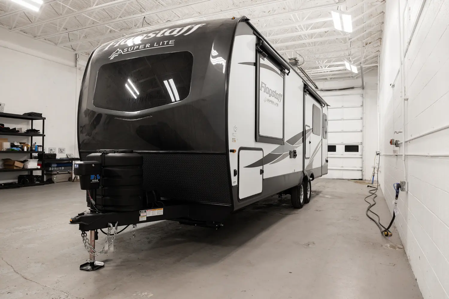 The Flagstaff Super Lite Travel Trailers 26SRD has one entry and two slide outs. Exterior features include: fiberglass exterior and 21' awning. Interiors features include: u-dinette, front bedroom and pass through bathroom.