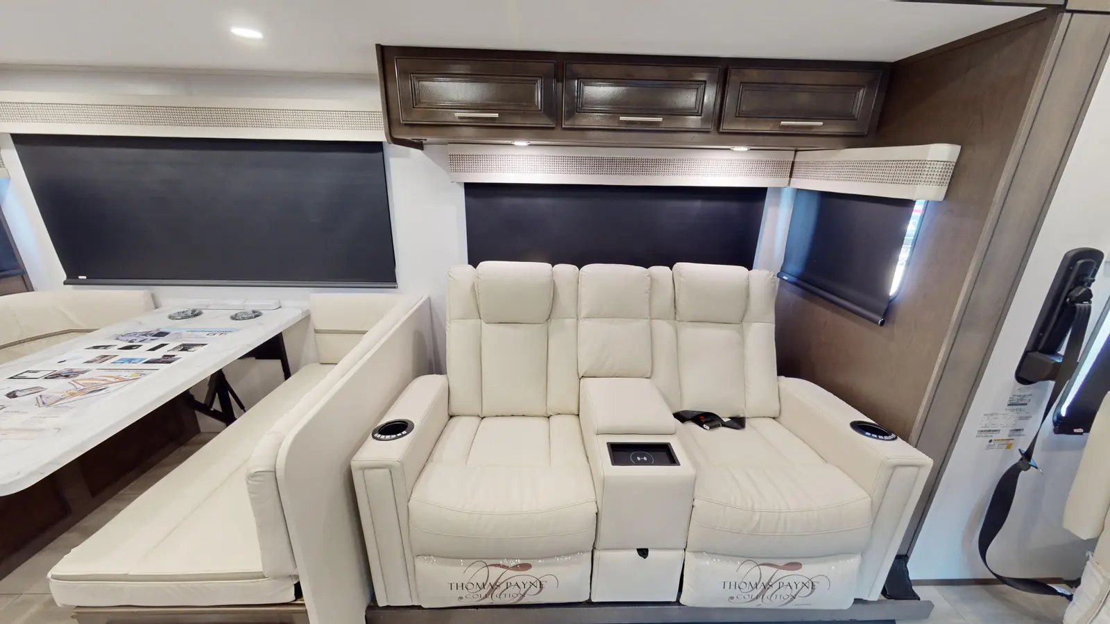 • Optional Thomas Payne Power Theater Seats w/ USBs, Recline, Adjustable Head Rests, Heat, Massage, and Lumbar (32A3, 33B3 Only)