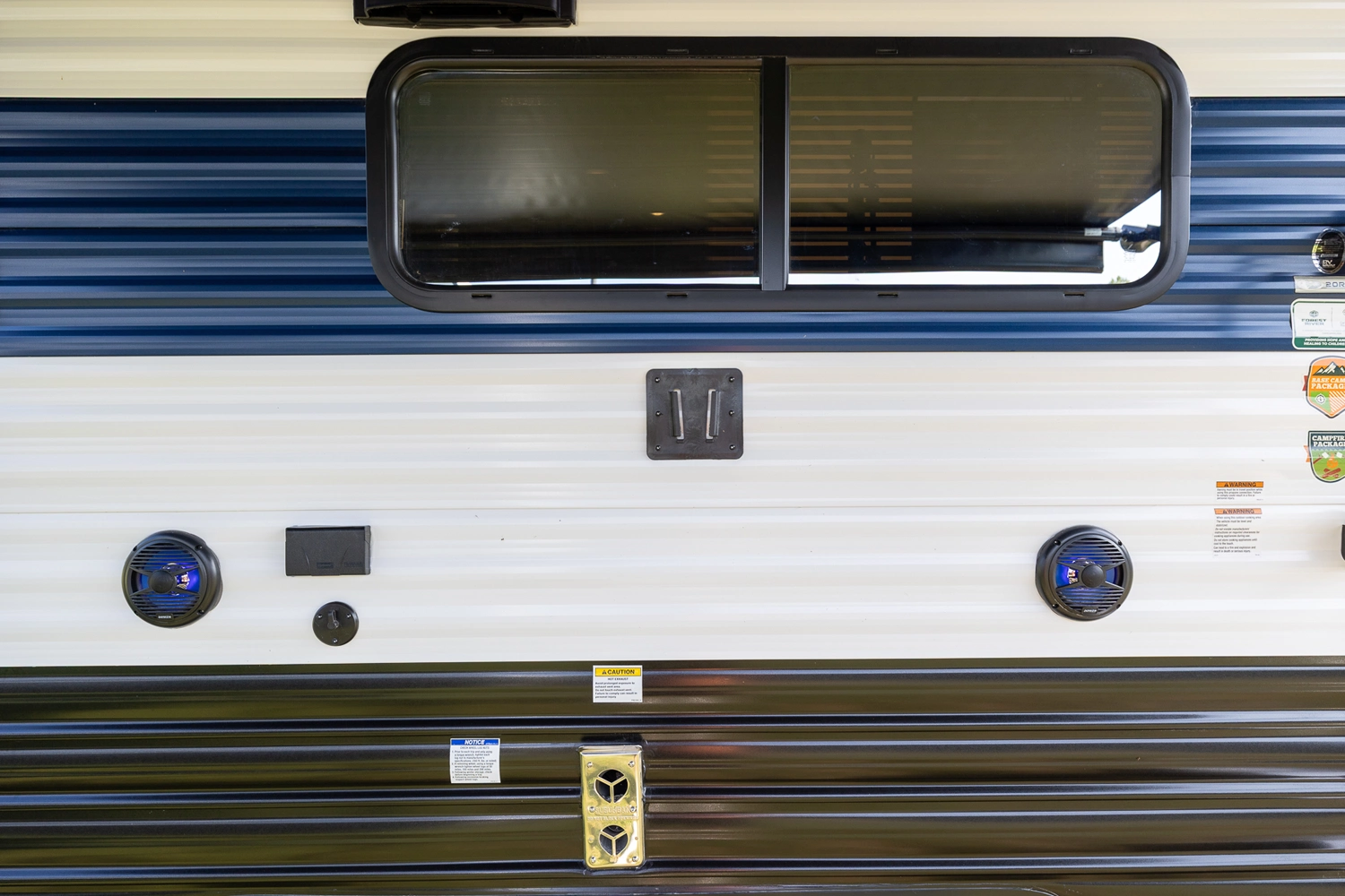 • Blackout Glass, Safety Slam, Friction Hinge Entry Door with Window and Shade Prep (N/A on LP models)