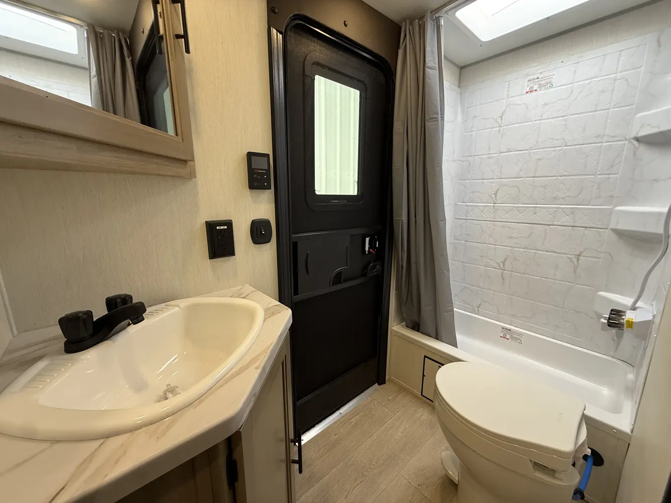 • Blackout Glass, Safety Slam, Friction Hinge Entry Door with Window and Shade Prep (N/A on LP models)