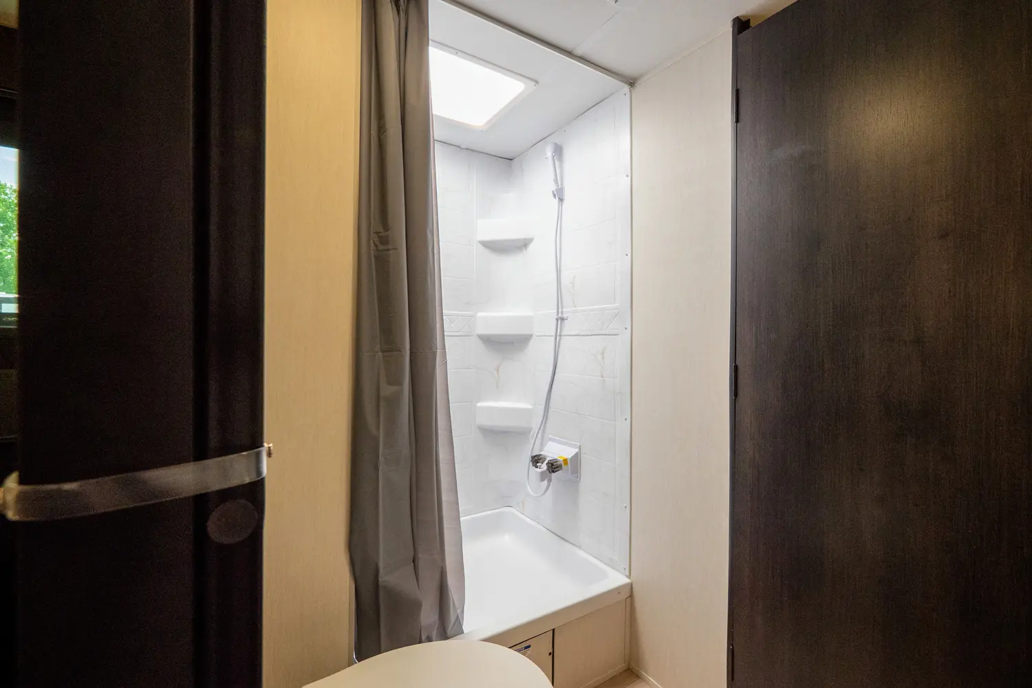 The Grey Wolf 29NM floorplan has two entries and one slide out. Exterior features include: metal exterior, 15' awning and outside kitchen. Interiors features include: bunk beds, u-dinette, front bedroom and pass through bathroom.