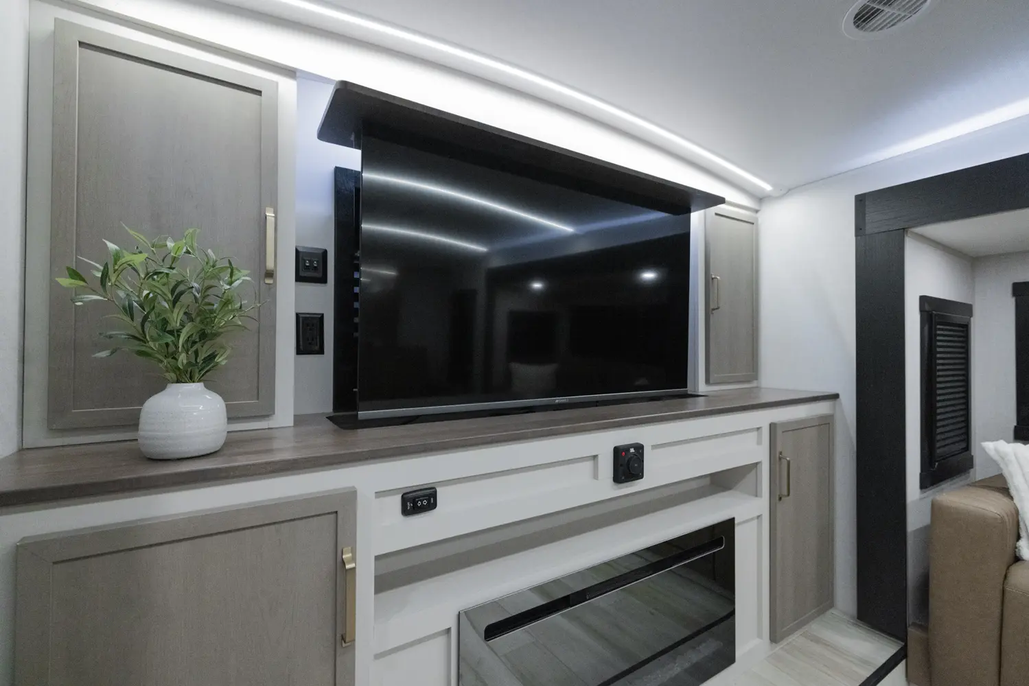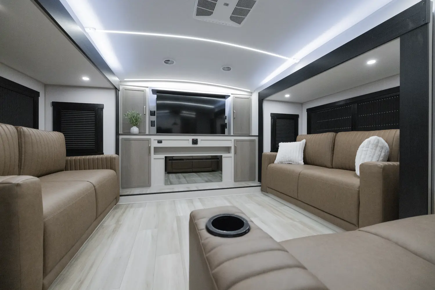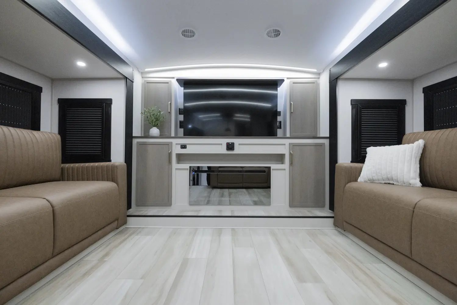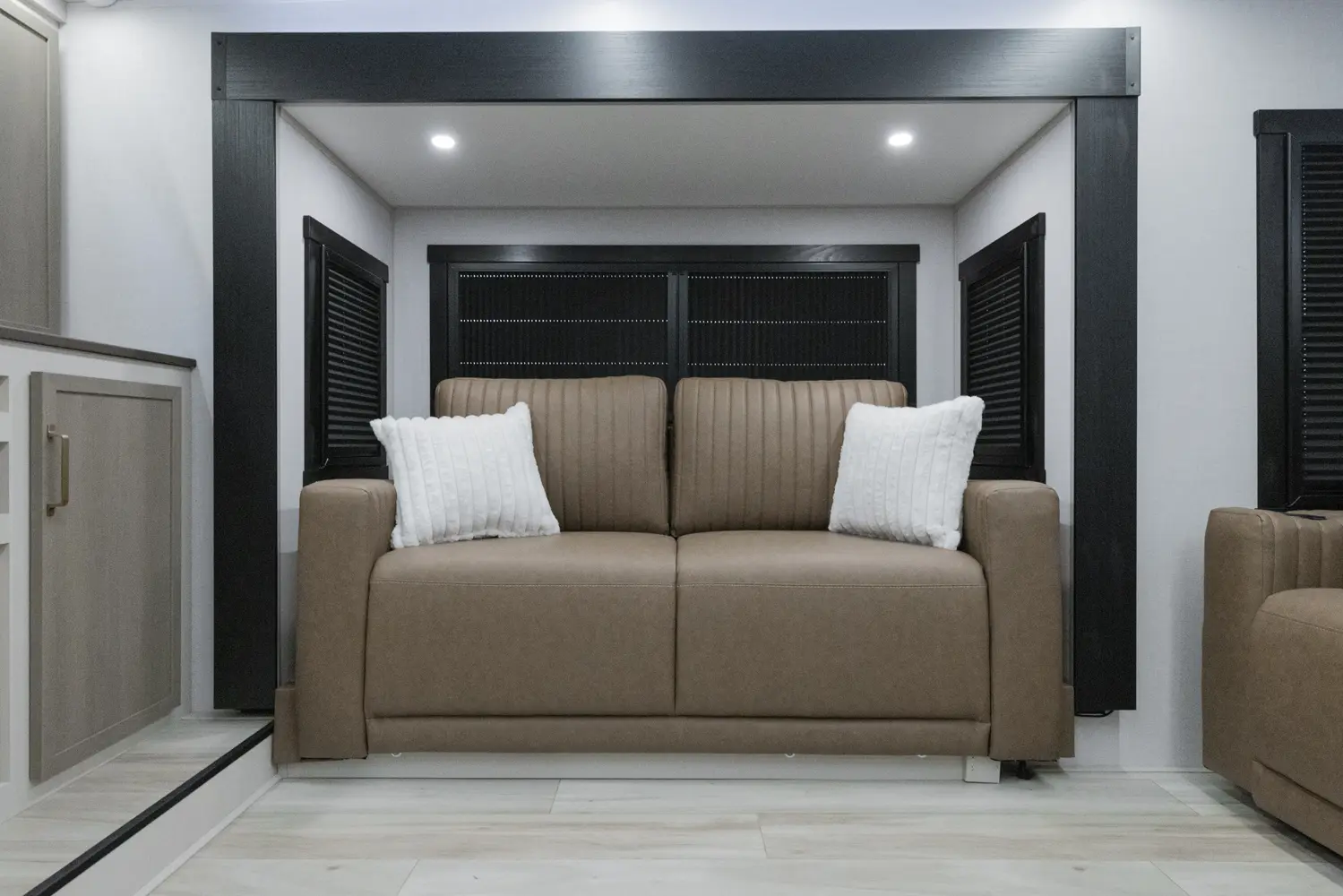 The 36FL takes the term "Elite" to a whole new level. This floorplan takes all of the great advantages of a front living fifth wheel and adds in TONS storage. It also sports the LARGEST outside kitchen of any front living model. This show-stopper of a floorplan also offers a bath & 1/2.