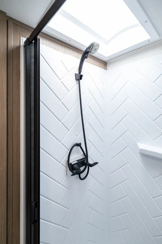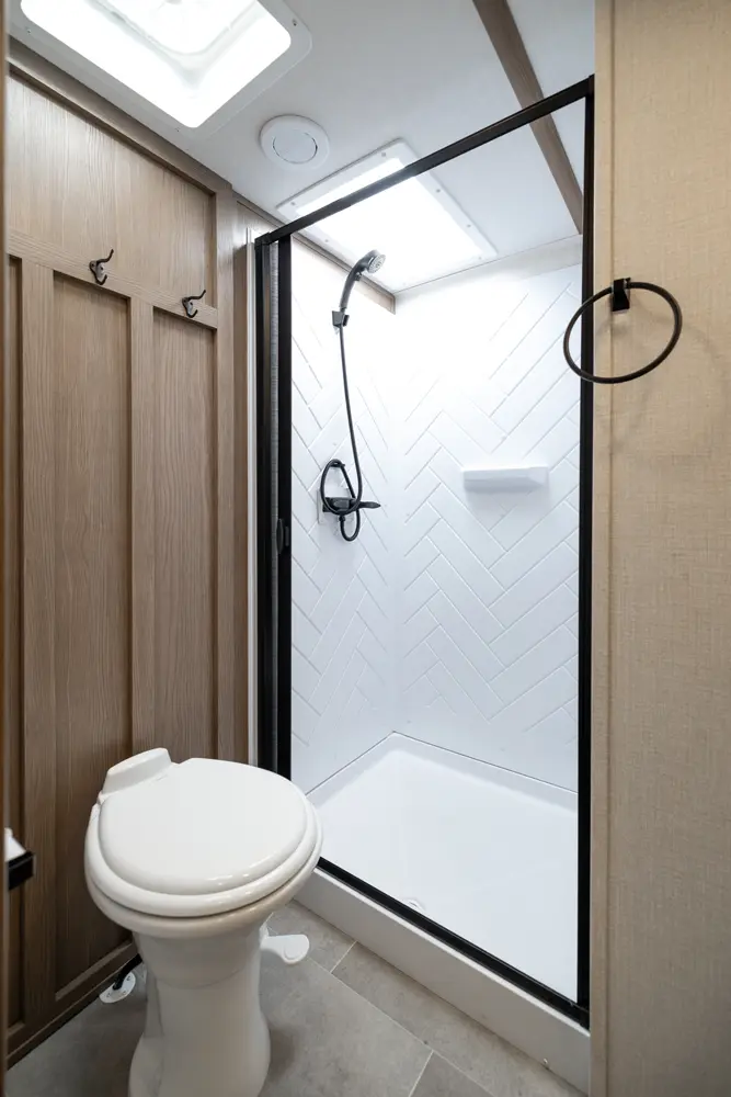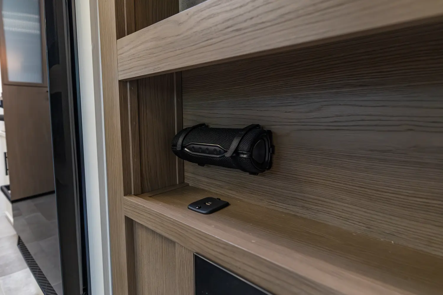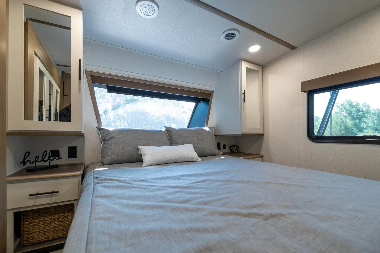 • 110 Outlet & 12V Charging Ports Beside Bed