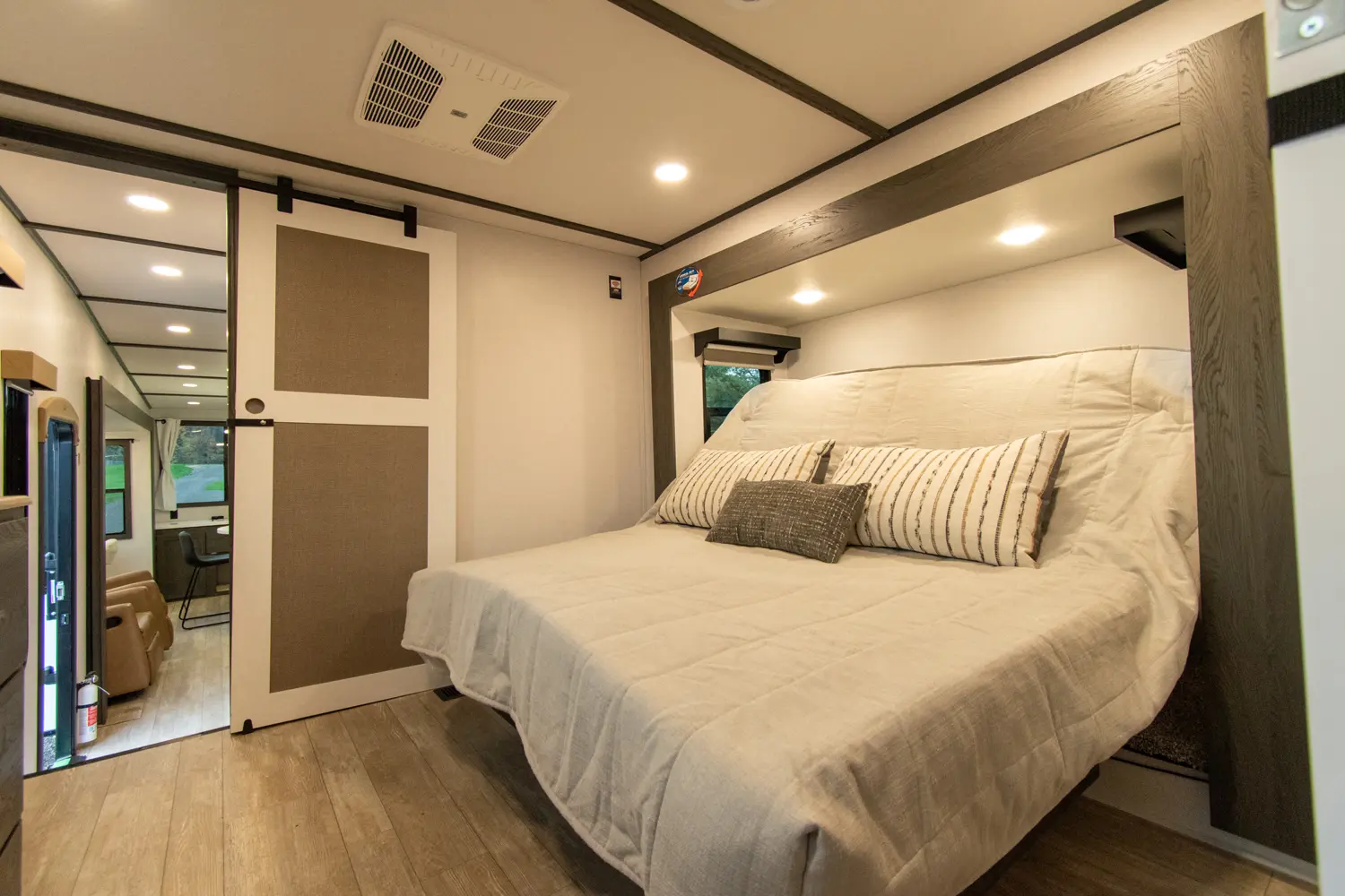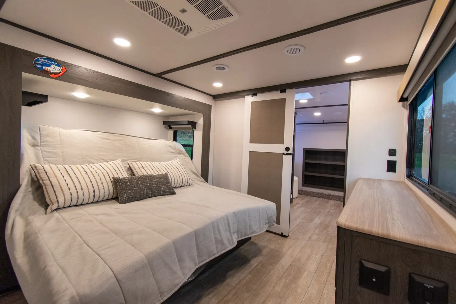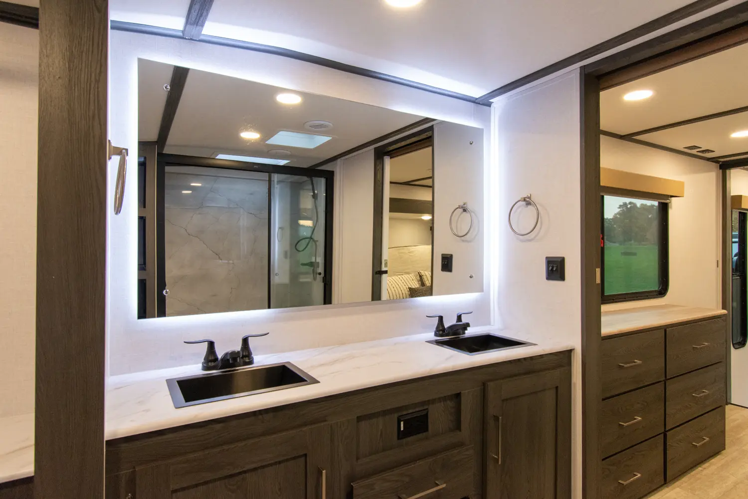 The Impression 360MYR has one entry and three slide outs. Exterior features include: fiberglass exterior and 11'6" & 20' awning. Interiors features include: rear kitchen.