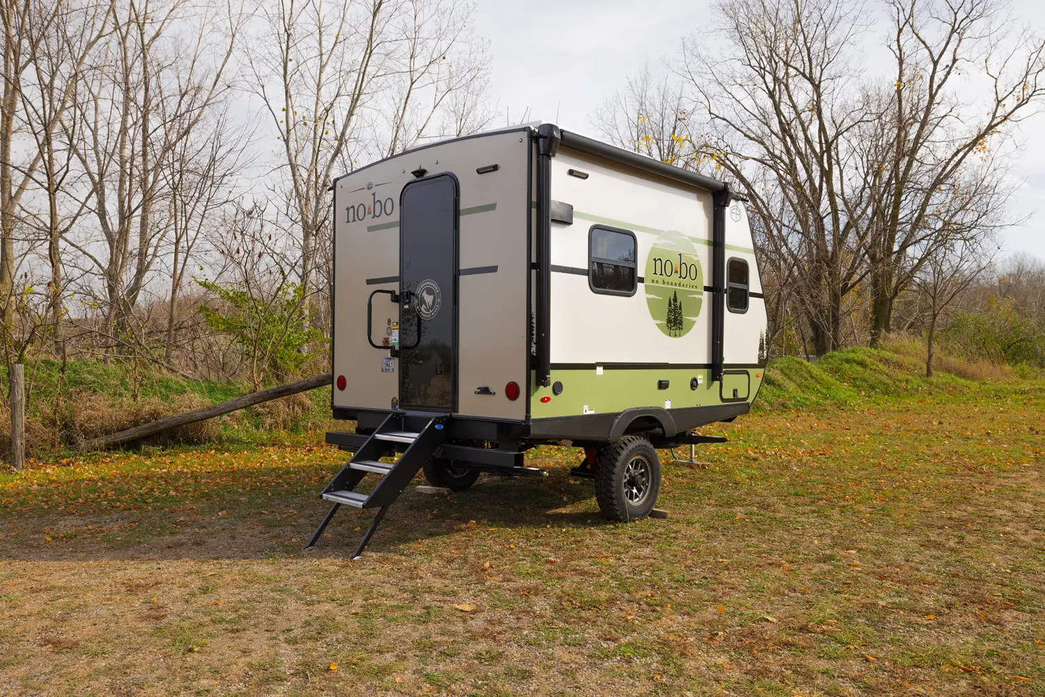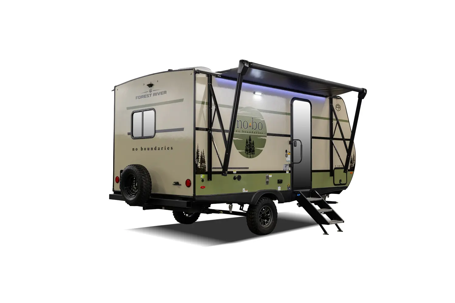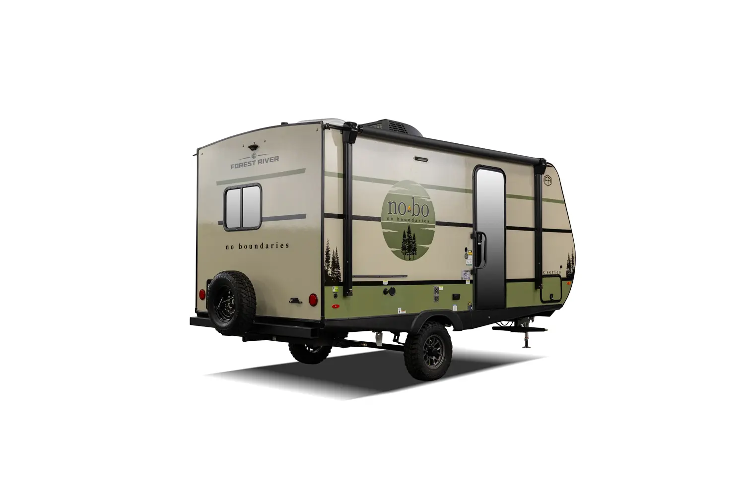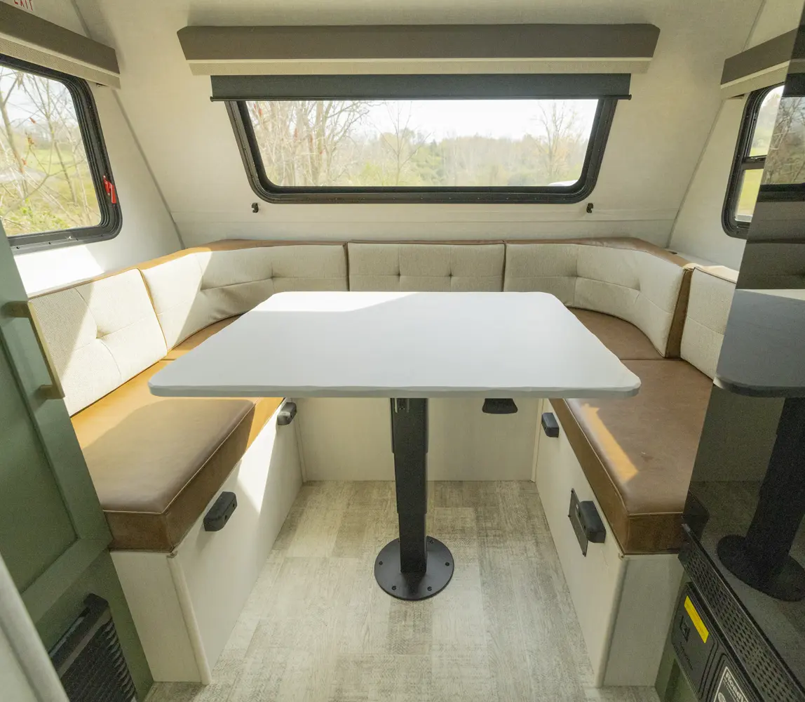 The No Boundaries NB18.1 floorplan has one entry and zero slide outs. Exterior features include: fiberglass exterior and 8' awning. Interiors features include: u-dinette.