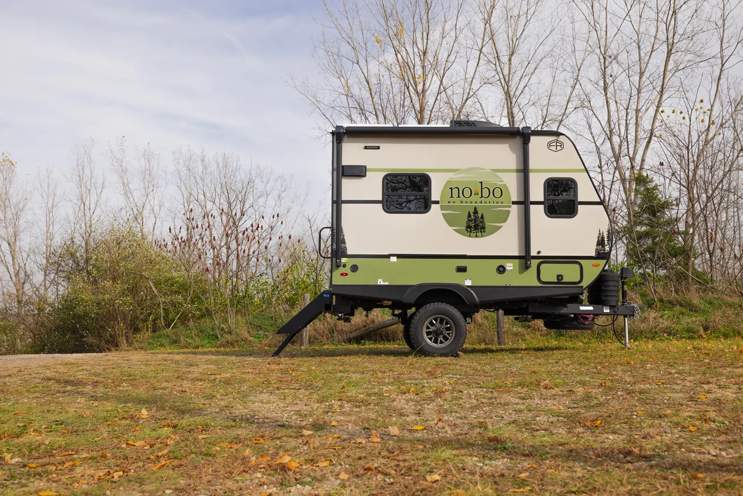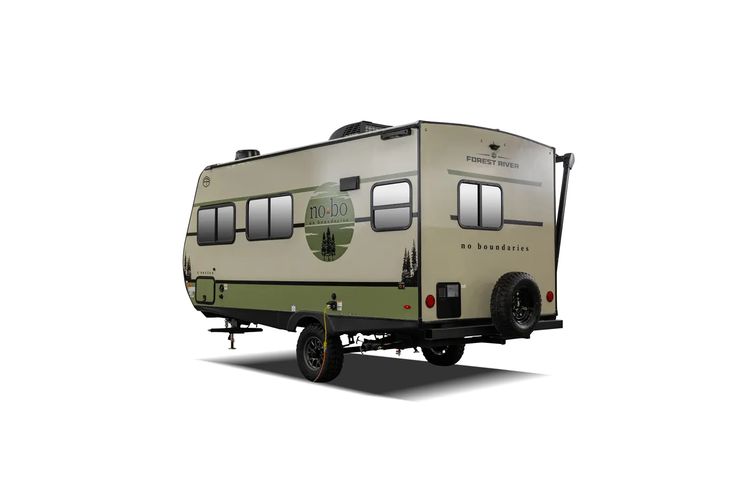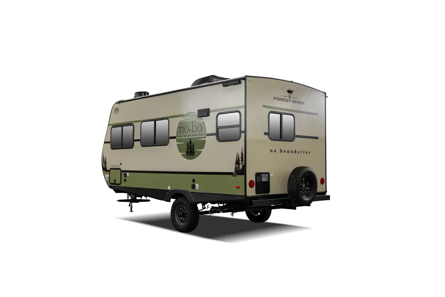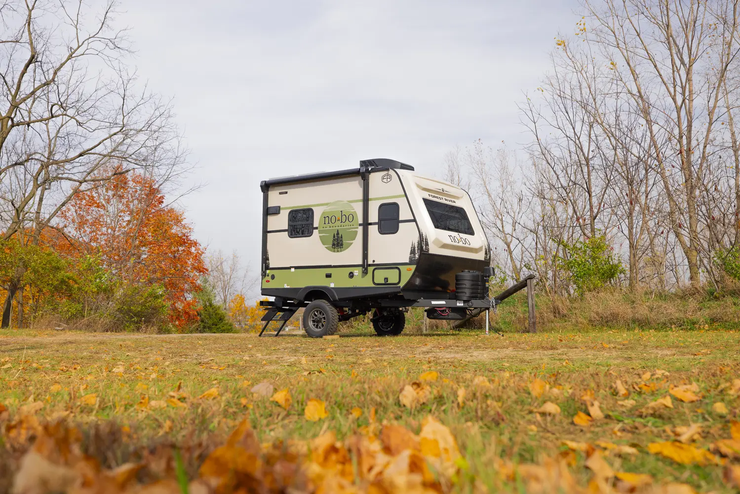 The No Boundaries NB18.1 floorplan has one entry and zero slide outs. Exterior features include: fiberglass exterior and 8' awning. Interiors features include: u-dinette.