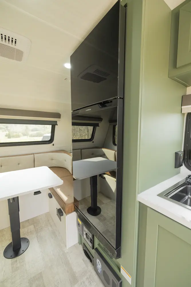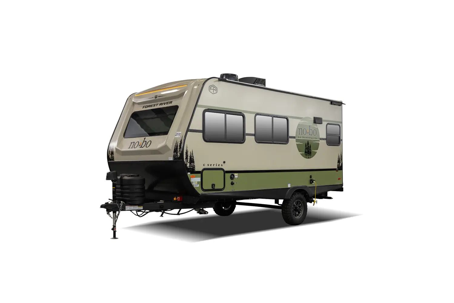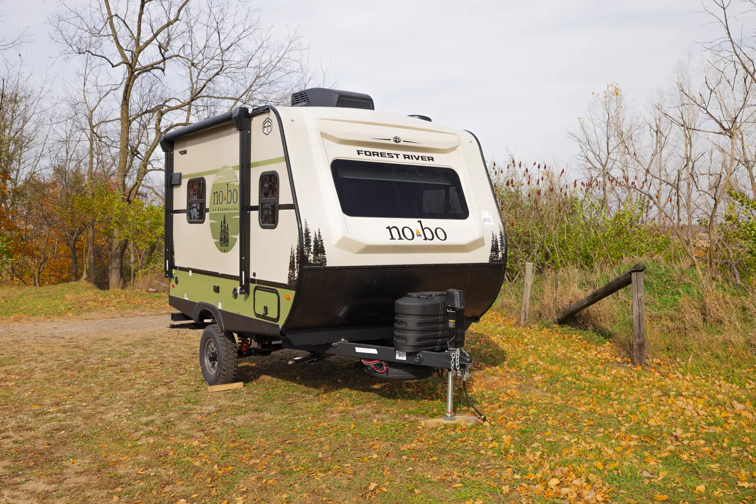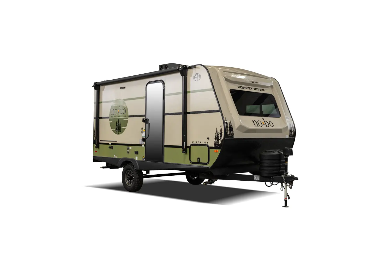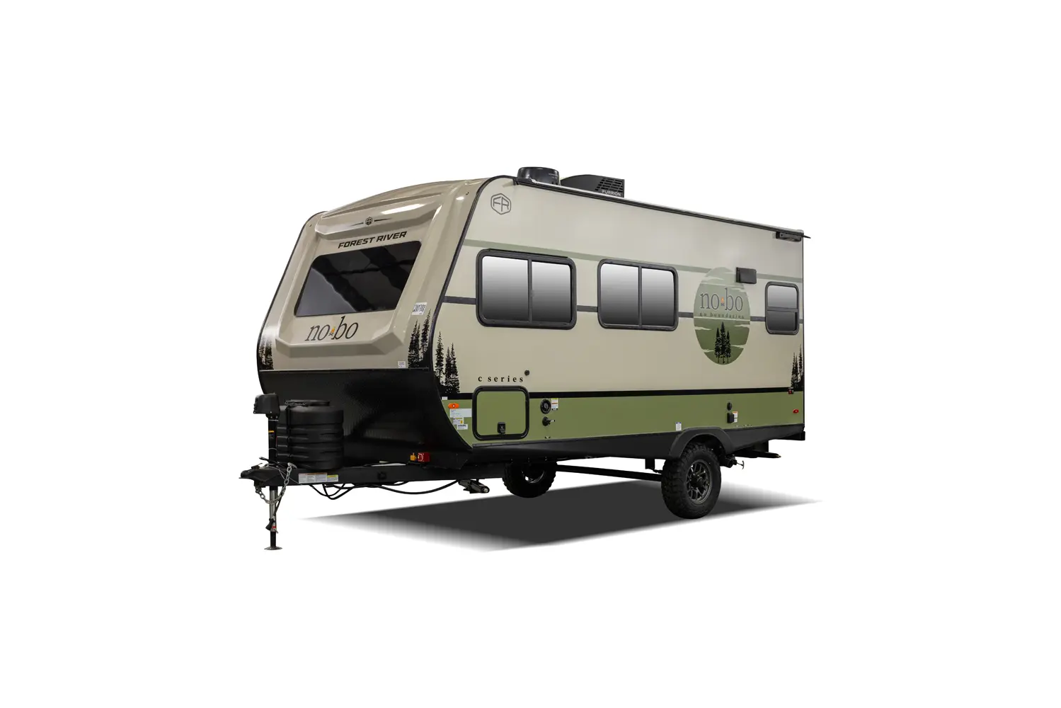 The No Boundaries NB18.1 floorplan has one entry and zero slide outs. Exterior features include: fiberglass exterior and 8' awning. Interiors features include: u-dinette.