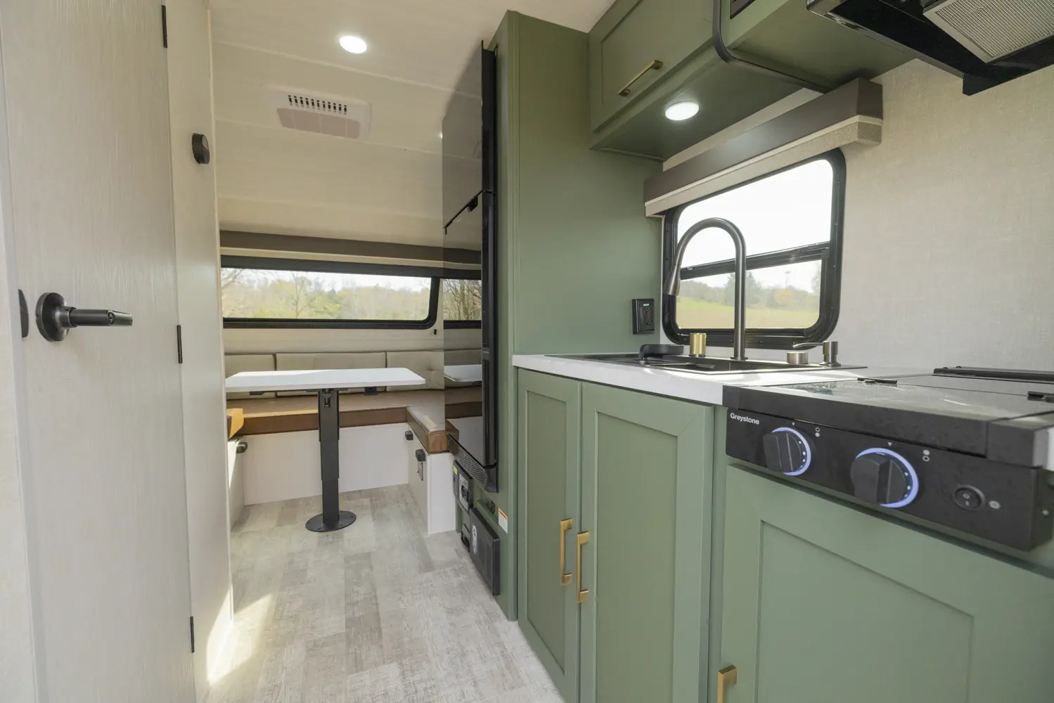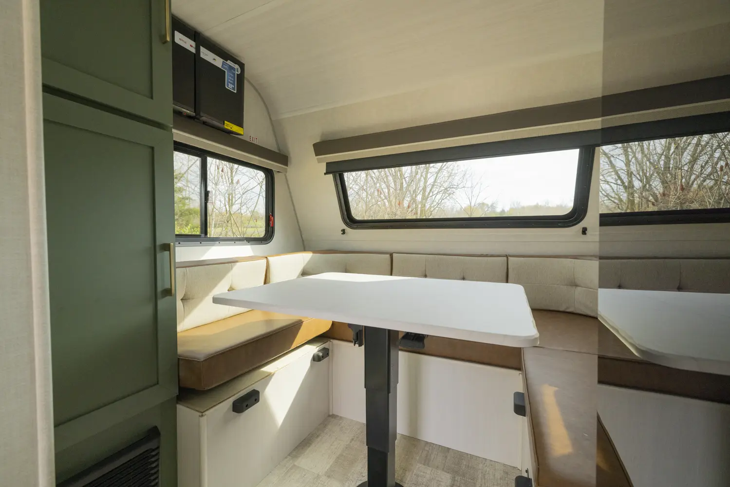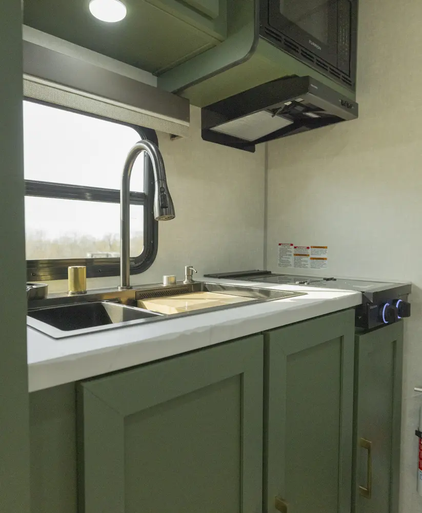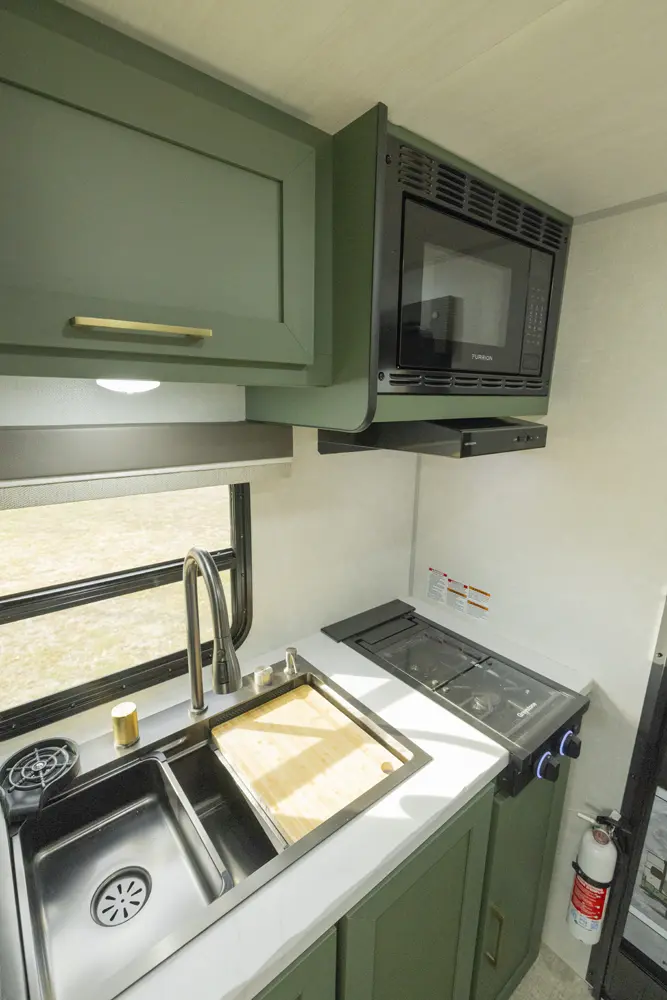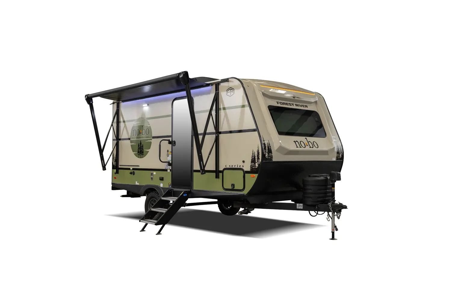 The No Boundaries NB18.1 floorplan has one entry and zero slide outs. Exterior features include: fiberglass exterior and 8' awning. Interiors features include: u-dinette.
