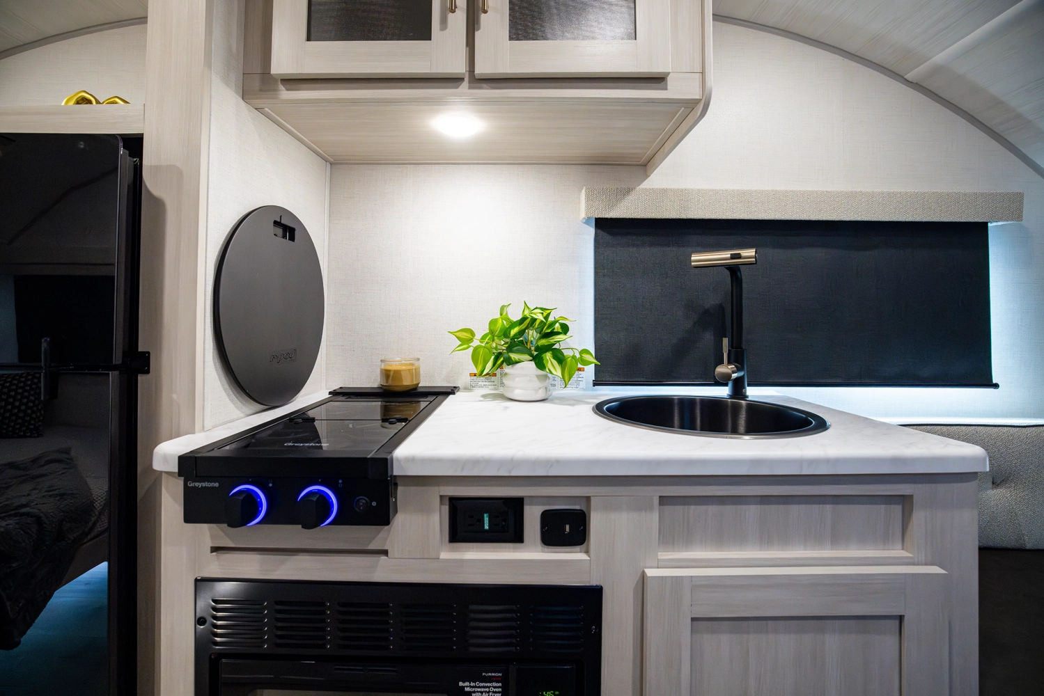 The RP-171 is an ultra-lite travel trailer offering serious features in compact form. With a well-appointed wet bath, efficient kitchen space, and a rear bedroom for restful nights, it delivers comfortable camping without excess bulk. Ample storage, modern finishes, and the thoughtful r•pod design make it ideal for couples or small families seeking lightweight, no-compromise adventures.