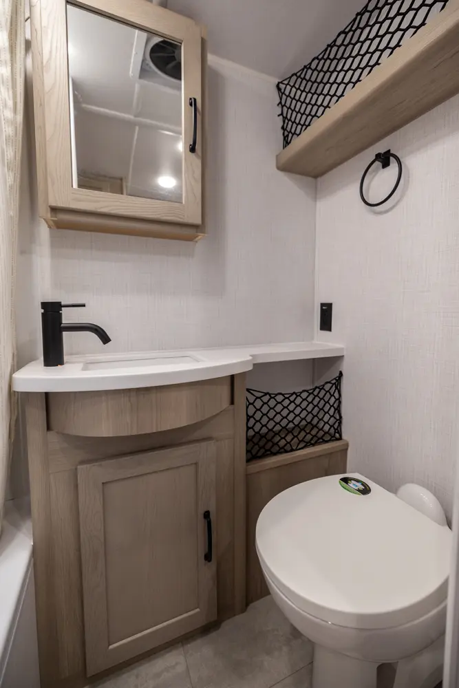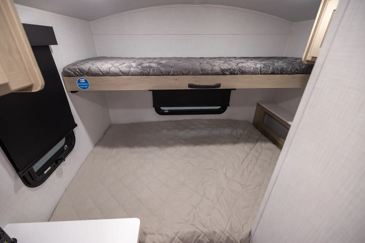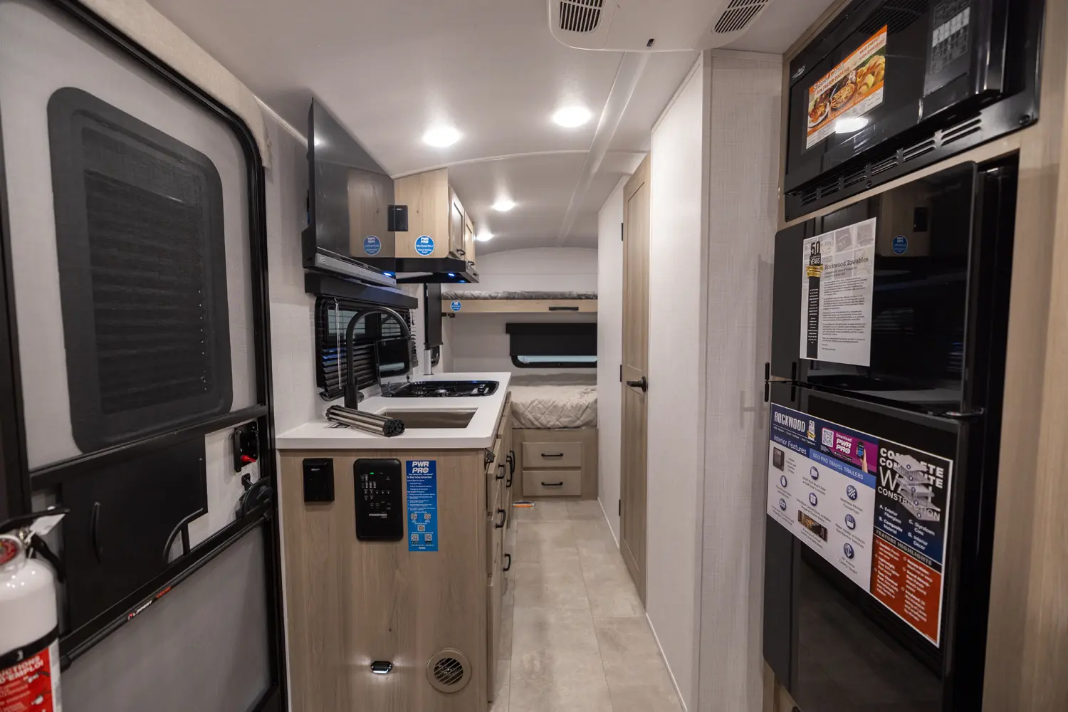 The Rockwood Geo Pro G19DBH floorplan has one entry and zero slide outs. Exterior features include: fiberglass exterior and outside kitchen. Interiors features include: bunk beds and u-dinette.