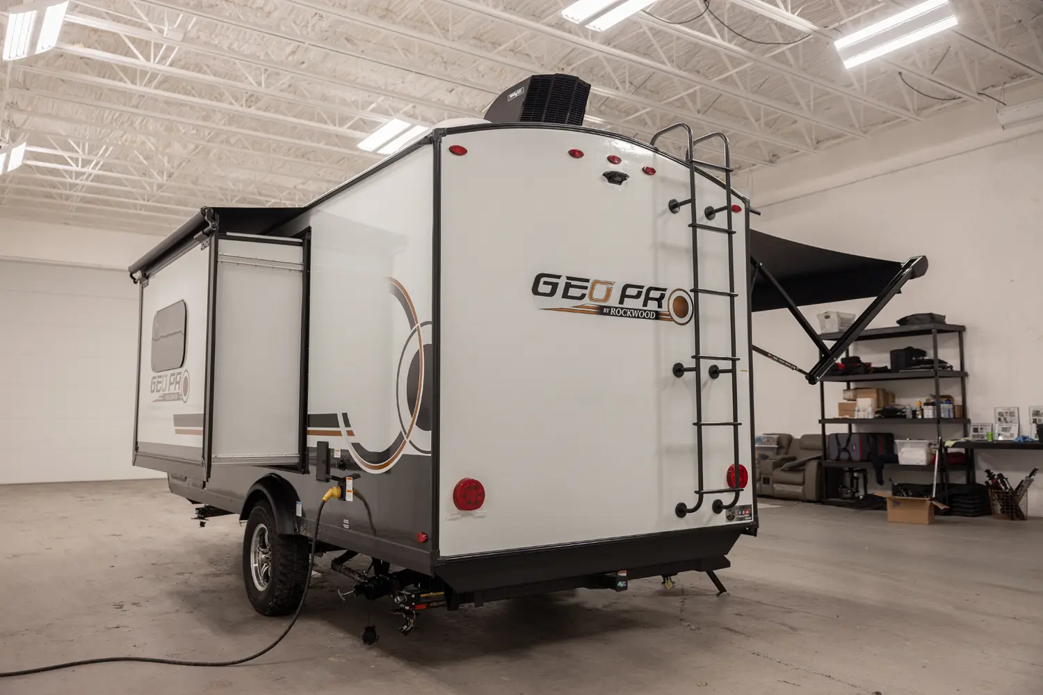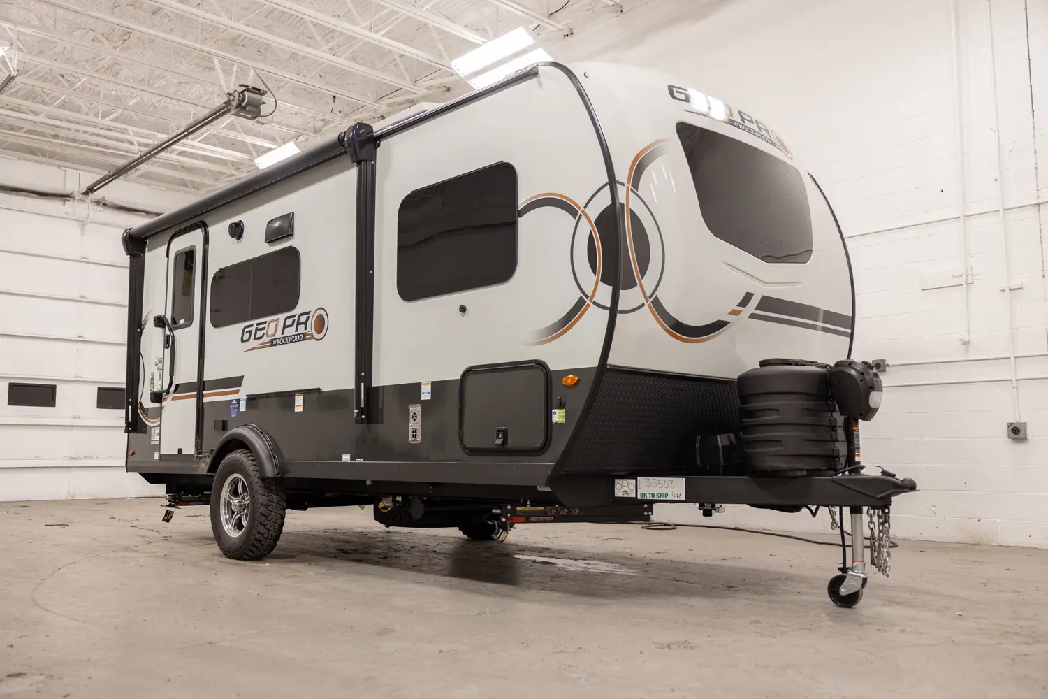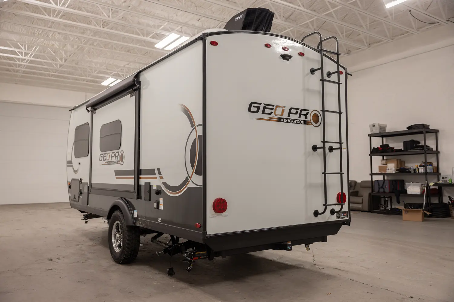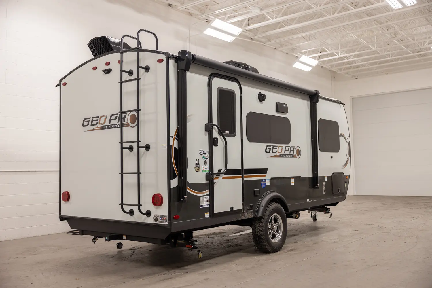 The Rockwood Geo Pro G19FBS is a rear entry couples coach with a small slide that offers so much great space. The large bathroom is one of the best features of this small couples coach. The 72” pull-out sofa also makes for a great bed for guests, children or pets. At 20’ and light weight, you will not be able to get more walk around footage than this great couples coach.