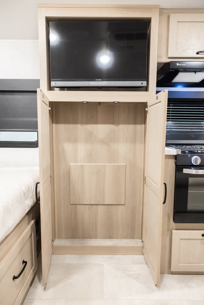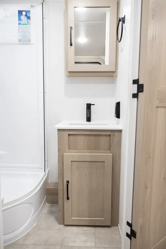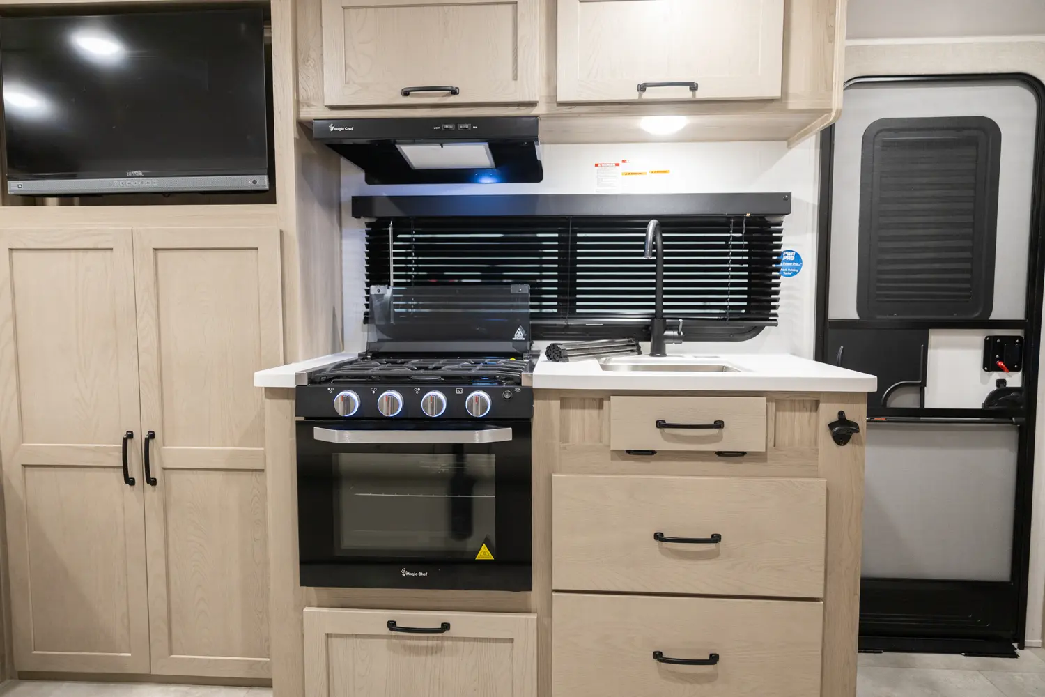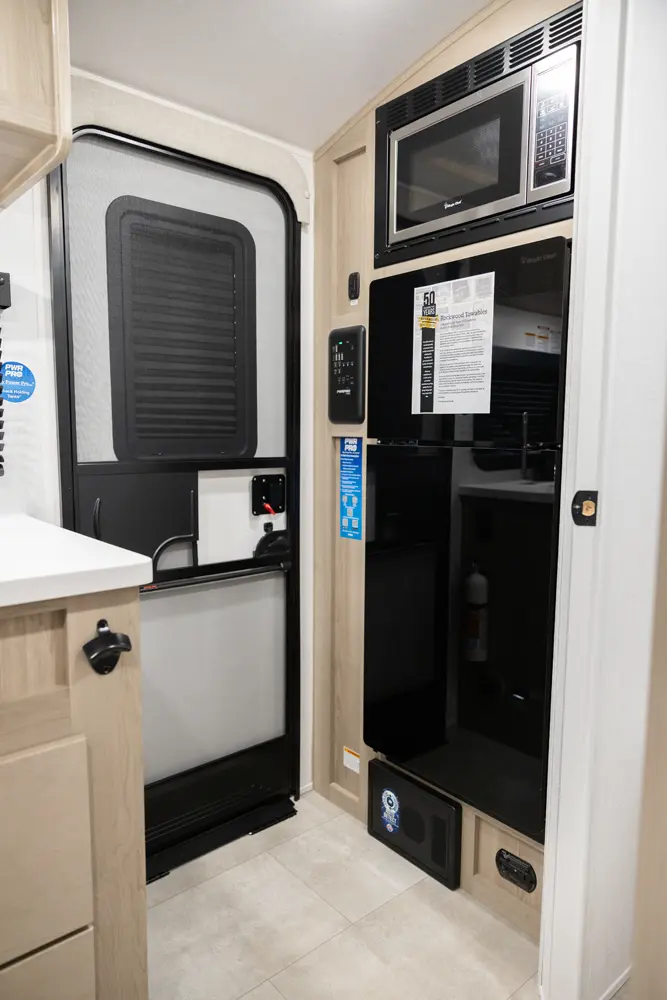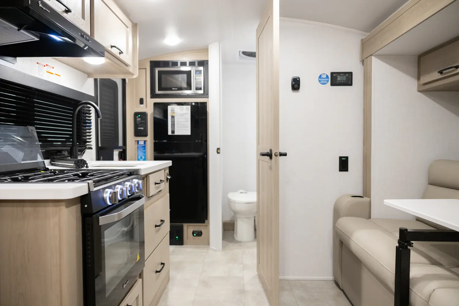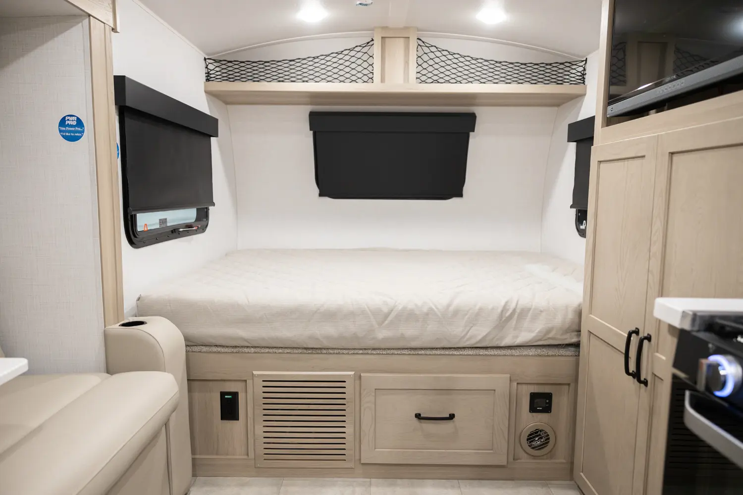 The Rockwood Geo Pro G19FBS is a rear entry couples coach with a small slide that offers so much great space. The large bathroom is one of the best features of this small couples coach. The 72” pull-out sofa also makes for a great bed for guests, children or pets. At 20’ and light weight, you will not be able to get more walk around footage than this great couples coach.