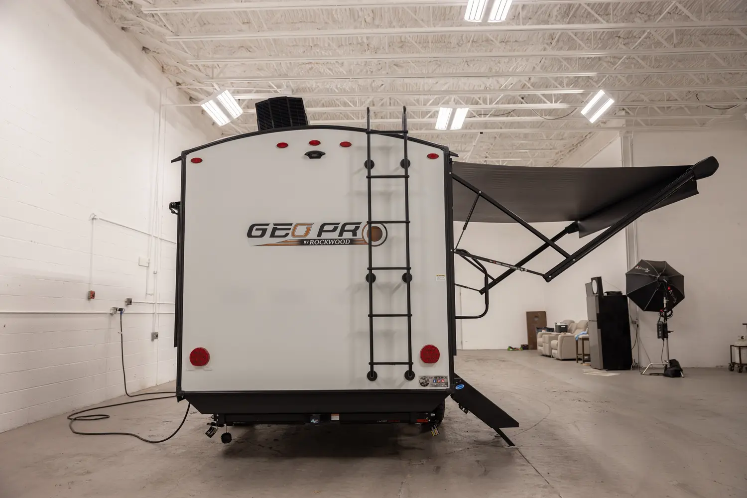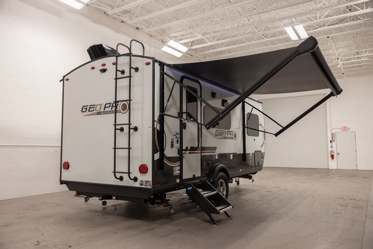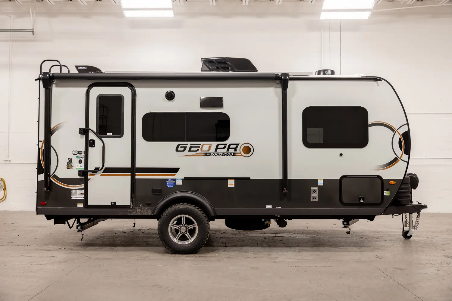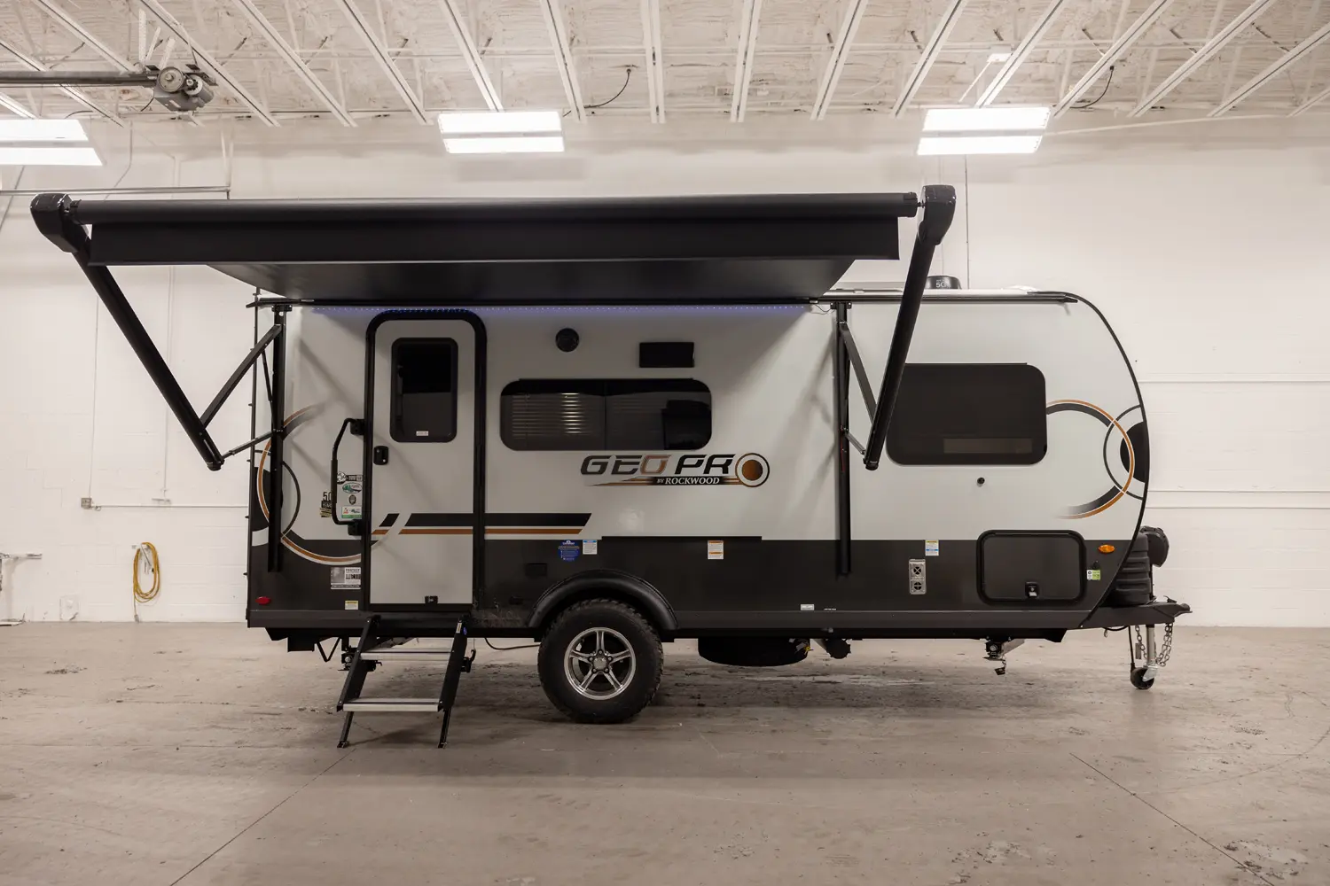 The Rockwood Geo Pro G19FBS has one entry and one slide out. Exterior features include: fiberglass exterior and 11' awning. Interiors features include: front bedroom.