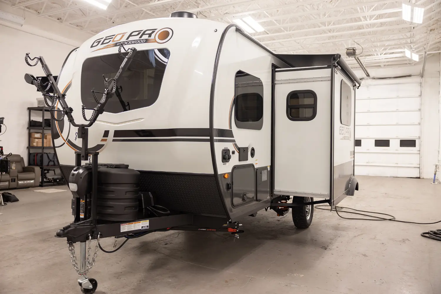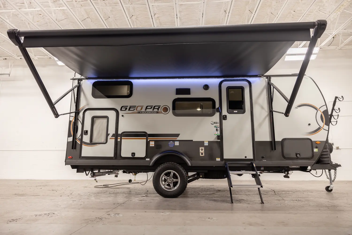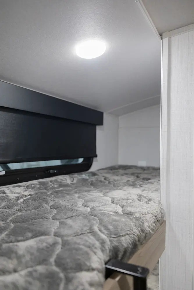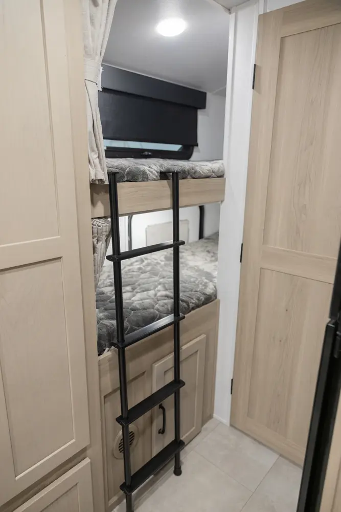 The Rockwood Geo Pro G20BH floorplan has one entry and one slide out. Exterior features include: fiberglass exterior and 14' awning. Interiors features include: bunk beds and front bedroom.