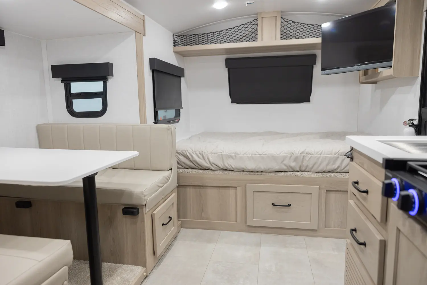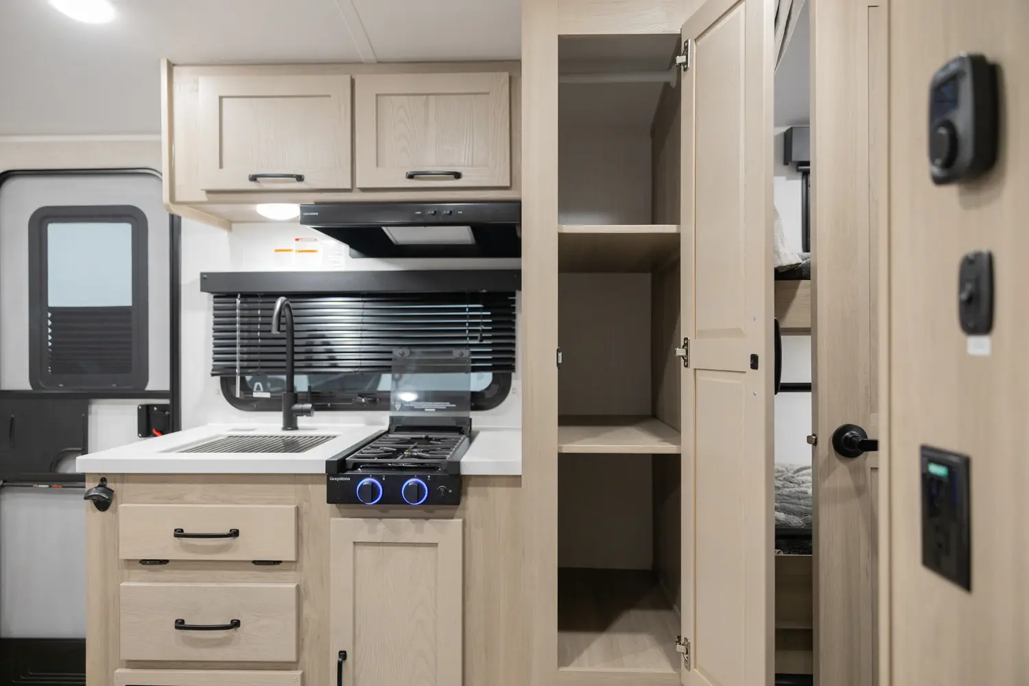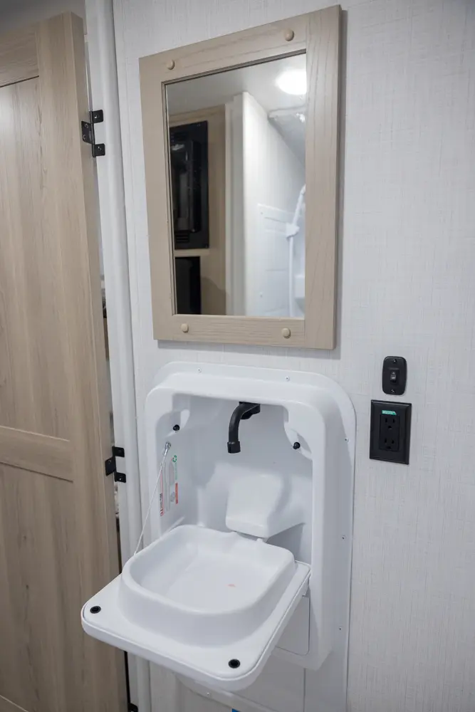 The Rockwood Geo Pro G20BH floorplan has one entry and one slide out. Exterior features include: fiberglass exterior and 14' awning. Interiors features include: bunk beds and front bedroom.