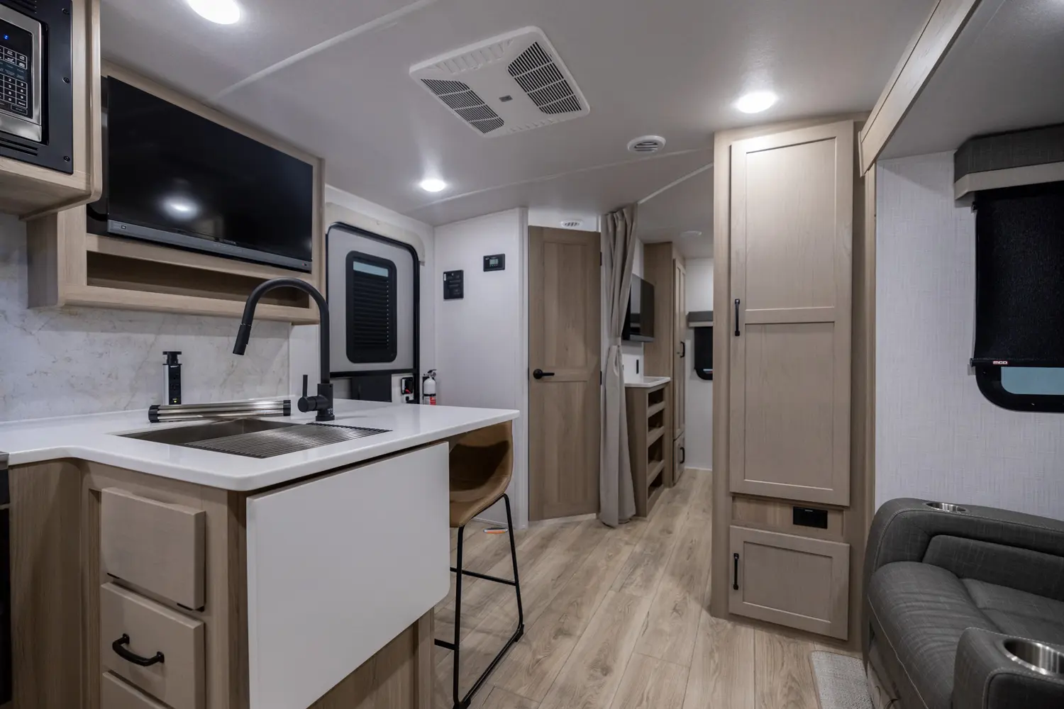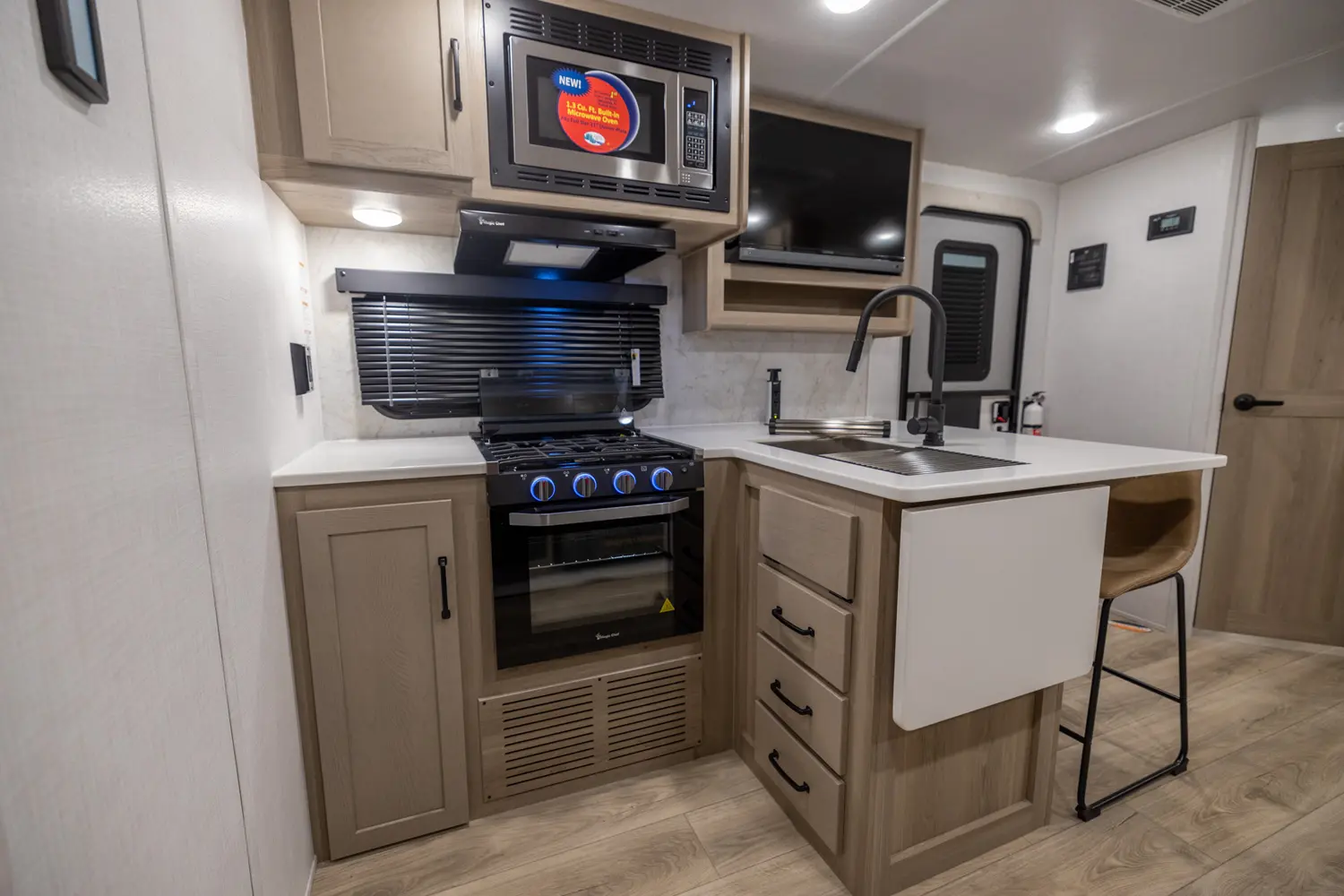 The best bunkhouse in the market under 30 ft. This extra room can be used for many different purposes with the dinette set up and a private entertainment center, you have your own office on the road and a spot for the grandkids when they come along.