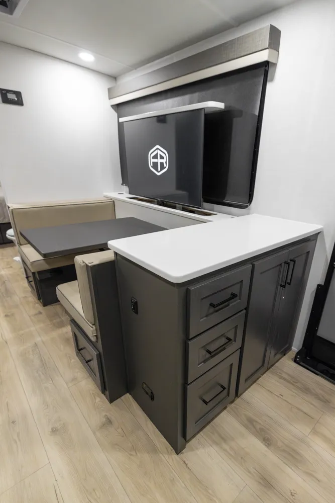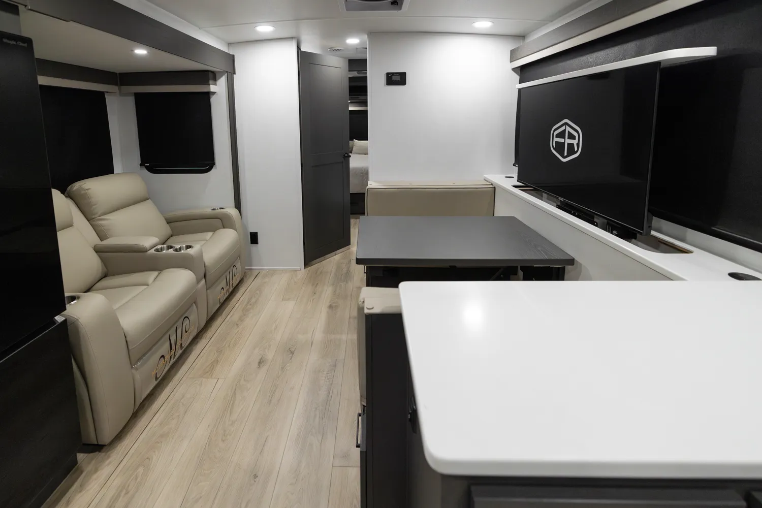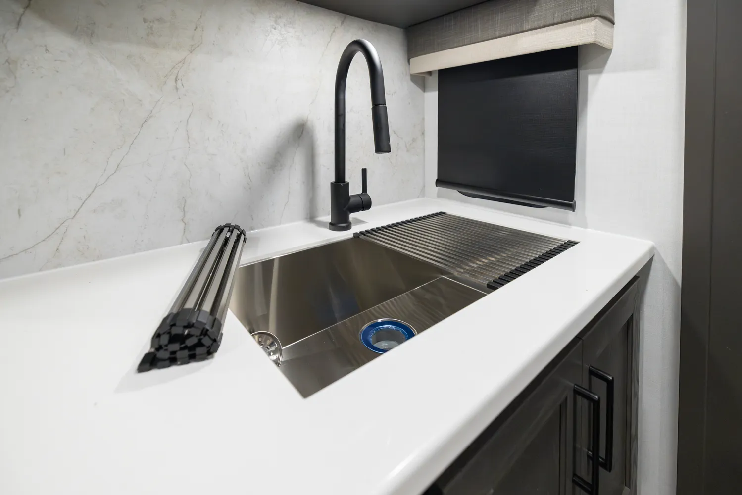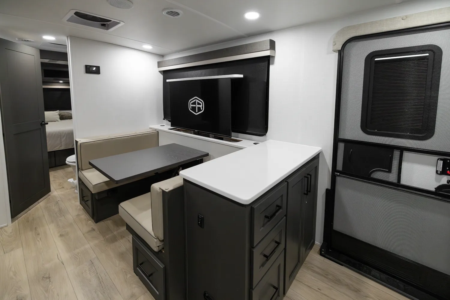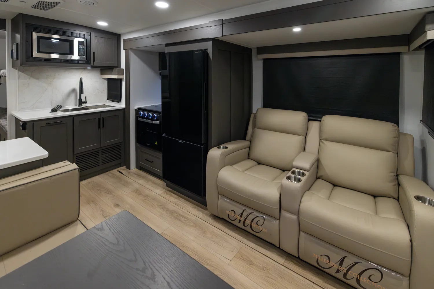 • Platinum Package: Auto Leveling, Frameless Windows, 1800W Inverter, MORryde Strut Assist Entry Step, Dual 30 LP Tanks