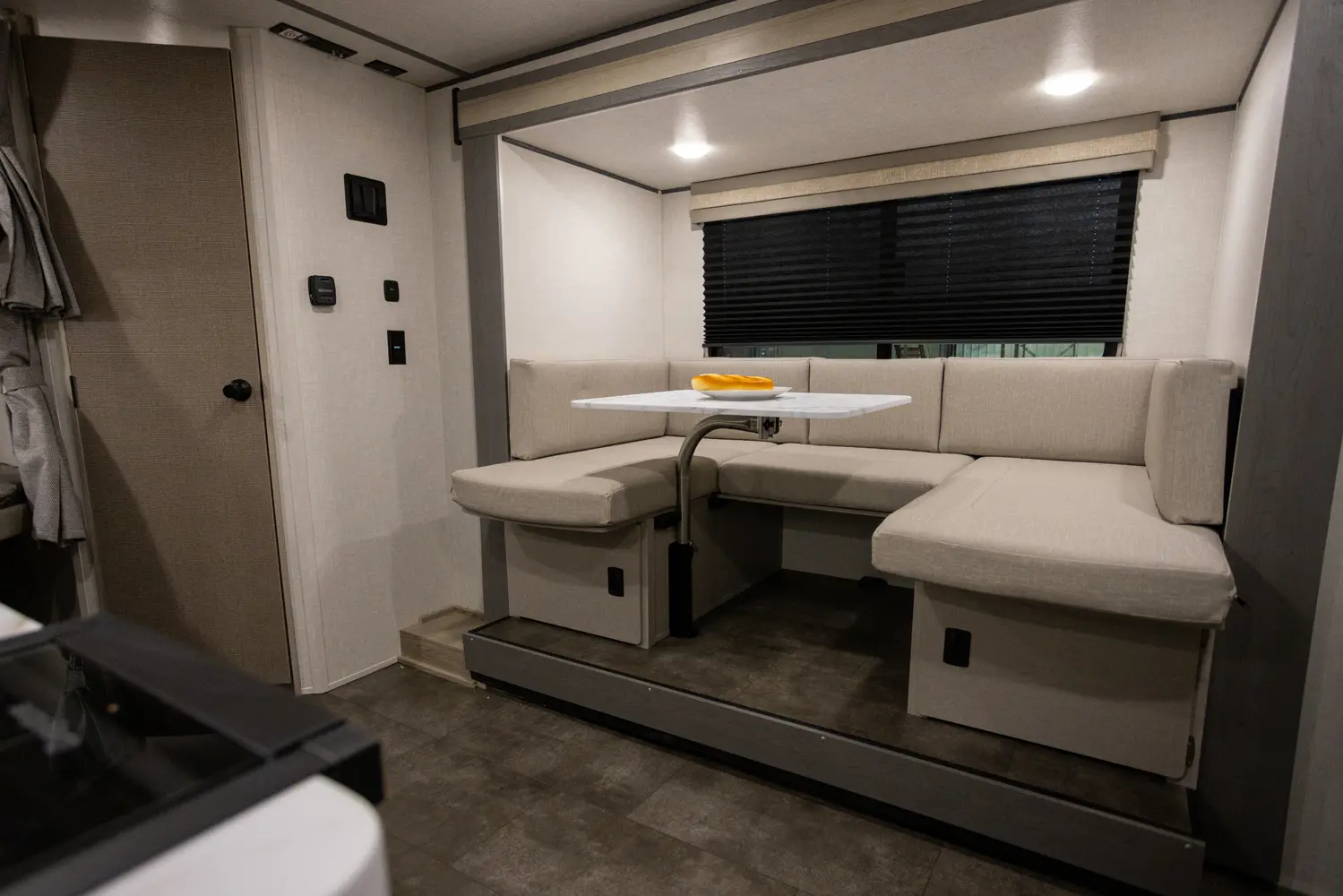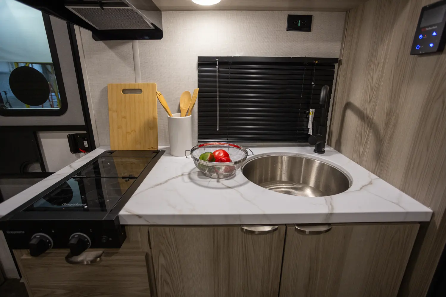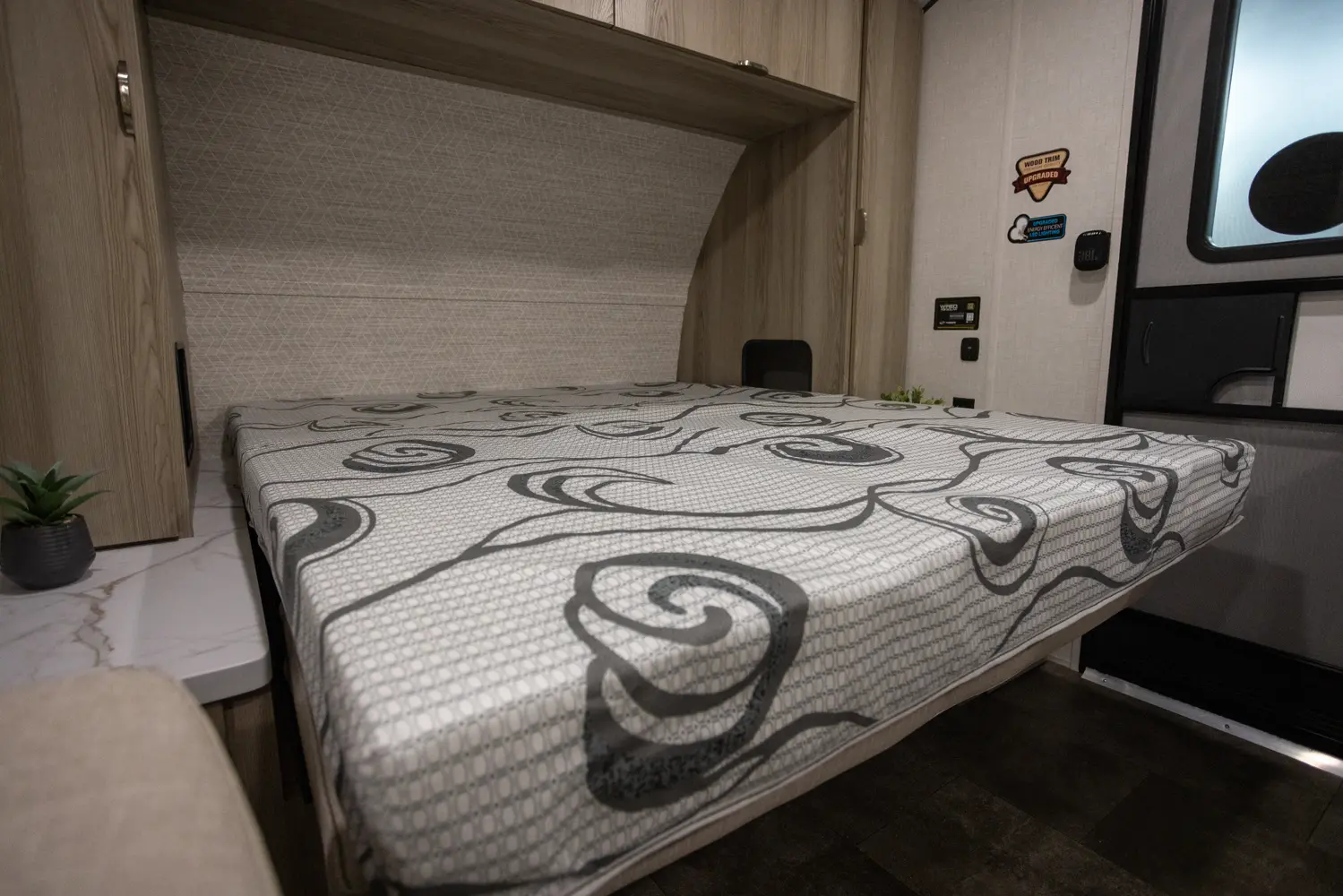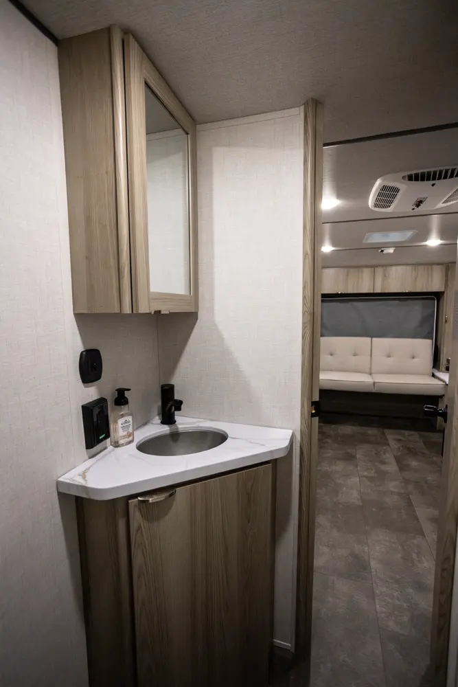 The 17BHSK is packed with features and weighs in at less than 4,000 lb. The unique front queen bed flips up to create additional seating space during the day. The kitchen slide provides extra room for the ever-popular U-dinette and includes a panoramic window. The rear bunkhouse gives you double over double bunks for additional flexibility and comfort, while the outside kitchen gives you additional options for mealtime and entertaining.
