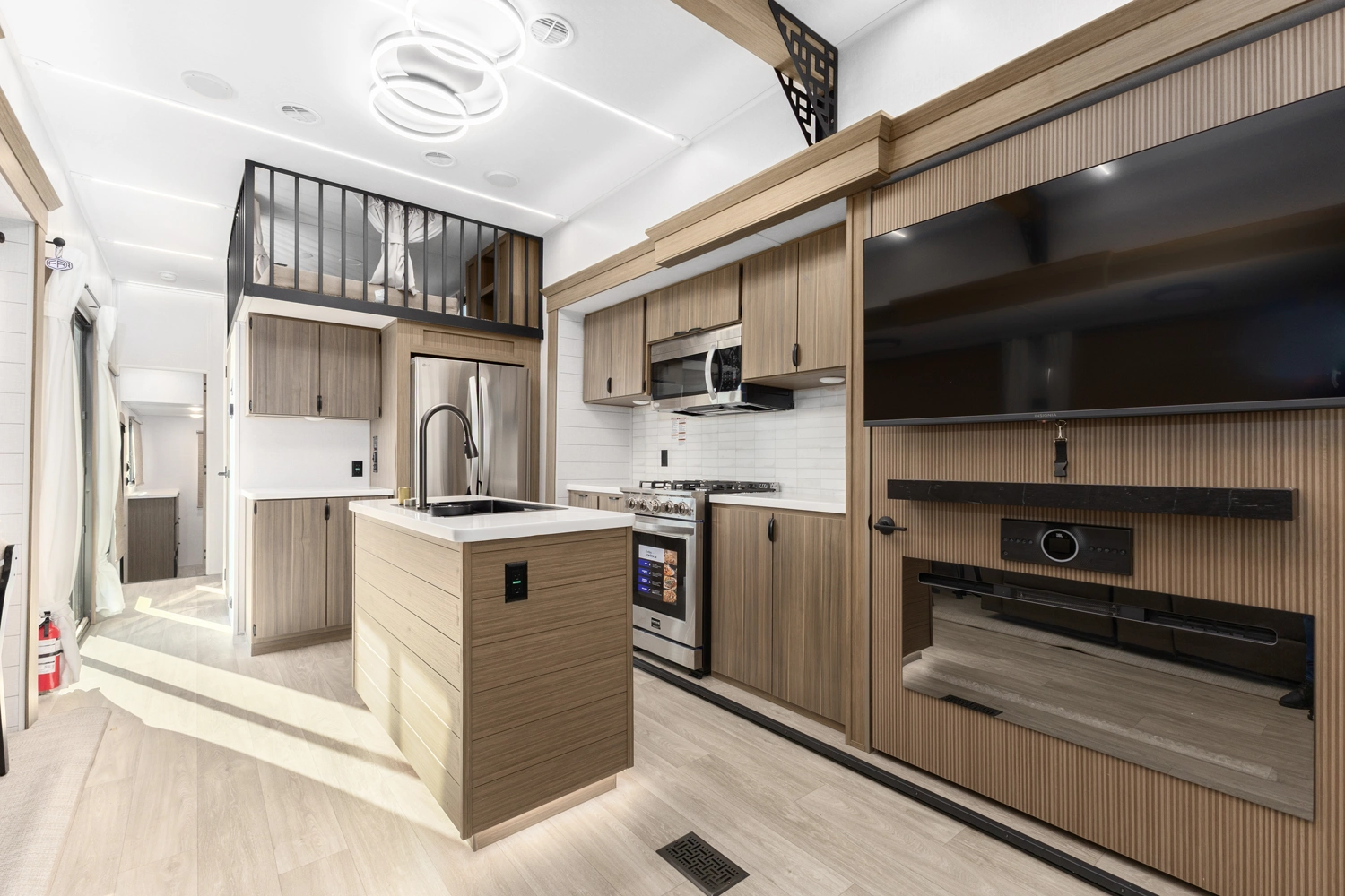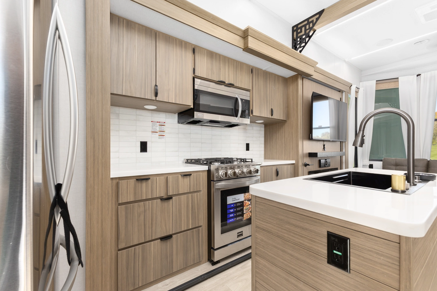 The Salem Grand Villa 42FLDL is a truly outstanding home away from home. This model features a unique HUGE double loft bonus room with three bunks—perfect for bringing the kids (and maybe a few friends!) along. The bathroom includes a walk-in shower and lots of cupboard space, while the island kitchen provides residential appliances and plenty of room for the aspiring chefs in your family.