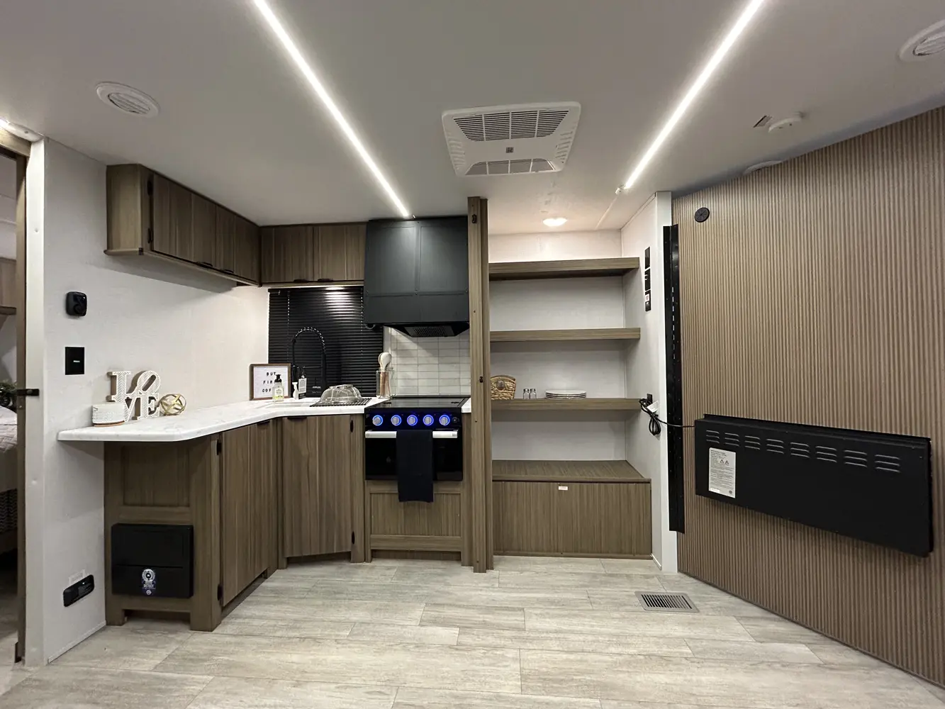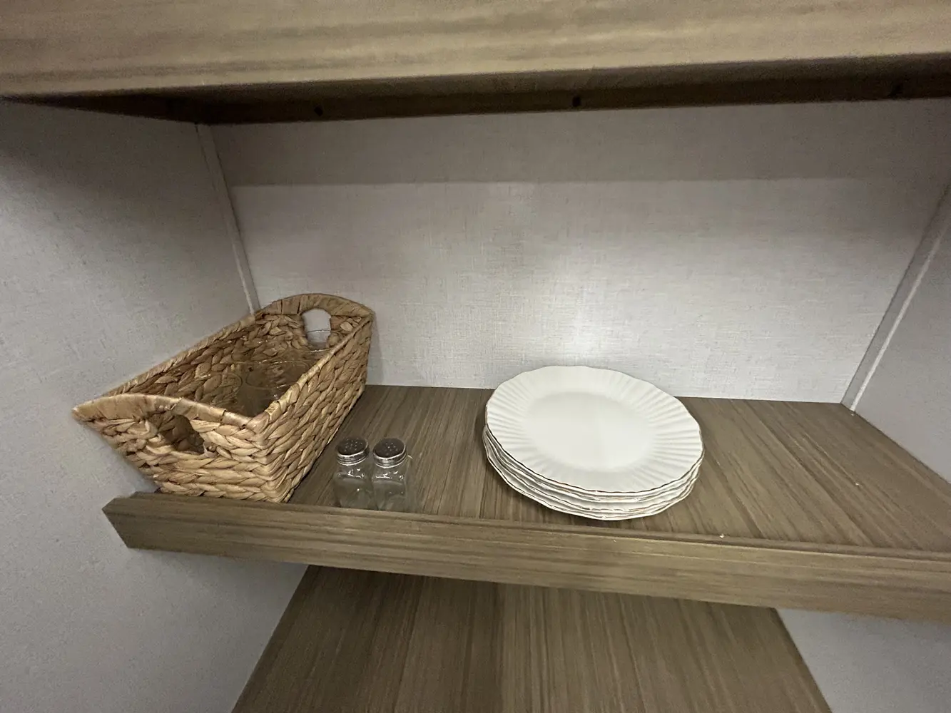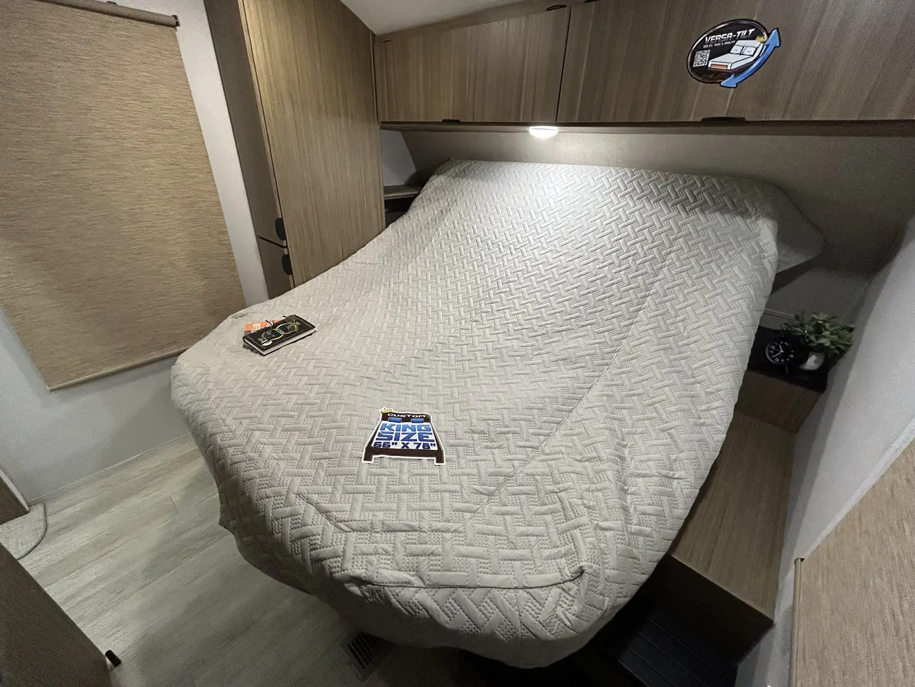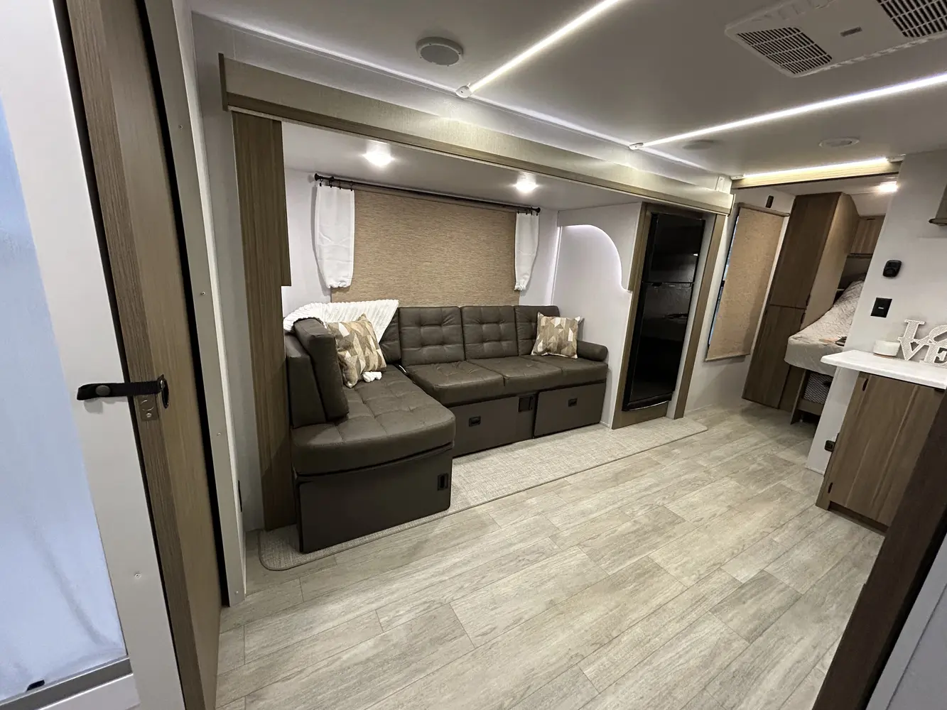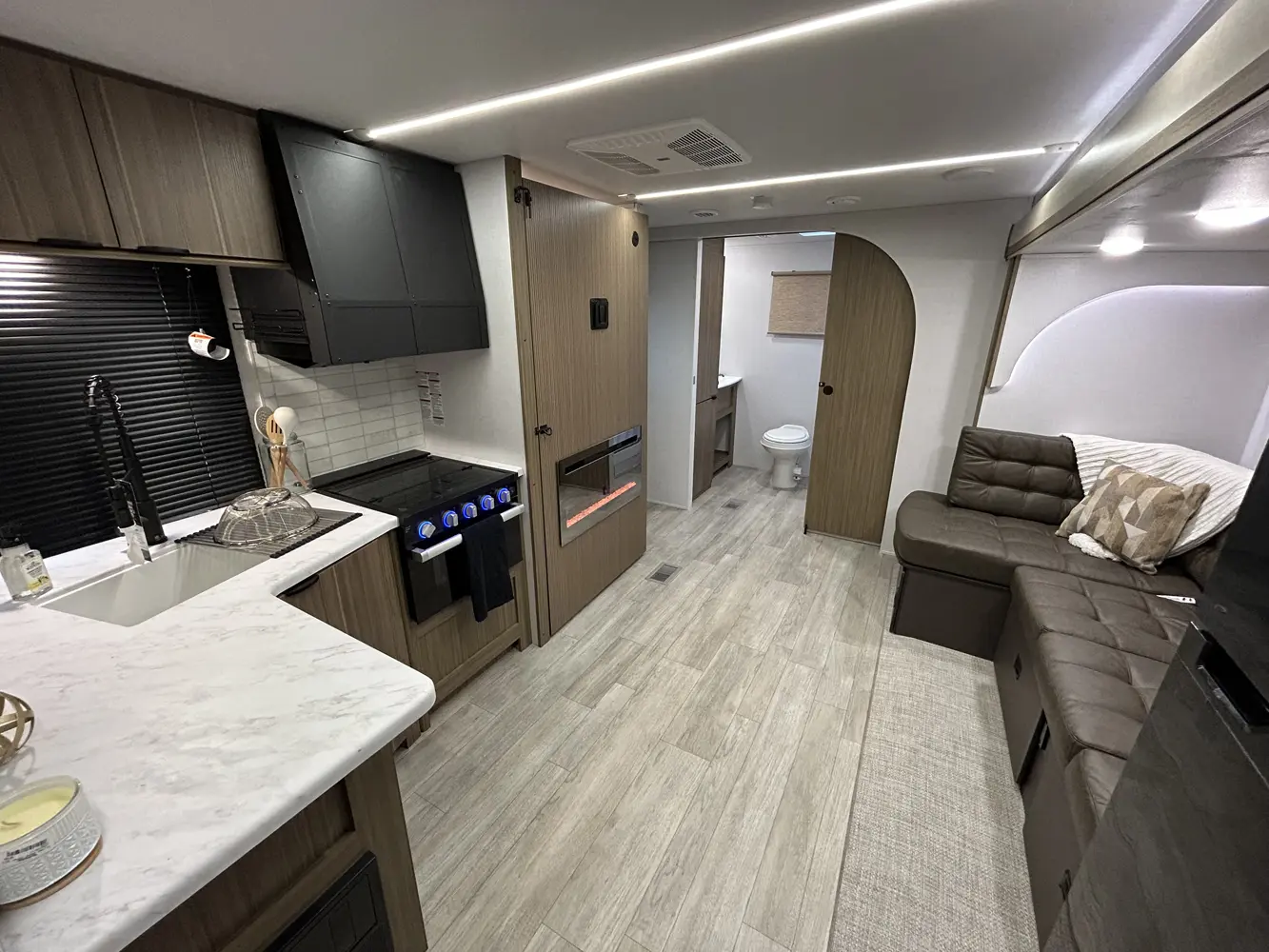 The Salem 22RBS is the perfect couple's coach, with a front queen bedroom and HUGE rear bath with walk-in shower. The living area features a unique 8' chaise lounge/dinette that has a direct view of the entertainment center and fireplace.