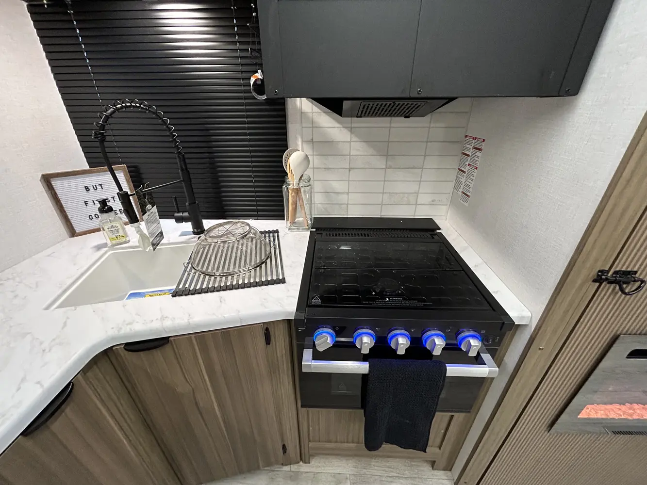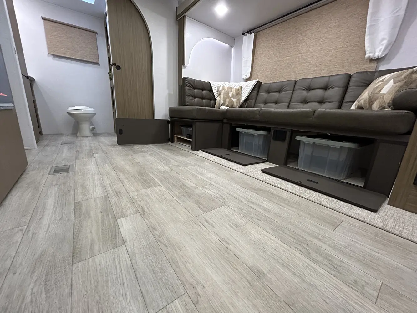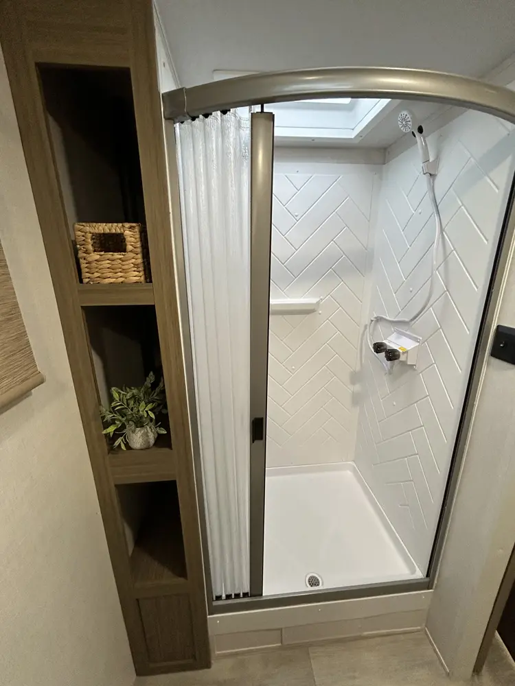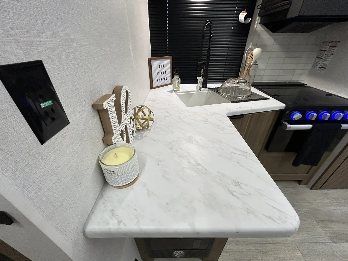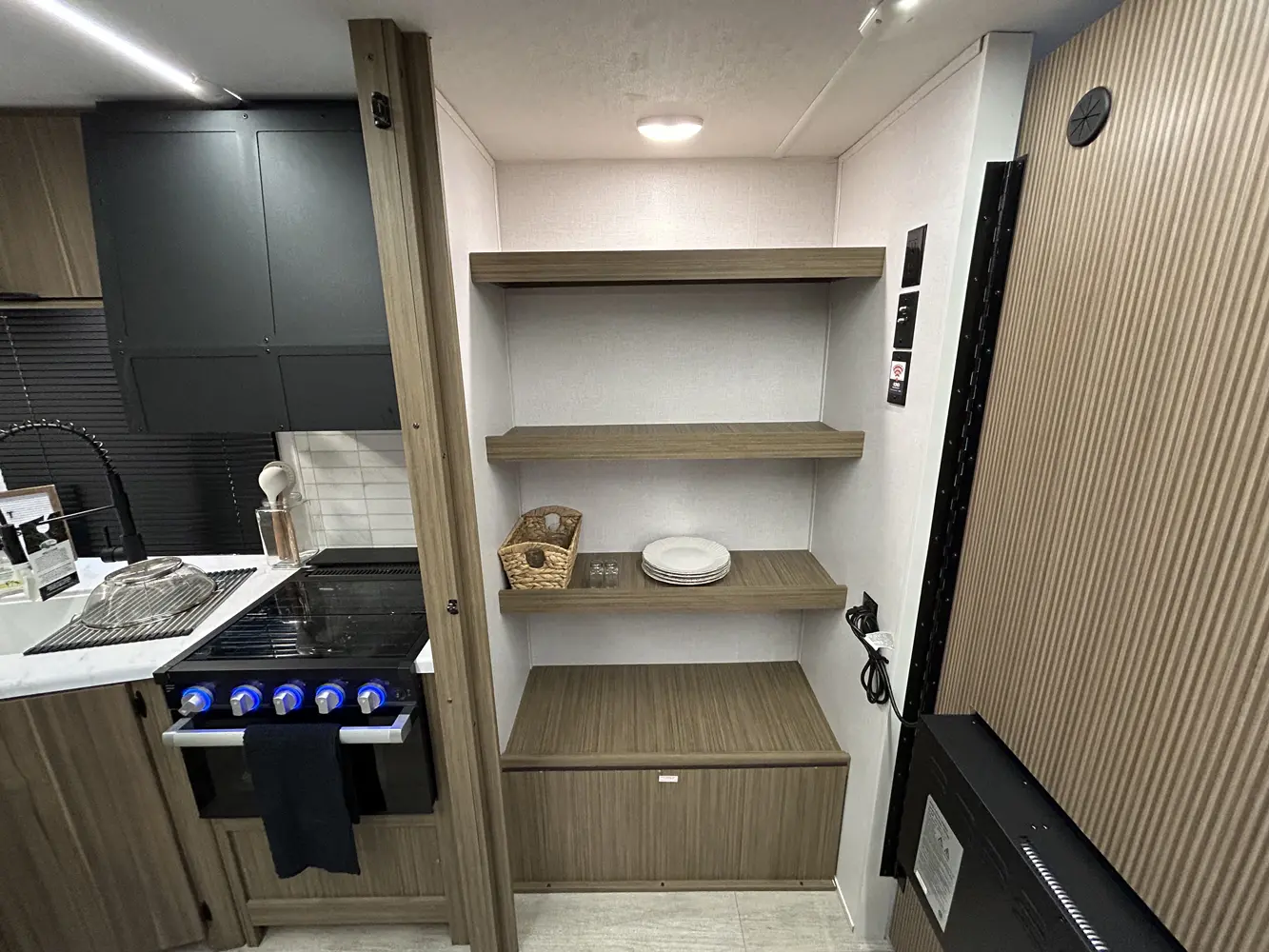 The Salem 22RBS is the perfect couple's coach, with a front queen bedroom and HUGE rear bath with walk-in shower. The living area features a unique 8' chaise lounge/dinette that has a direct view of the entertainment center and fireplace.